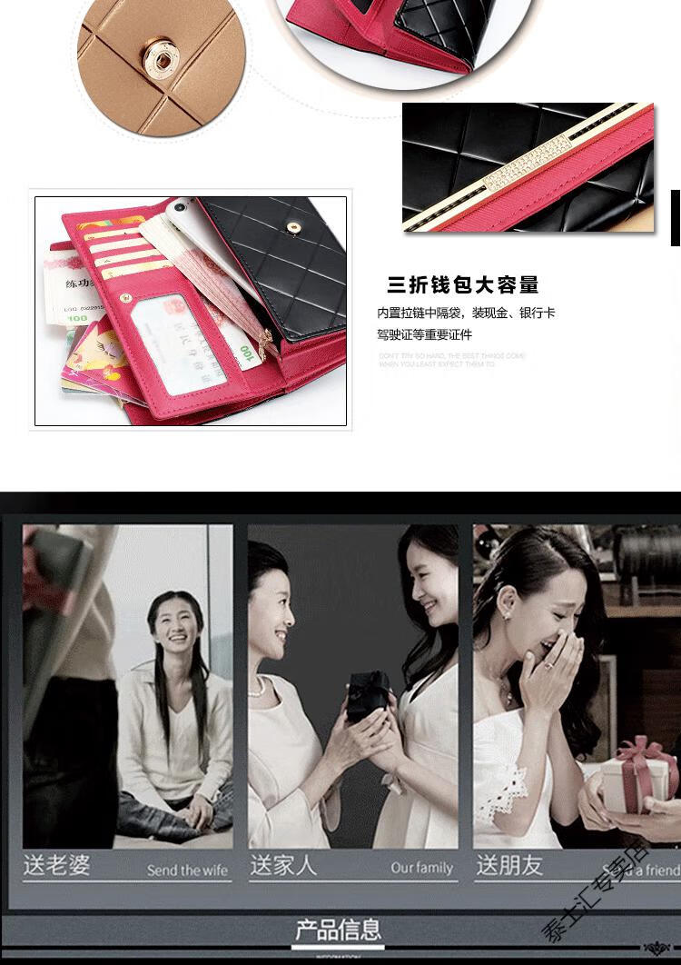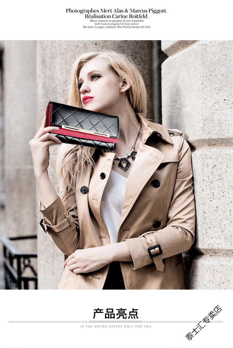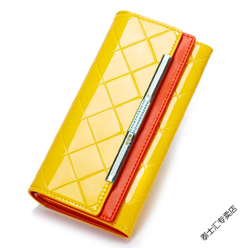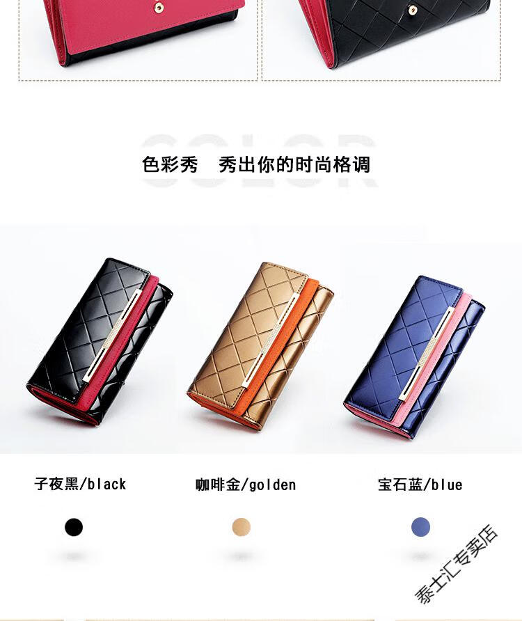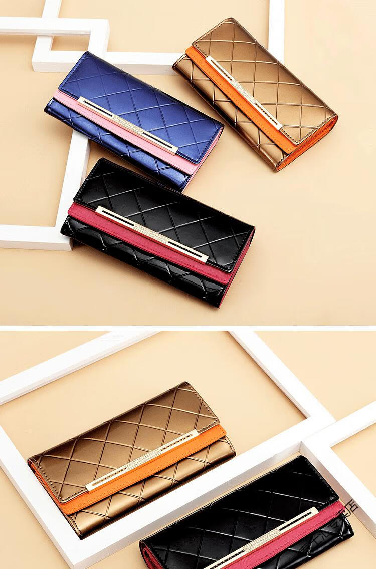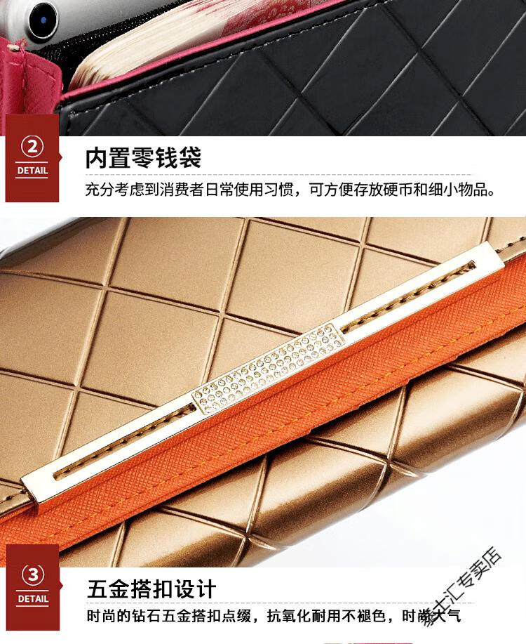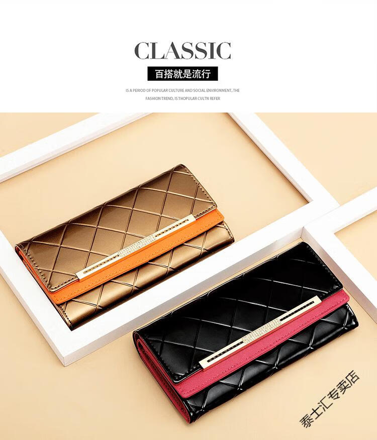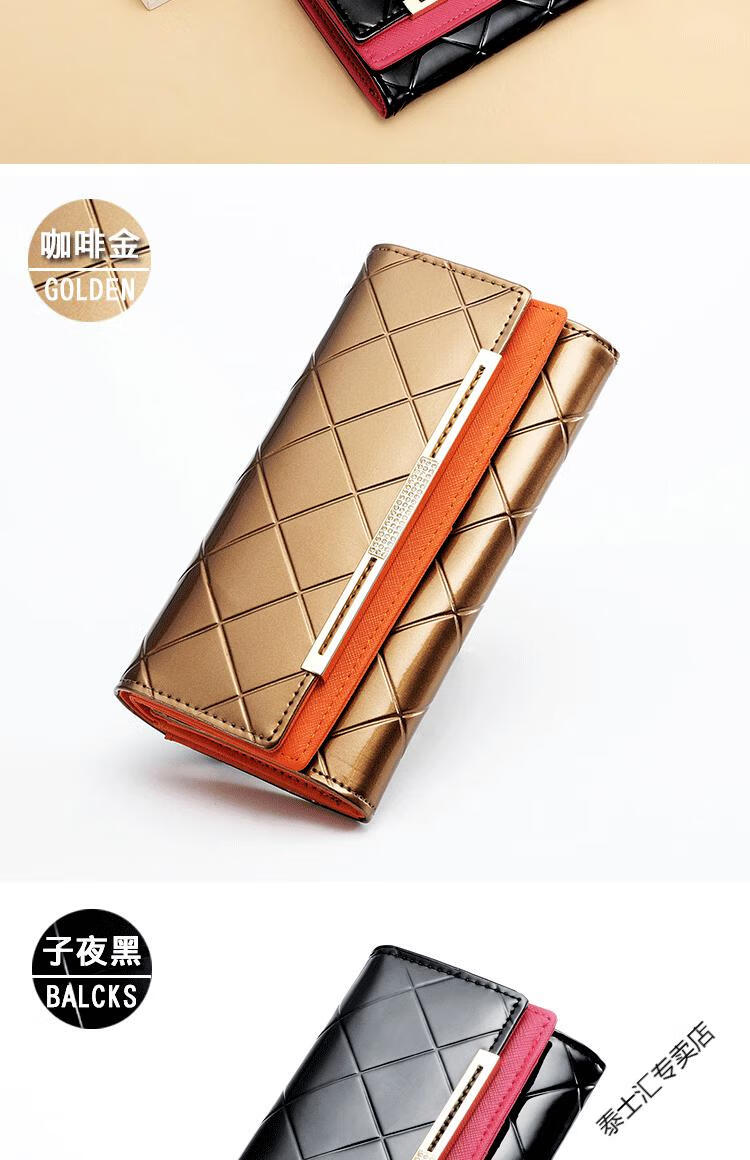 KUQIDAISHU high-end women's long wallet women's genuine leather buckle clutch wallet large capacity tri-fold wallet holiday gift coffee gold + orange (crocodile pattern)