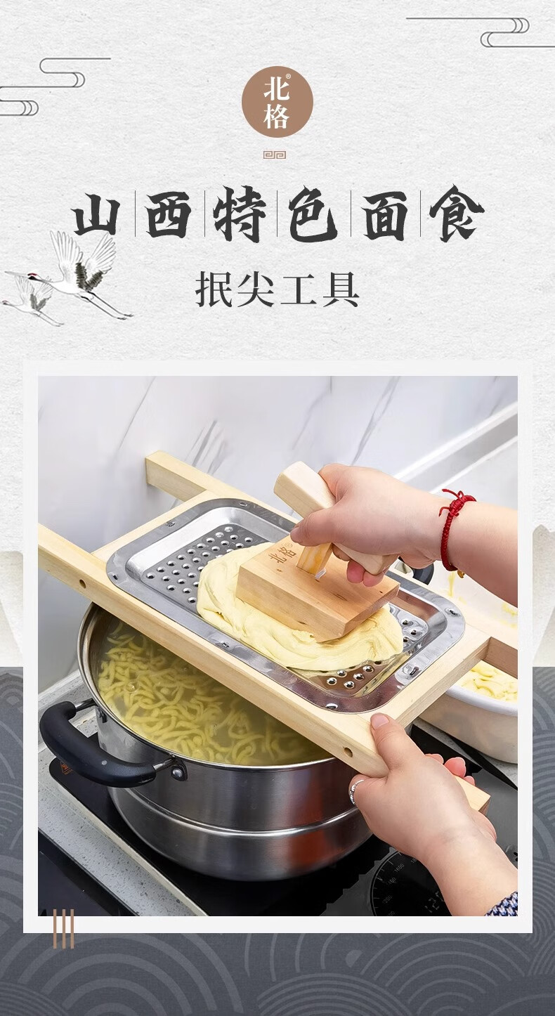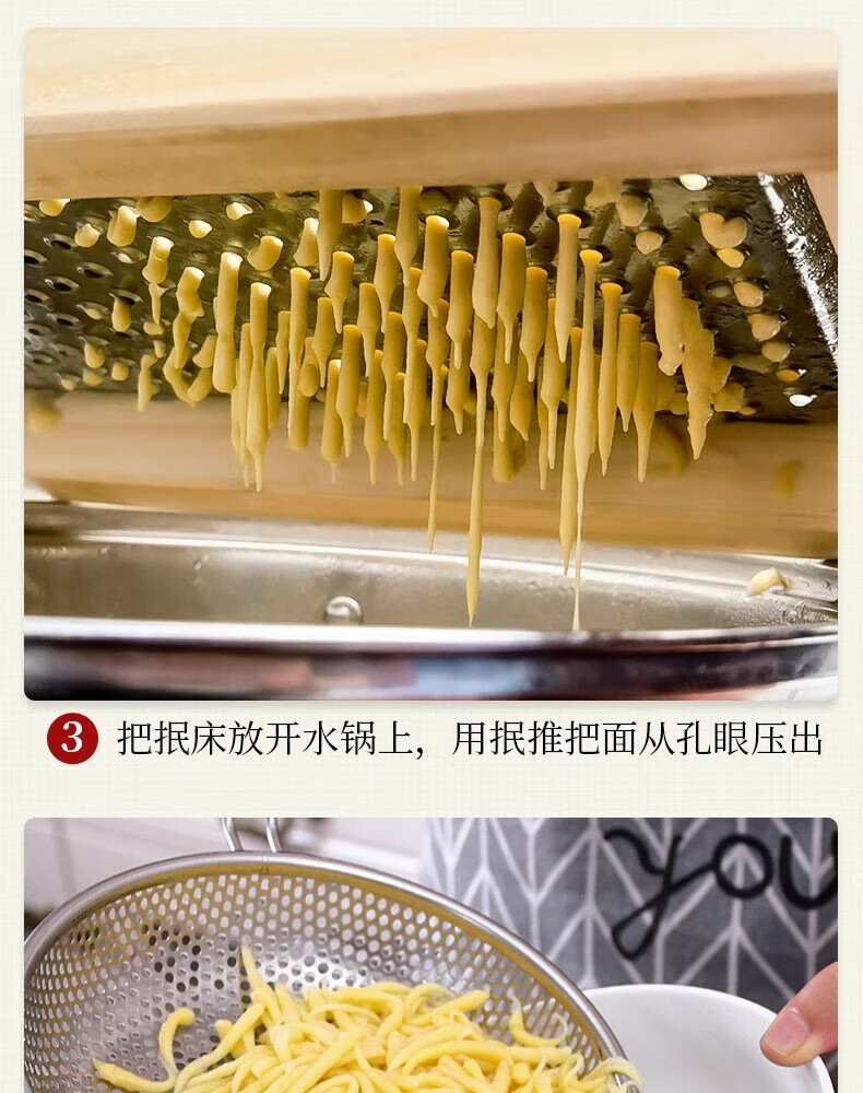 Beige Shanxi specialty noodle pressing tool, 饥饹面crumbling bed, household tadpole pressing, tadpole pressing, bean noodle pressing joint, 4mm wooden pressing bed + pressing pusher, regular style