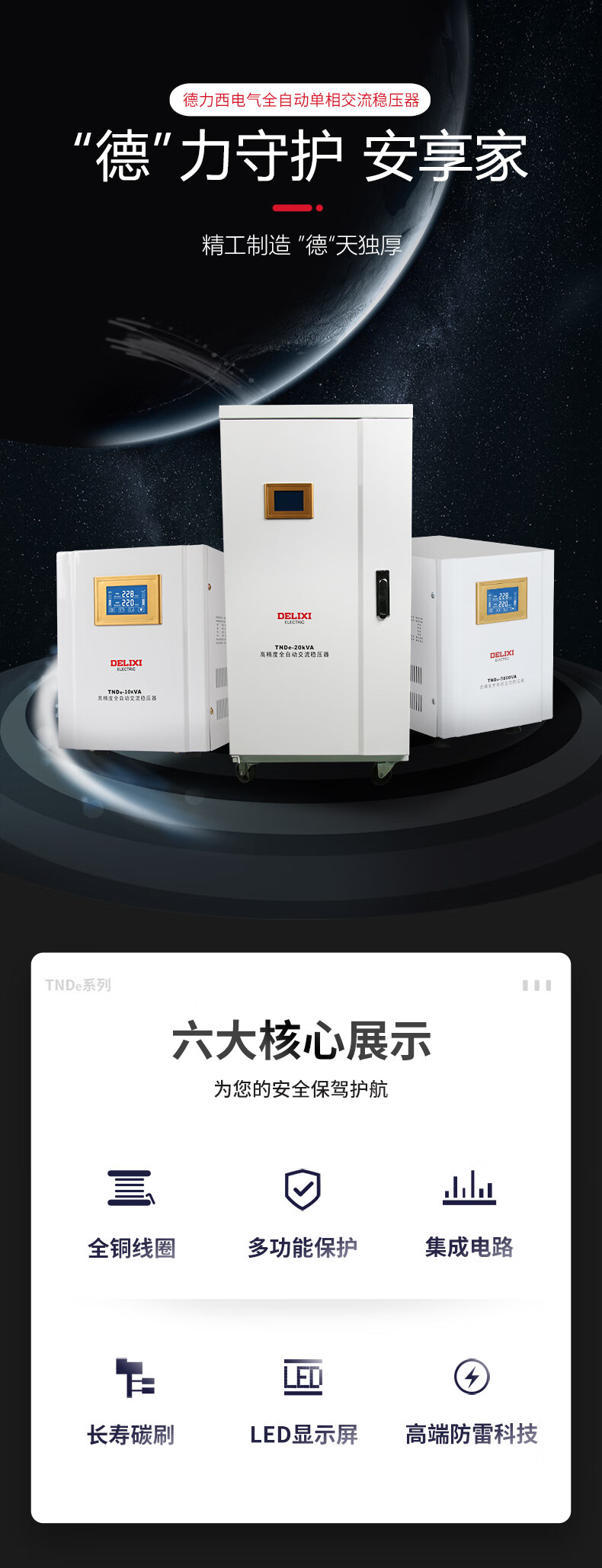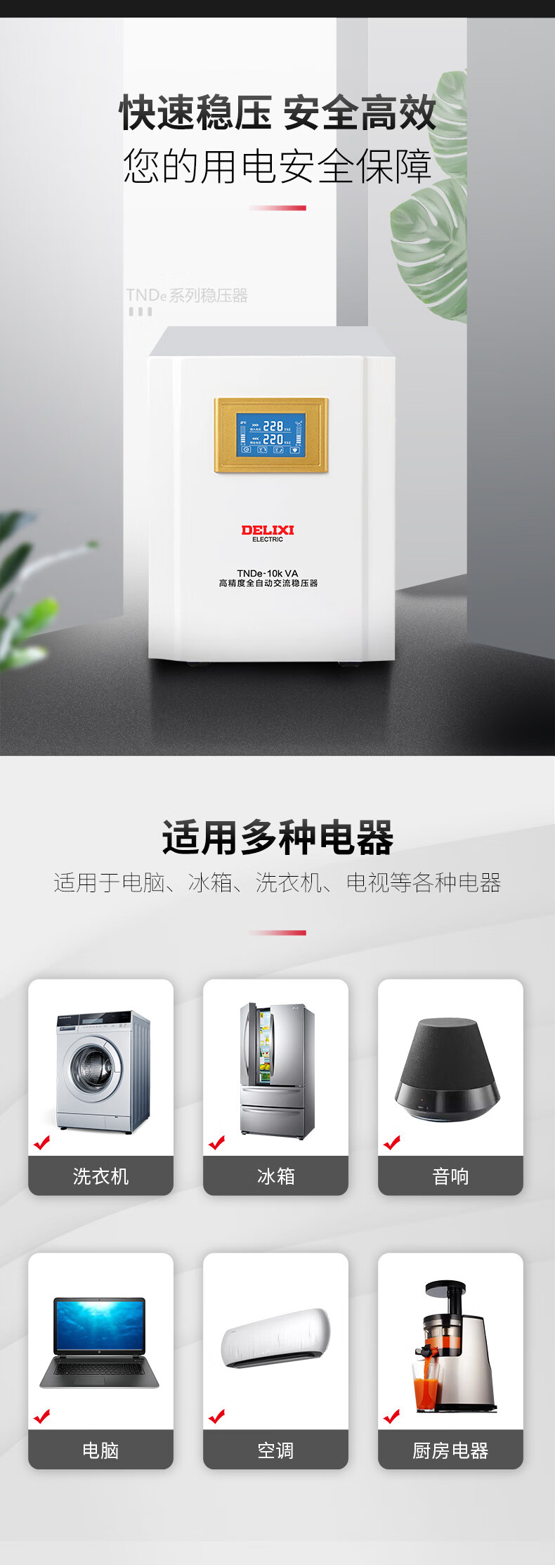DELIXI ELECTRIC voltage regulator fully automatic lightning protection 220v single-phase power supply voltage regulator stabilizer TNDe TNDe 3000W