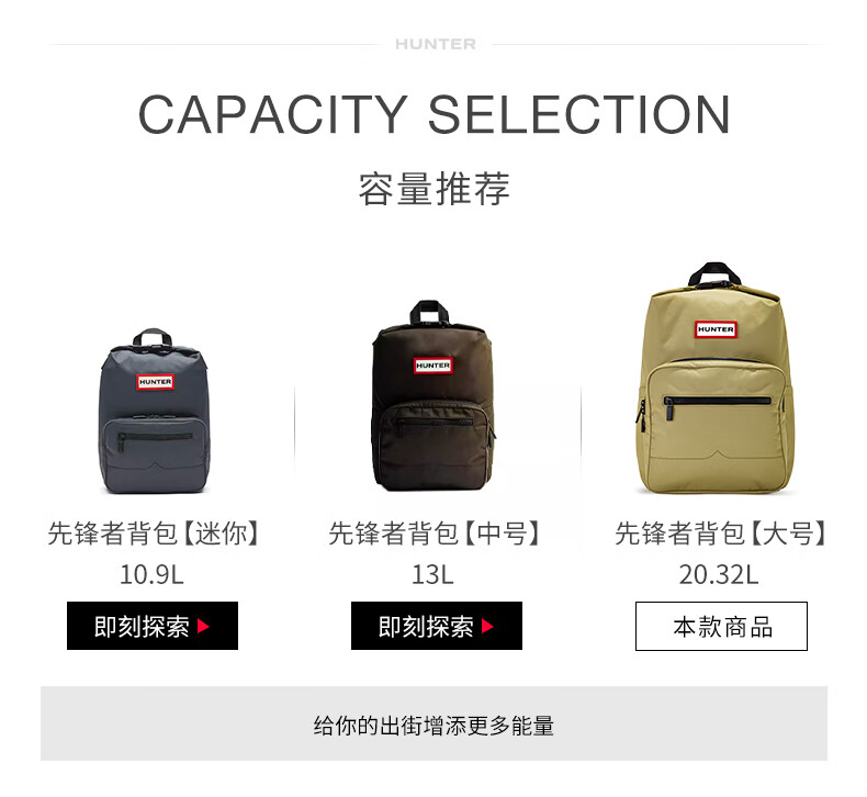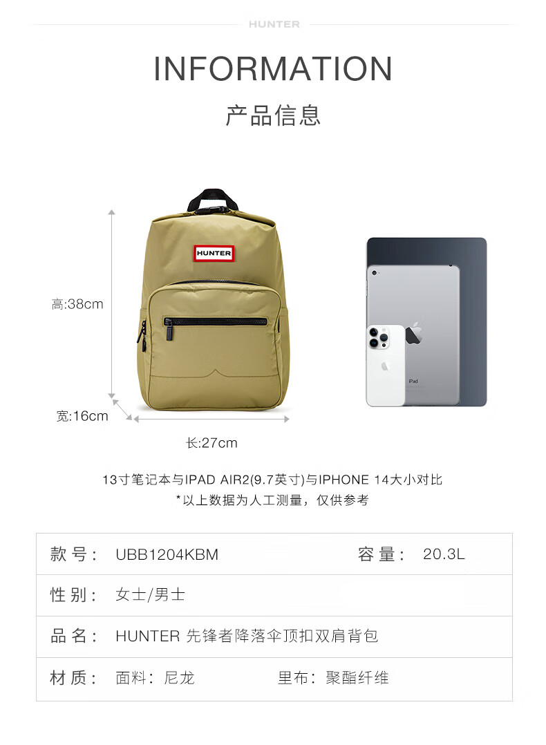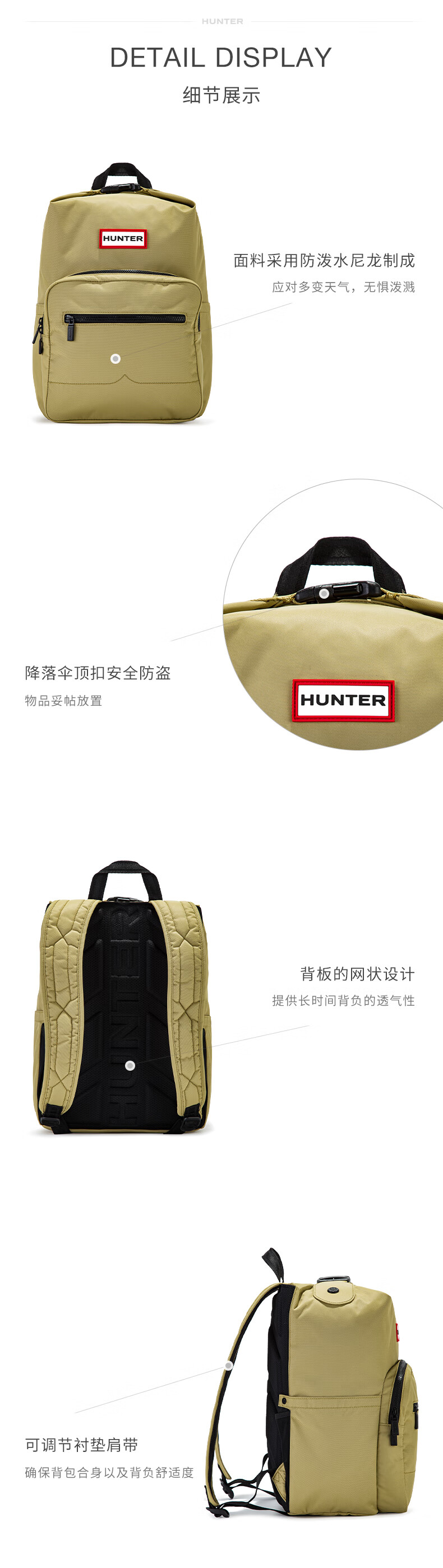 HUNTER British Men's and Women's School Bags Pioneer Parachute Top Buckle Backpack School Bag Travel Backpack Large Mustard Yellow/GRR