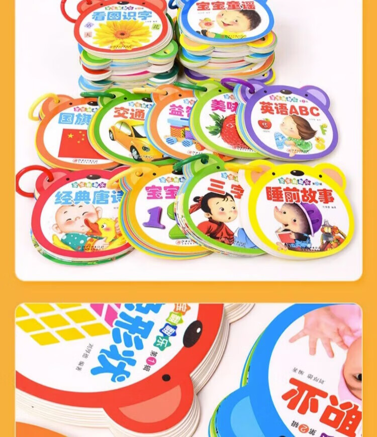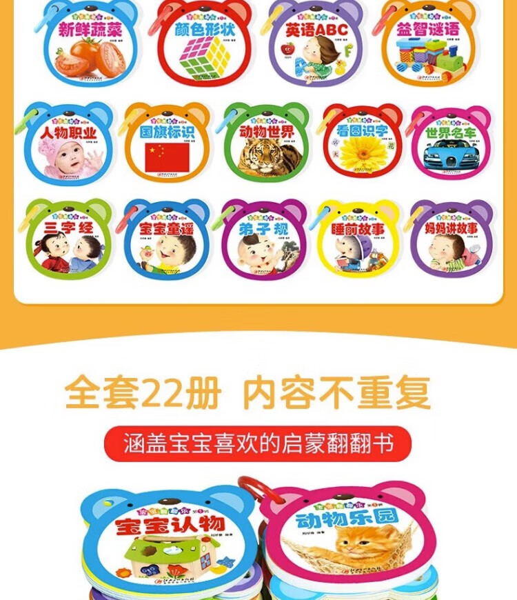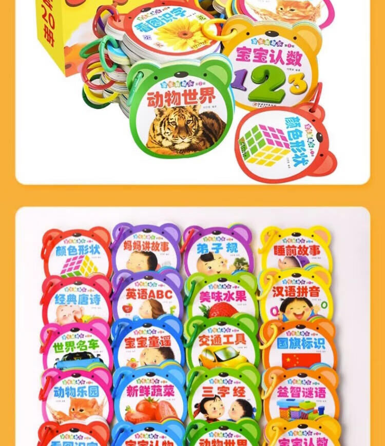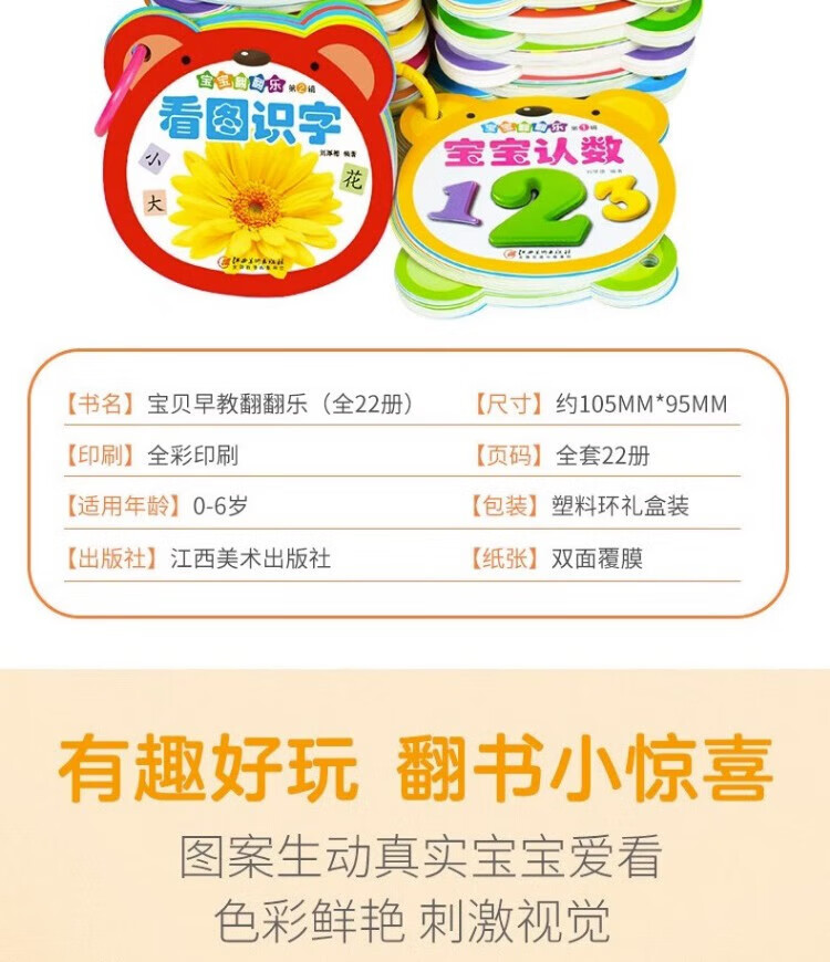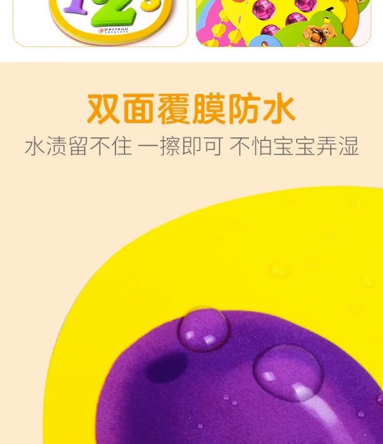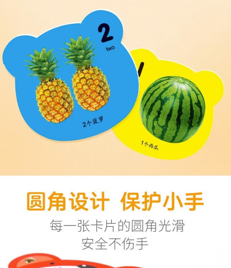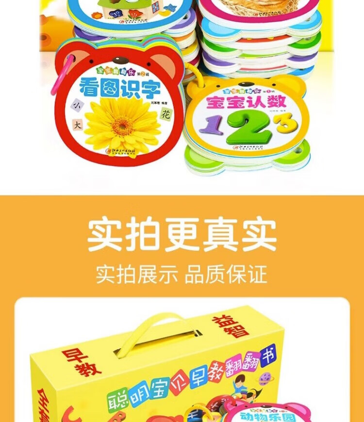 Tear-proof early education book, toddler baby early education card, 0-1-2-3 year old baby enlightenment cognitive card, literacy card, look at pictures to recognize numbers, animals and fruits flip book, two copies will be shipped randomly