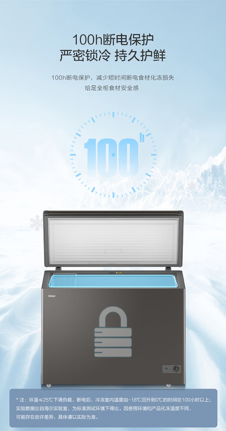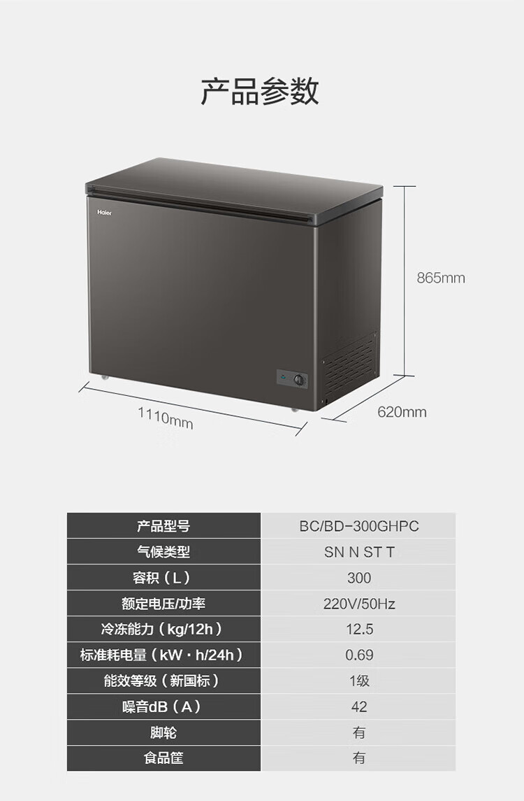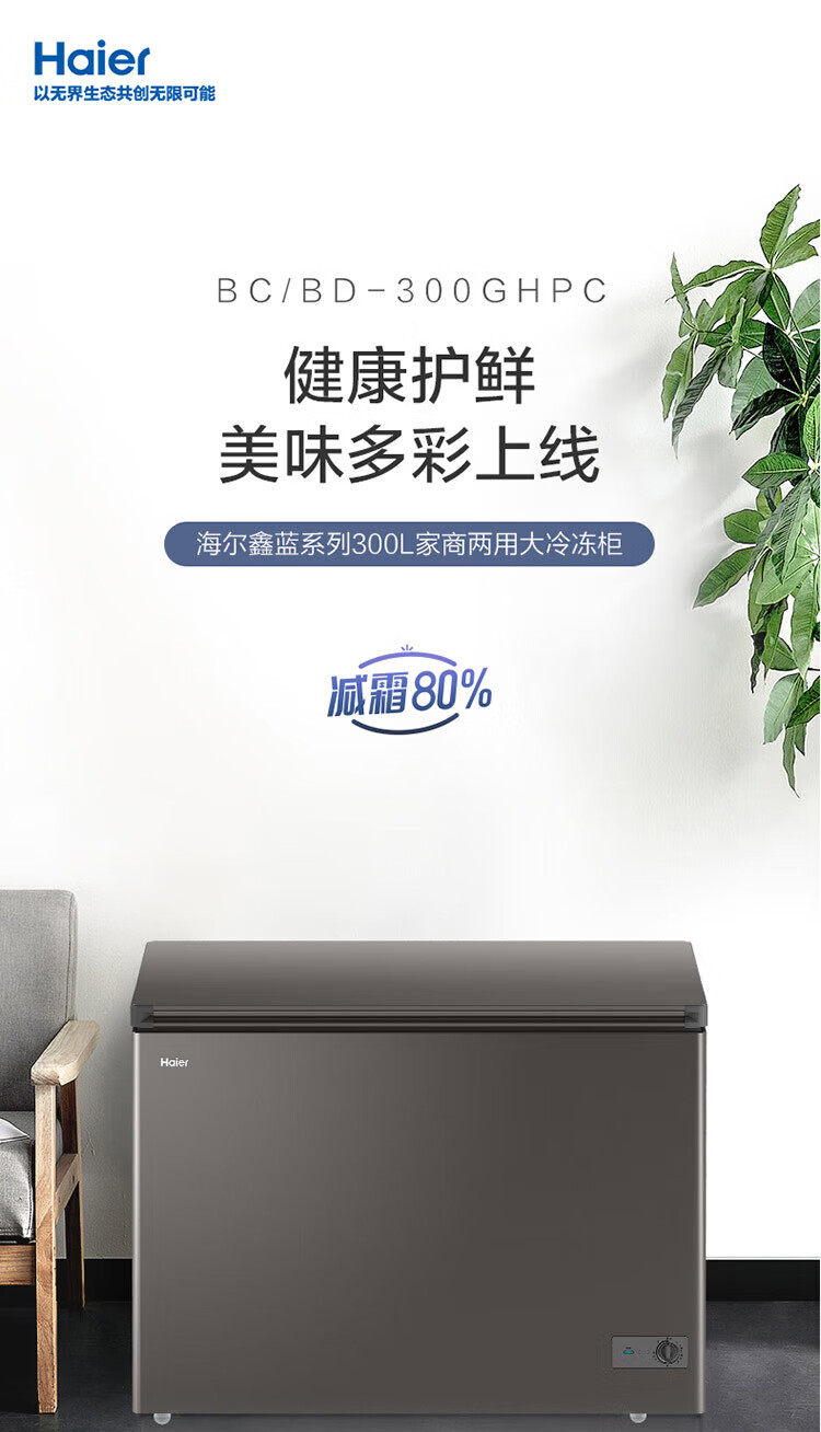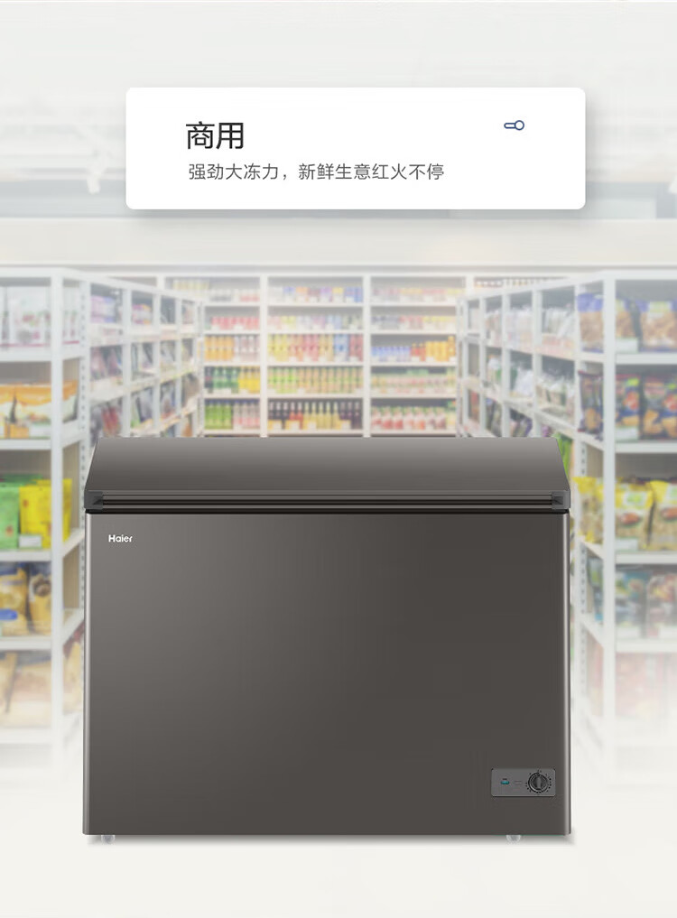 Haier Freezer No need to defrost Household and commercial large capacity full freezing and refrigeration dual-purpose new level energy efficiency Energy-saving cryogenic quick-freezing horizontal freezer 300 liters minus 35 no need to defrost丨Triple antibacterial 300L