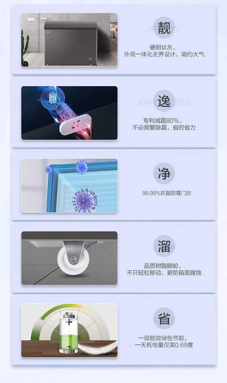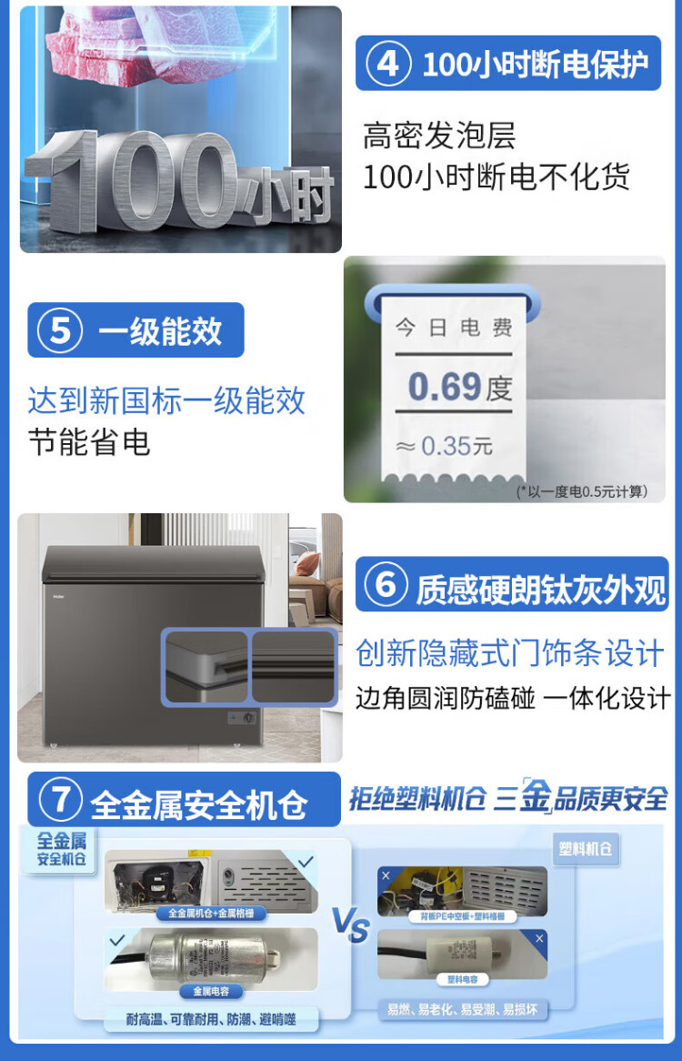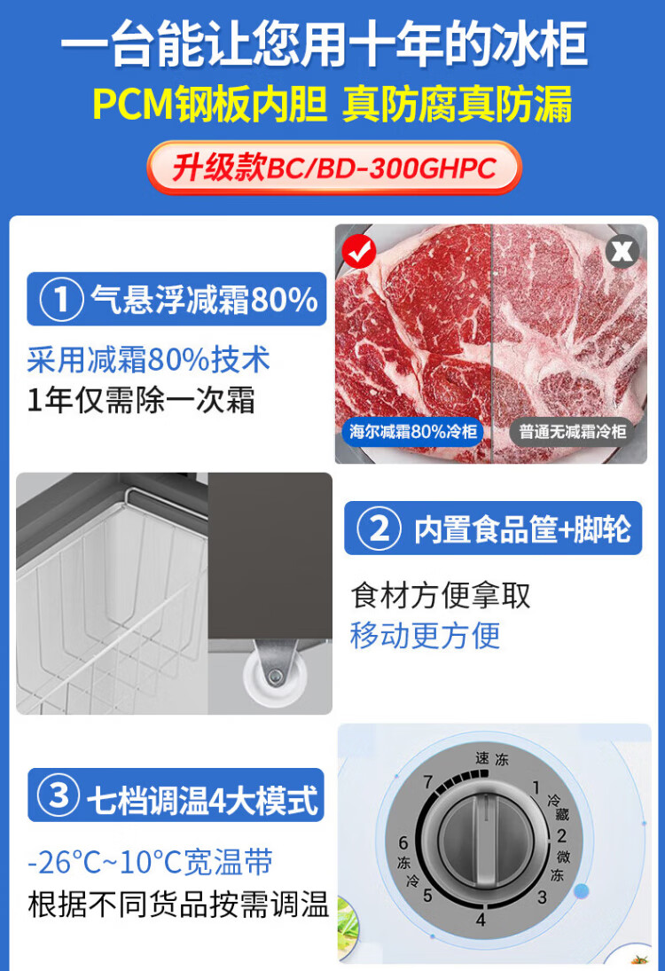 Haier Freezer No need to defrost Household and commercial large capacity full freezing and refrigeration dual-purpose new level energy efficiency Energy-saving cryogenic quick-freezing horizontal freezer 300 liters minus 35 no need to defrost丨Triple antibacterial 300L