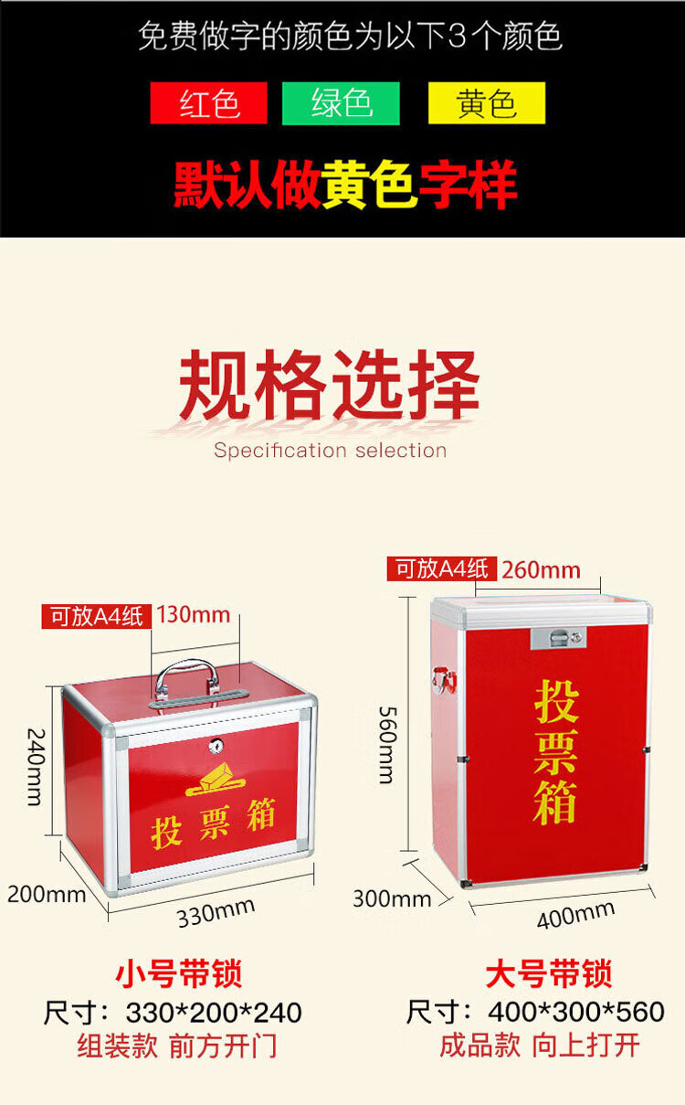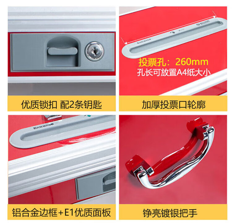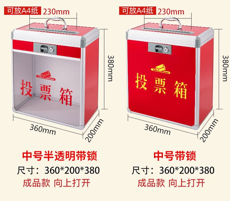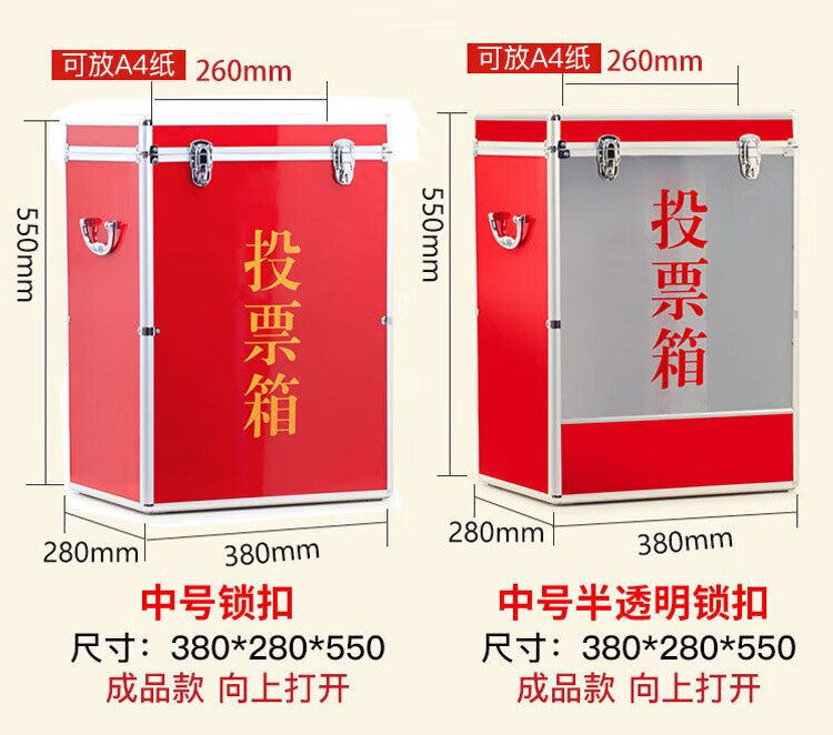 Wenstan WW-122 Aluminum Alloy Ballot Box Portable Election Box Ballot Box Medium Lock 380*280*550mm