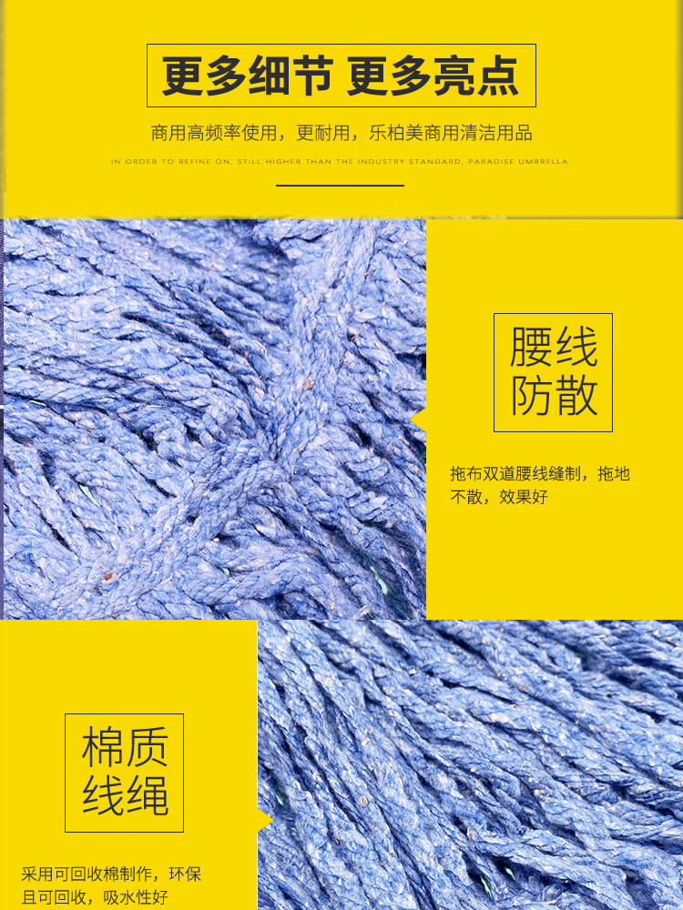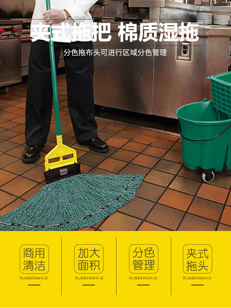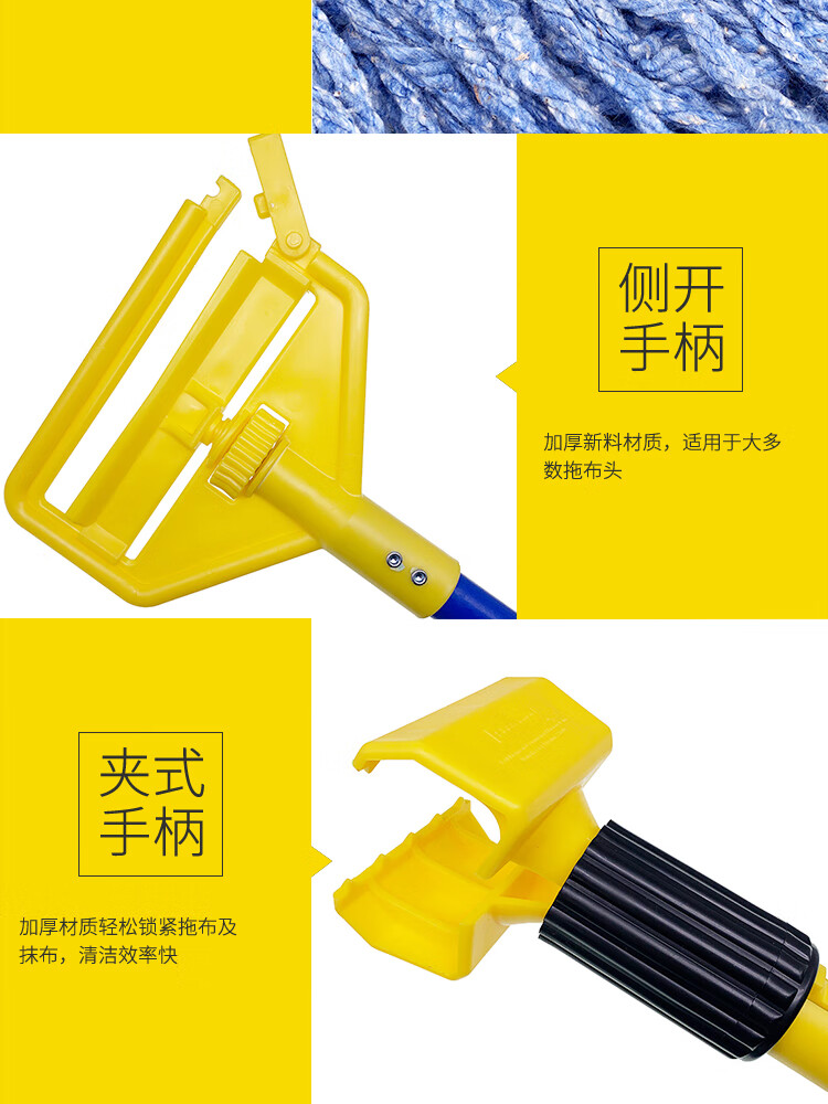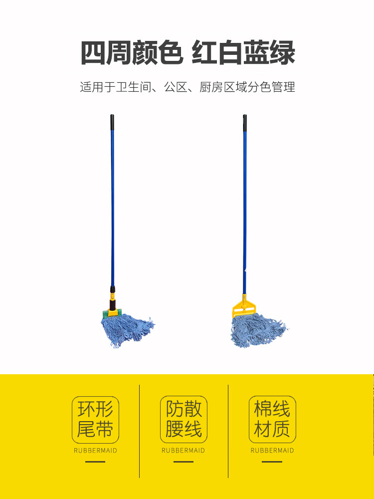 Rubbermaid Business Supplies Rubbermaid Mop Wet Mop Property Cleaning Large Clip-type Side-Opening Cotton Mop Replacement Head Mop Clip-type Wet Mop-Blue Handle H24600