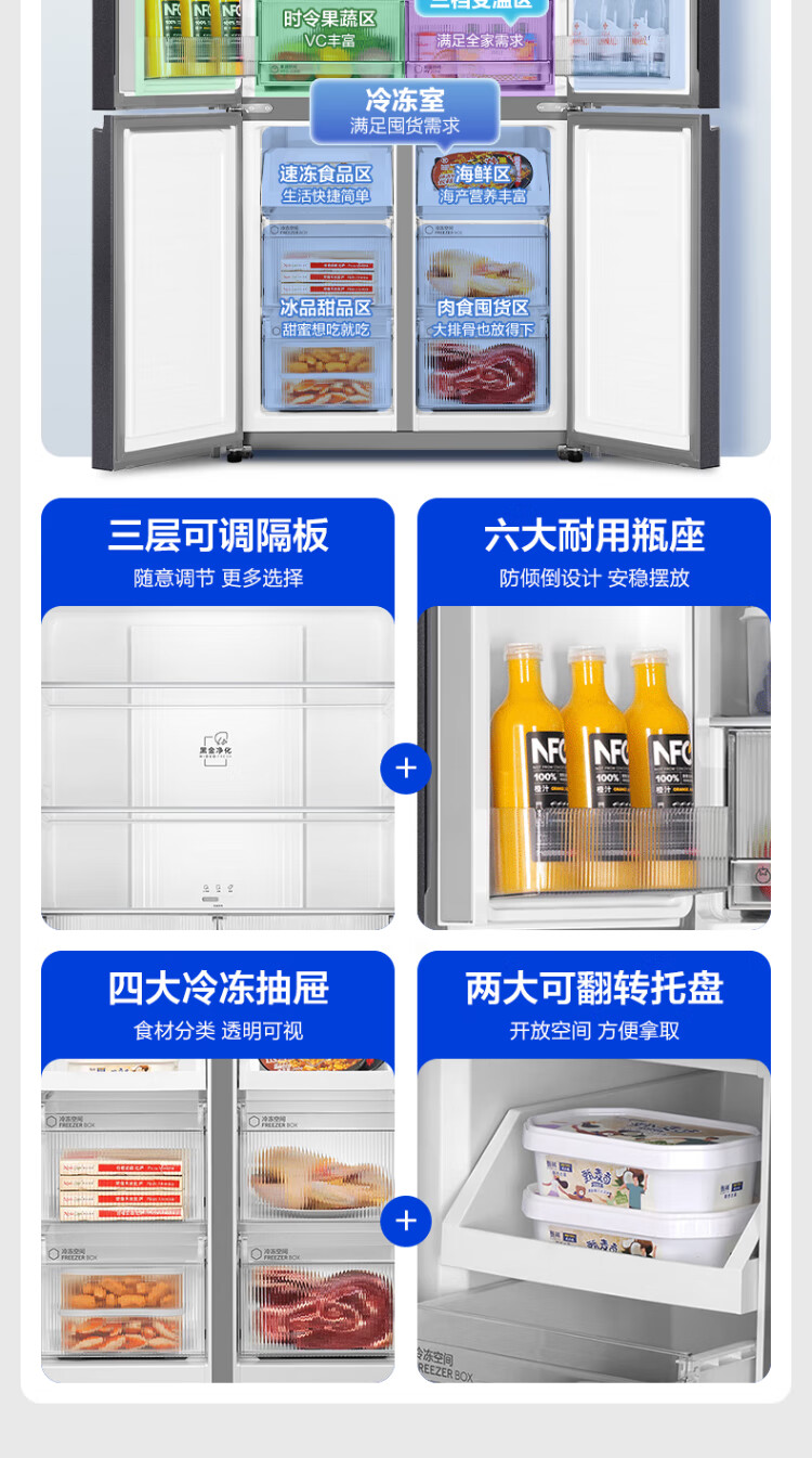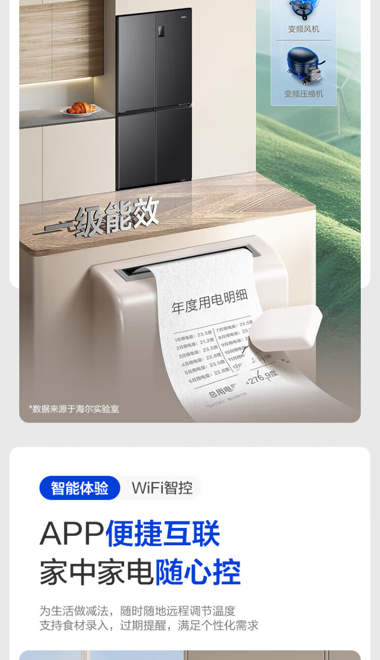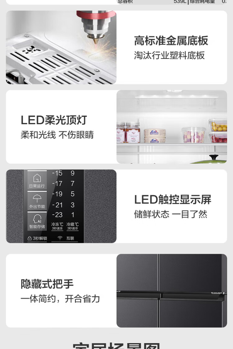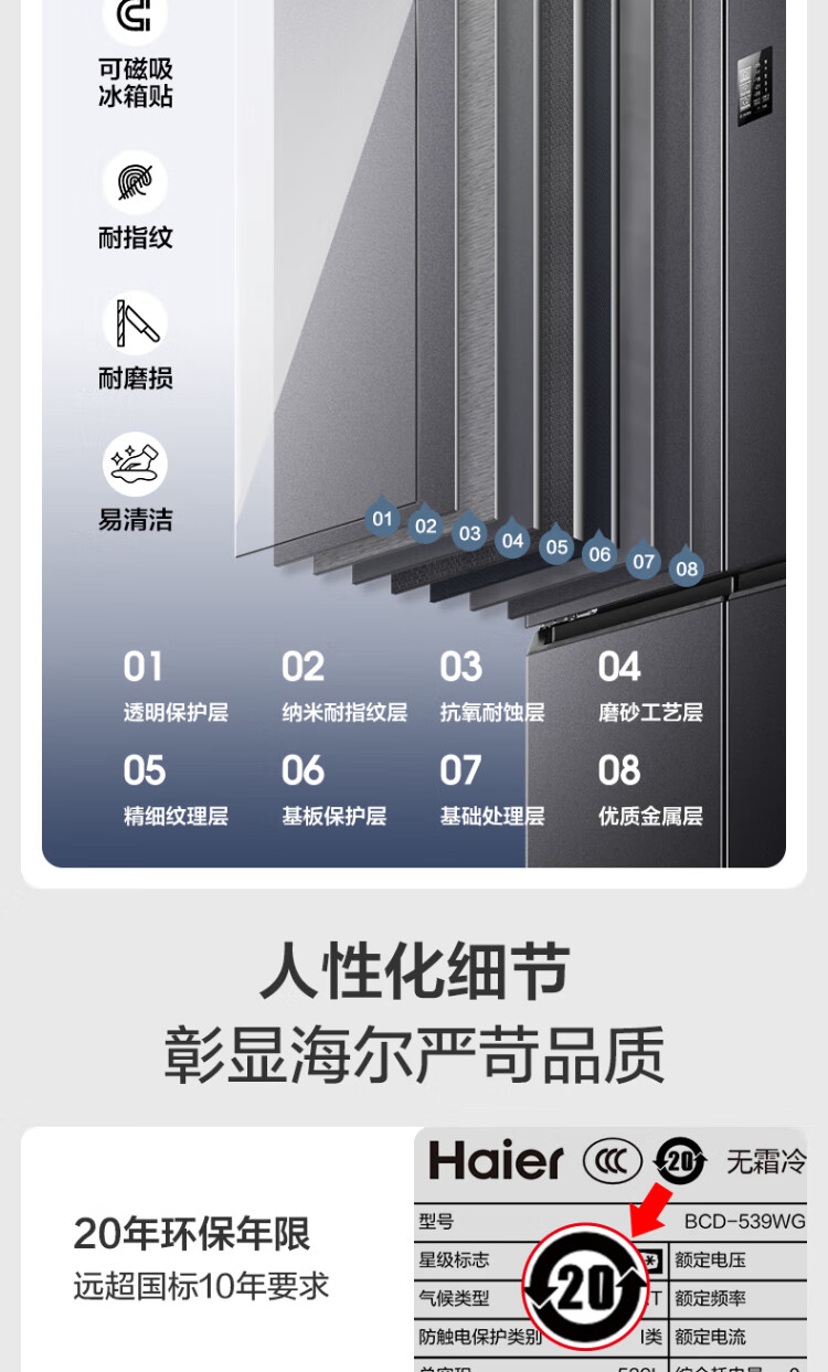 Haier refrigerator 539 liters family banquet series four-door cross-door multi-door first-level dual-frequency double-cycle air-cooled frost-free large-capacity smart home refrigerator with national subsidy 539-liter jade ink silver + first-level dual frequency conversion + black gold purification + third-speed variable temperature zone