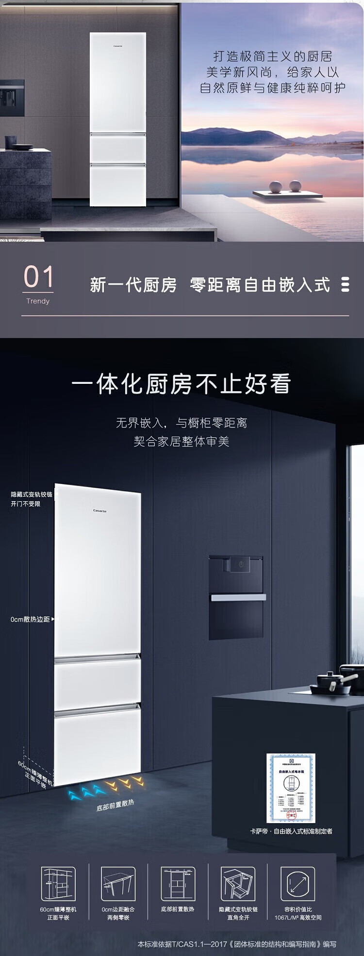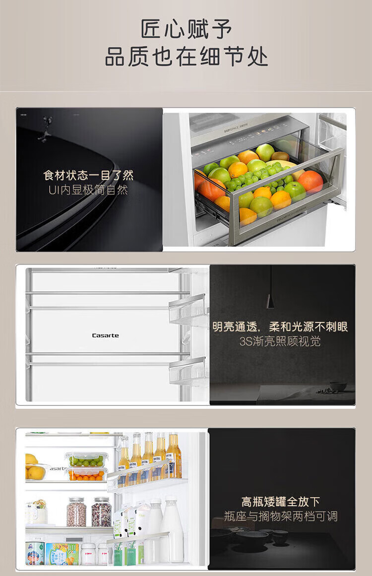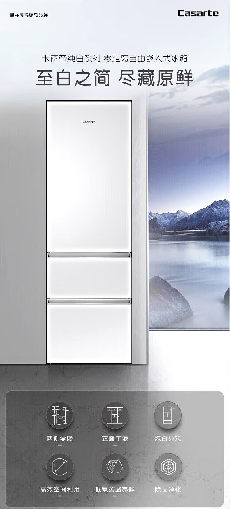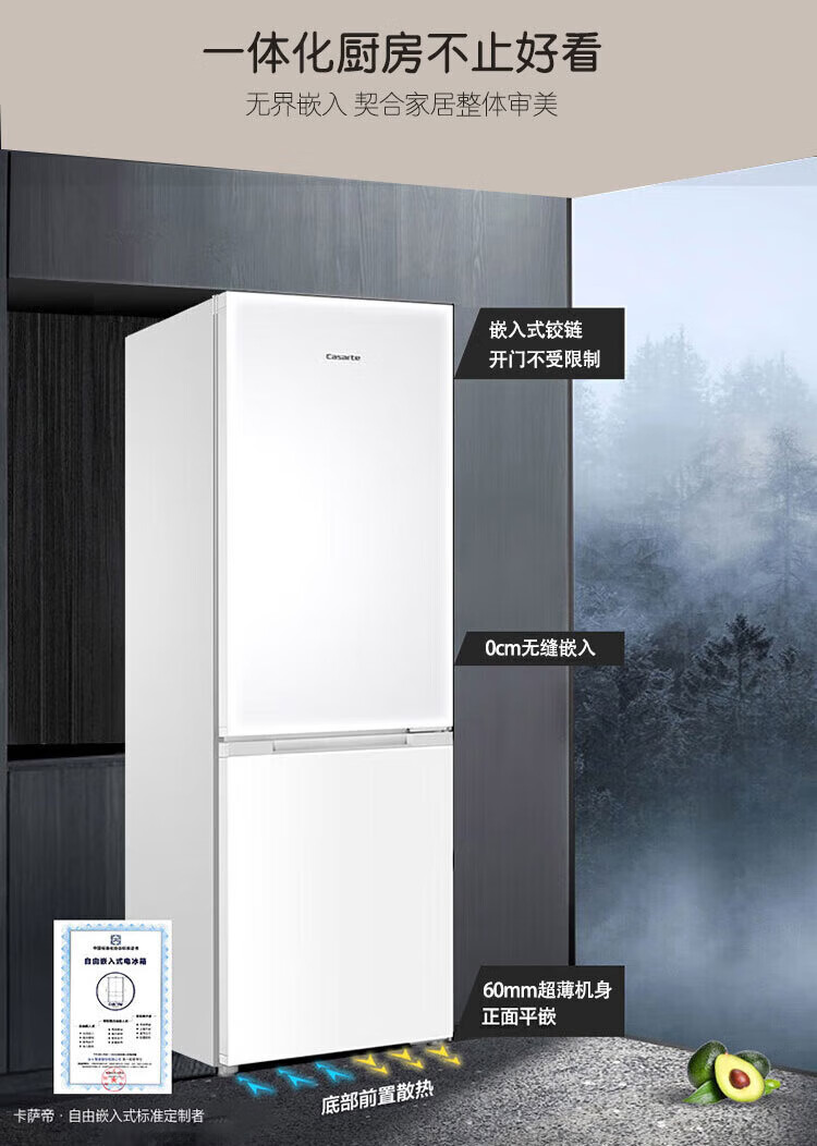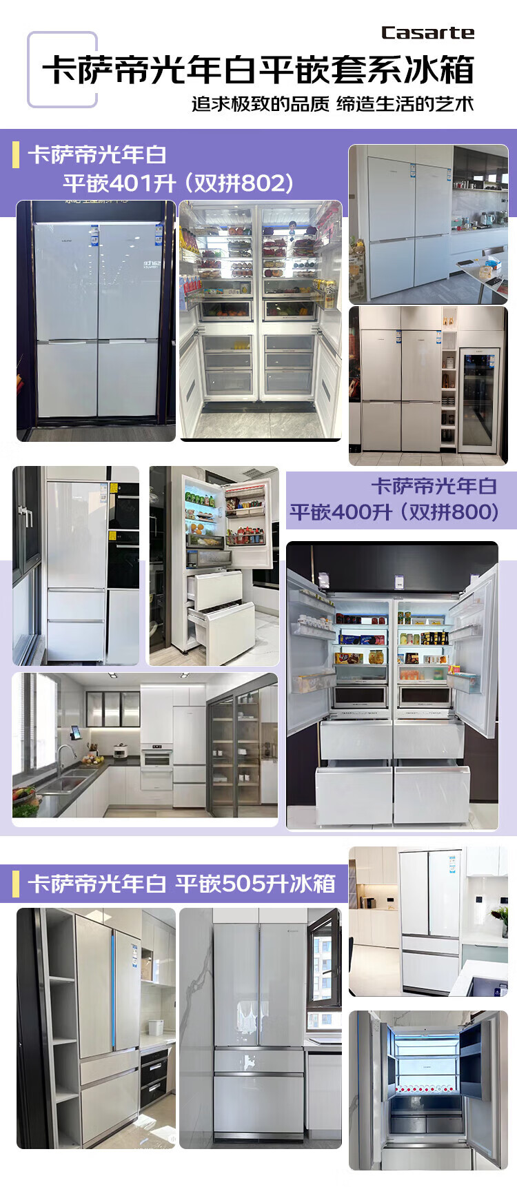 Casarte Guangnian White Series Refrigerator 802 Liter Combination Embedded Ultra-thin 60cm Front Flat Embedded with Zero Embedding on Both Sides First Class Energy Efficiency Variable Frequency Air-cooled Frost-free Household White Refrigerator Light Year White Series 401*2 Unbounded Combination Edition + Zero Distance Flat Embedded