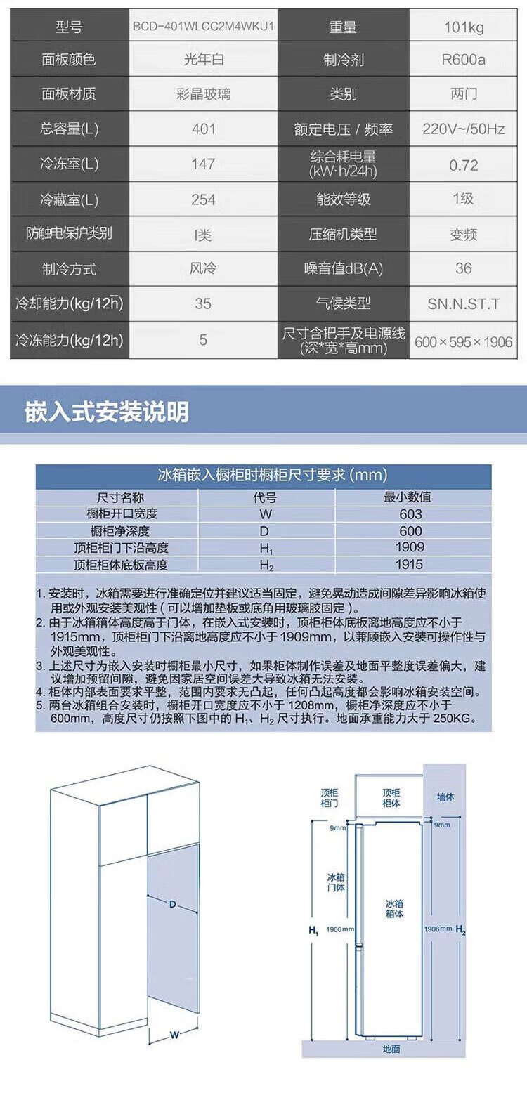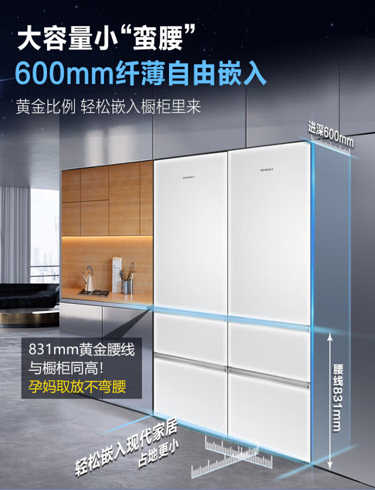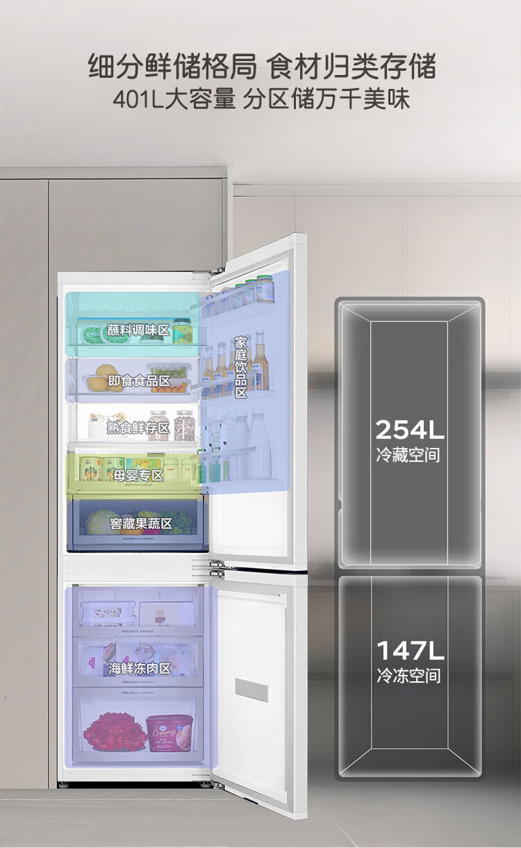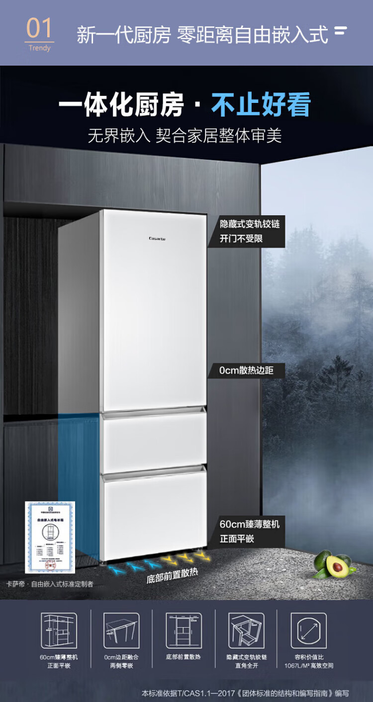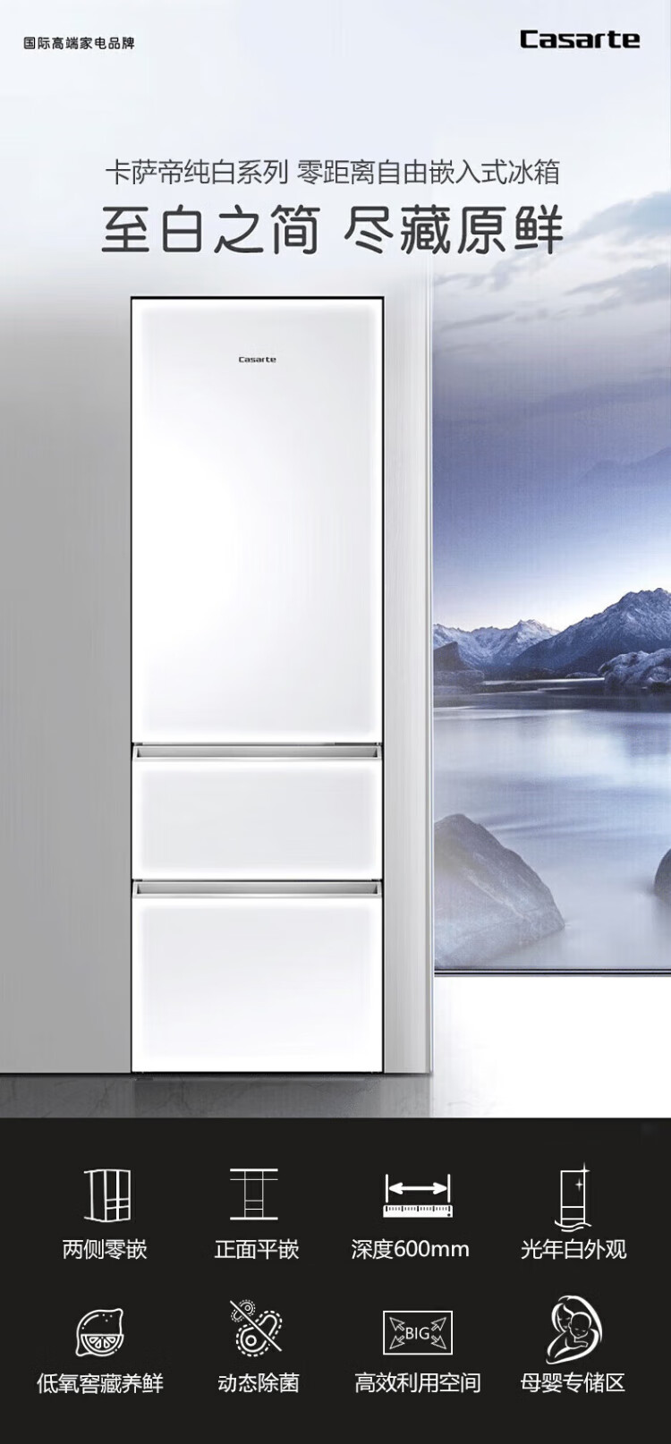 Casarte Guangnian White Series Refrigerator 802 Liter Combination Embedded Ultra-thin 60cm Front Flat Embedded with Zero Embedding on Both Sides First Class Energy Efficiency Variable Frequency Air-cooled Frost-free Household White Refrigerator Light Year White Series 401*2 Unbounded Combination Edition + Zero Distance Flat Embedded