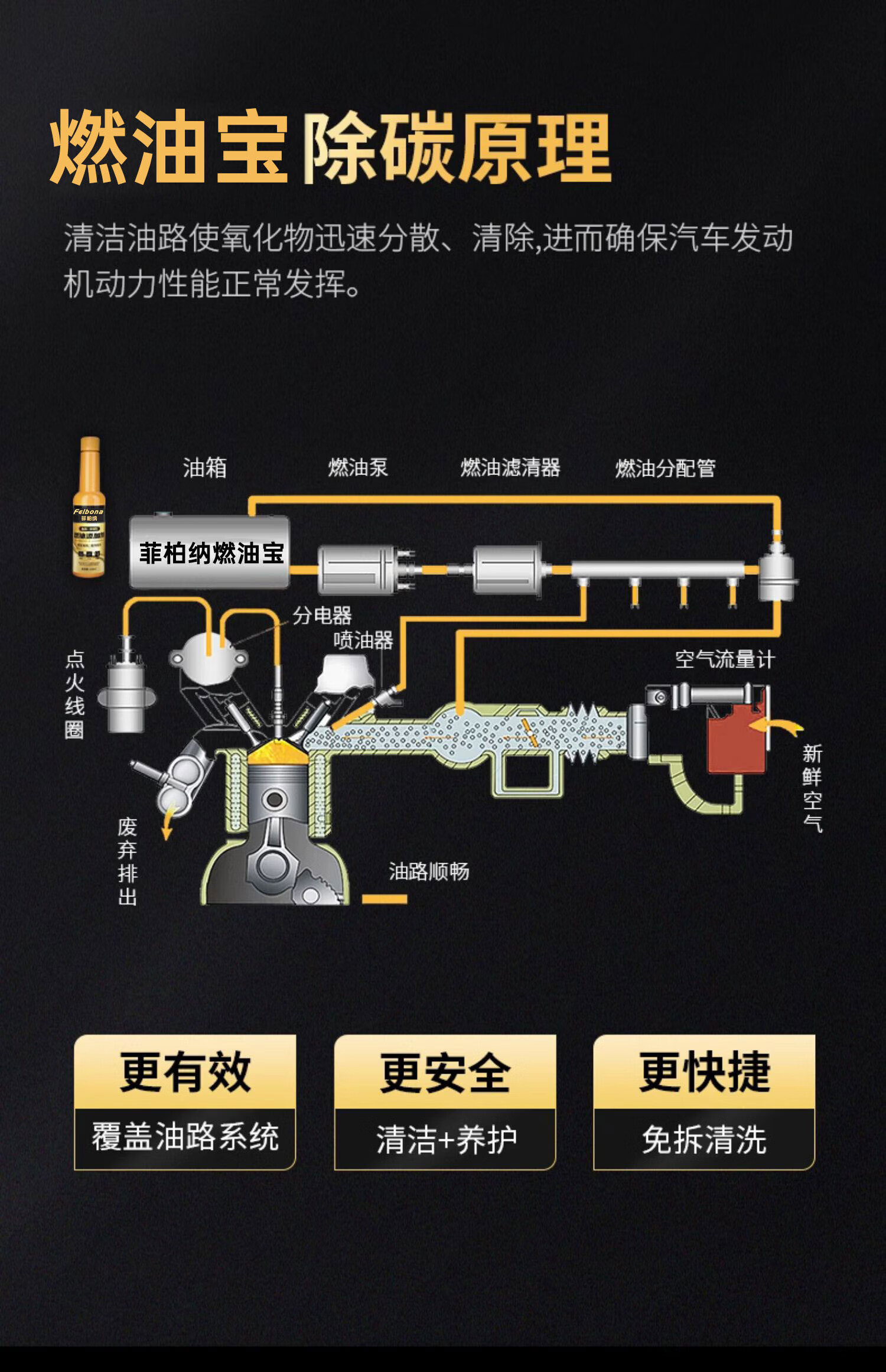 Gasoline three-yuan Cuihua detergent cleaning agent to remove carbon deposits engine catalytic converter liquid cabin anti-wear internal exhaust fuel additive 60ML*6 bottles