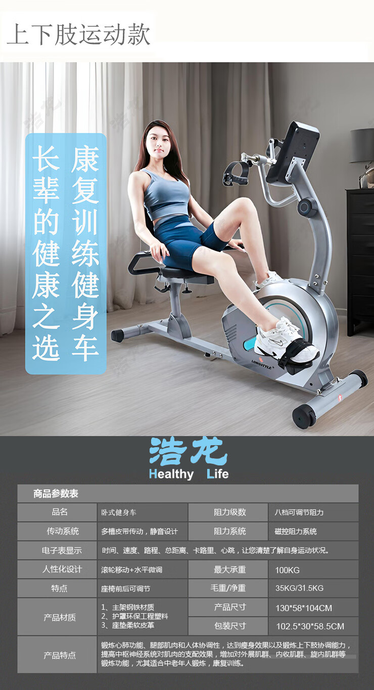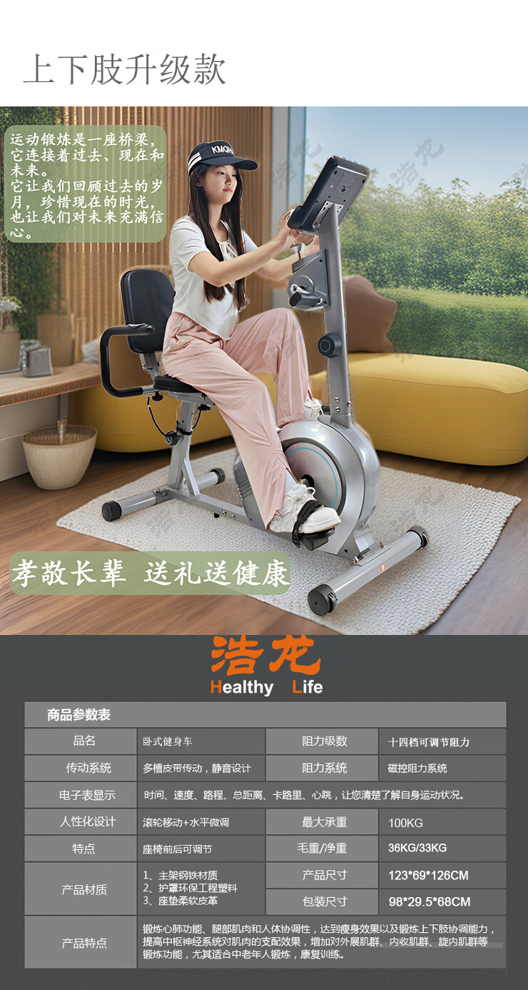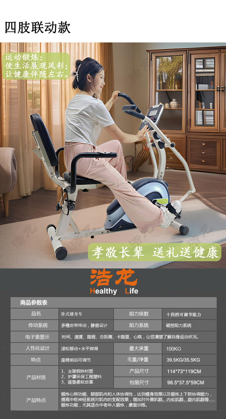 Baichao Langsbo horizontal magnetically controlled upper and lower limb power bicycle for middle-aged and elderly fitness active coordinated backrest rehabilitation training horizontal exercise bike (classic model)