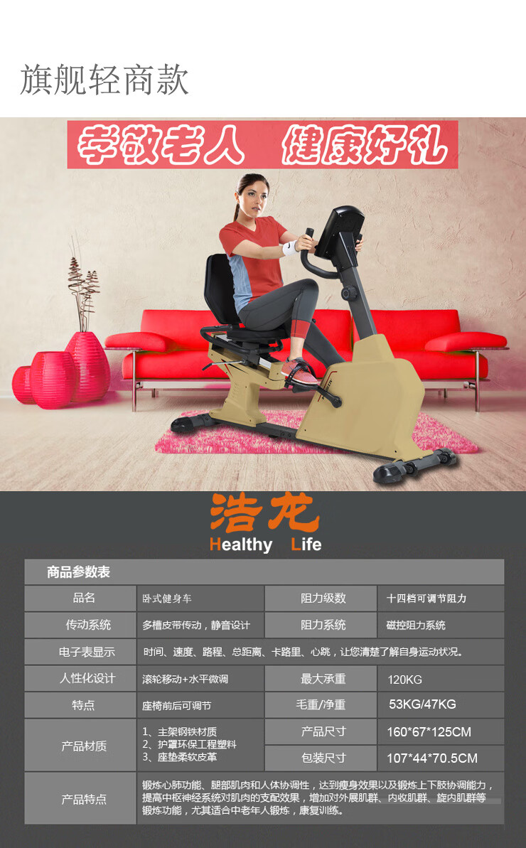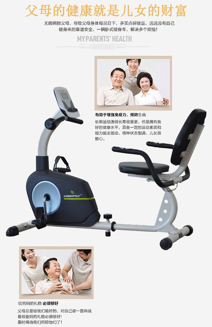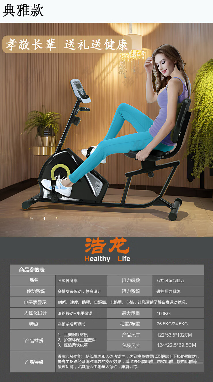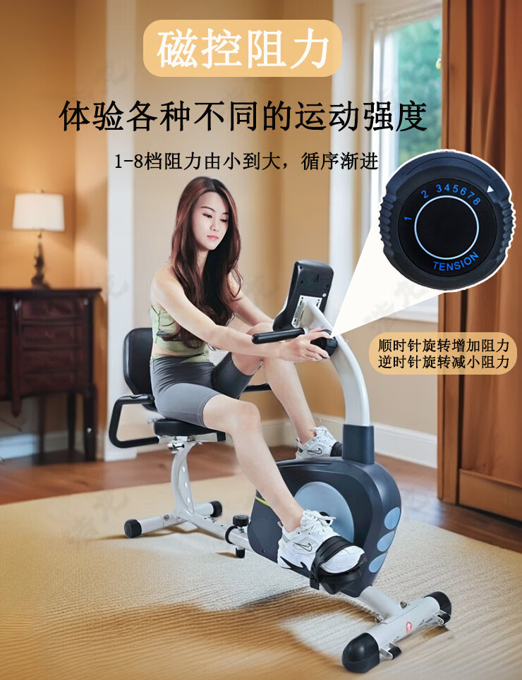 Baichao Langsbo horizontal magnetically controlled upper and lower limb power bicycle for middle-aged and elderly fitness active coordinated backrest rehabilitation training horizontal exercise bike (classic model)