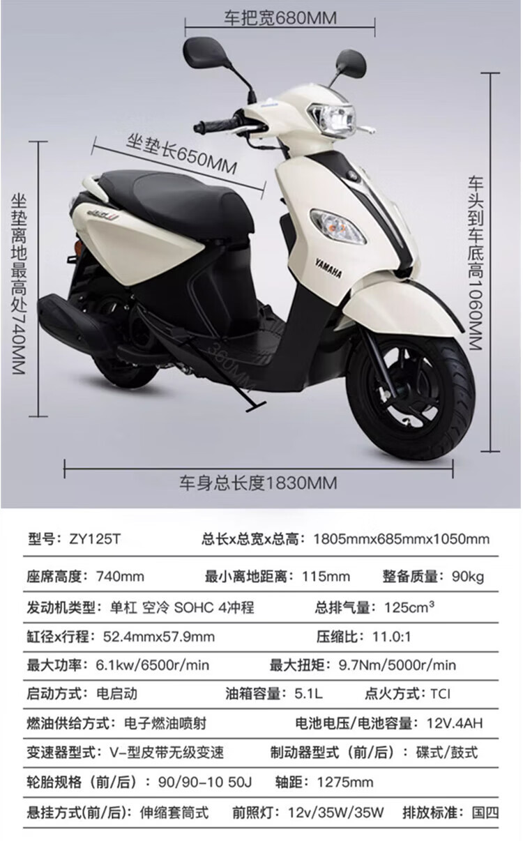 Yamaha Yamaha motorcycle scooter Qiaoge i125 National IV EFI complete vehicle new car Chuanghe Technology PLUS Qiaoge iPLUS white/keyless start + mobile phone control