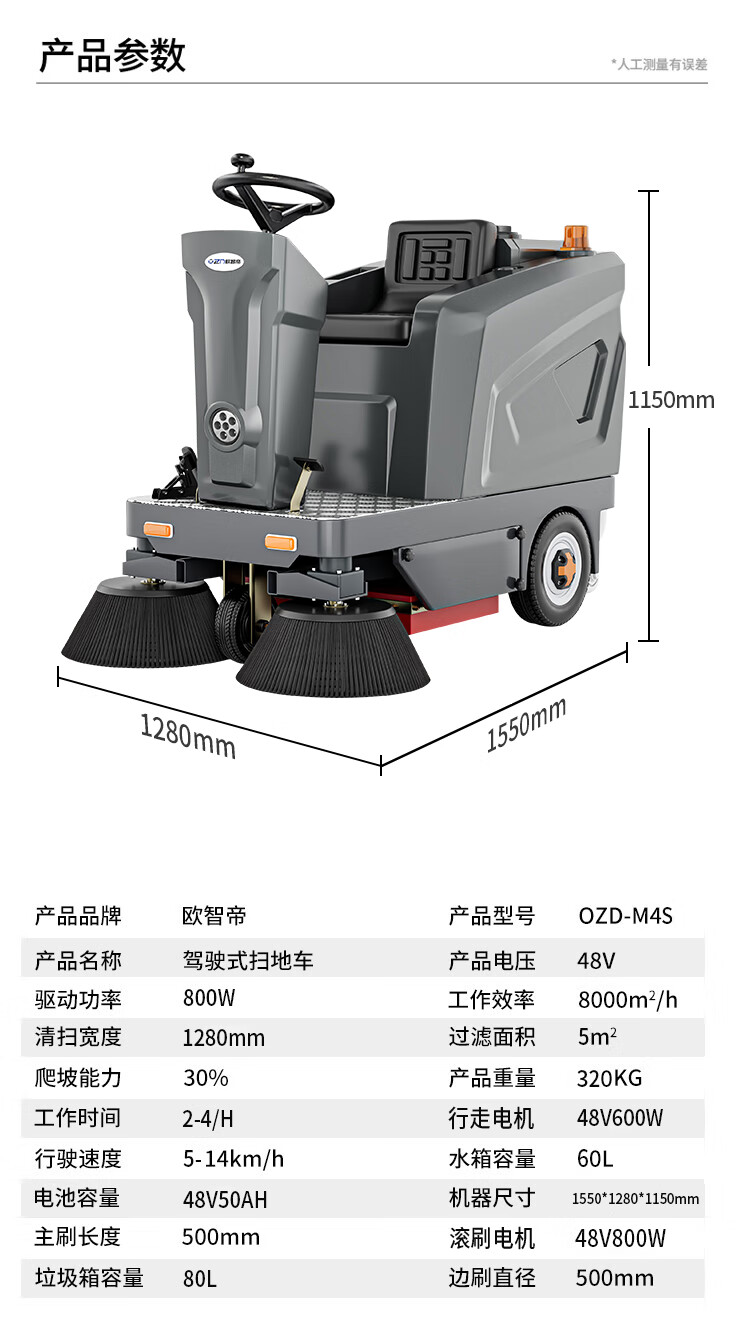 Ouzhidi driving sweeper electric vacuum sweeper factory workshop school garage industrial property road community sanitation sweeper M4S lithium battery 8000/h