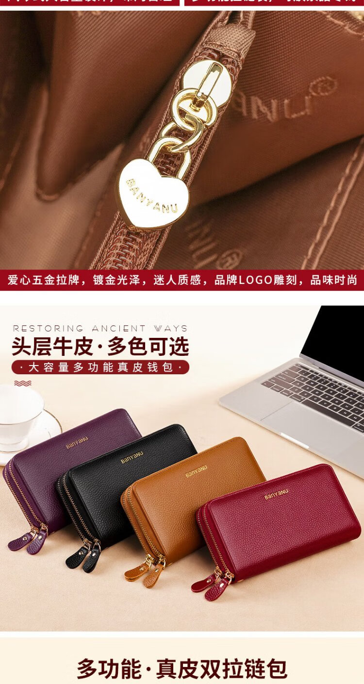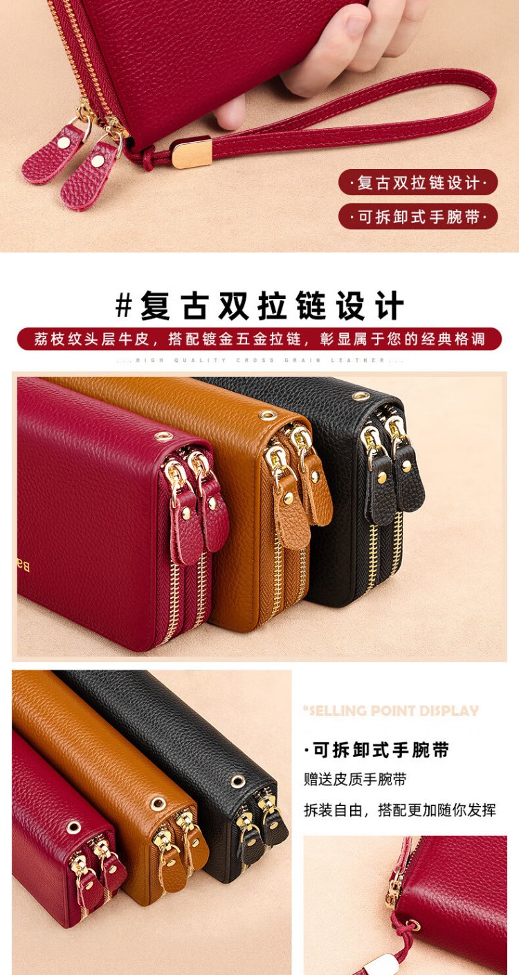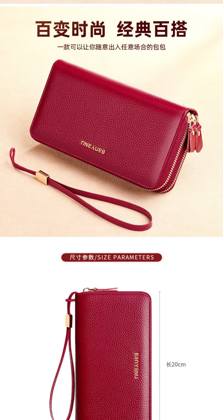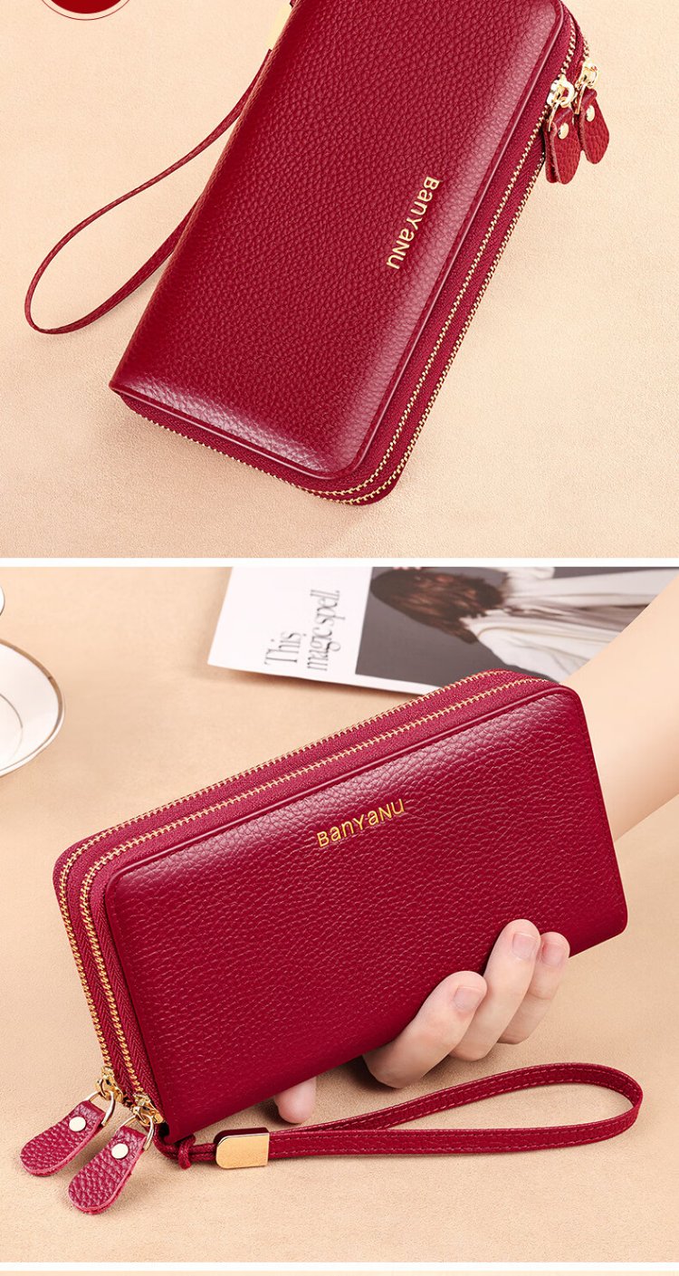 Shenshiyi Wallet Women's Long Style 2025 Chinese Valentine's Day Fashion Large Capacity First Layer Cowhide Wallet Double Zipper Leather Clutch Double Zipper Leather Clutch 9009 Burgundy
