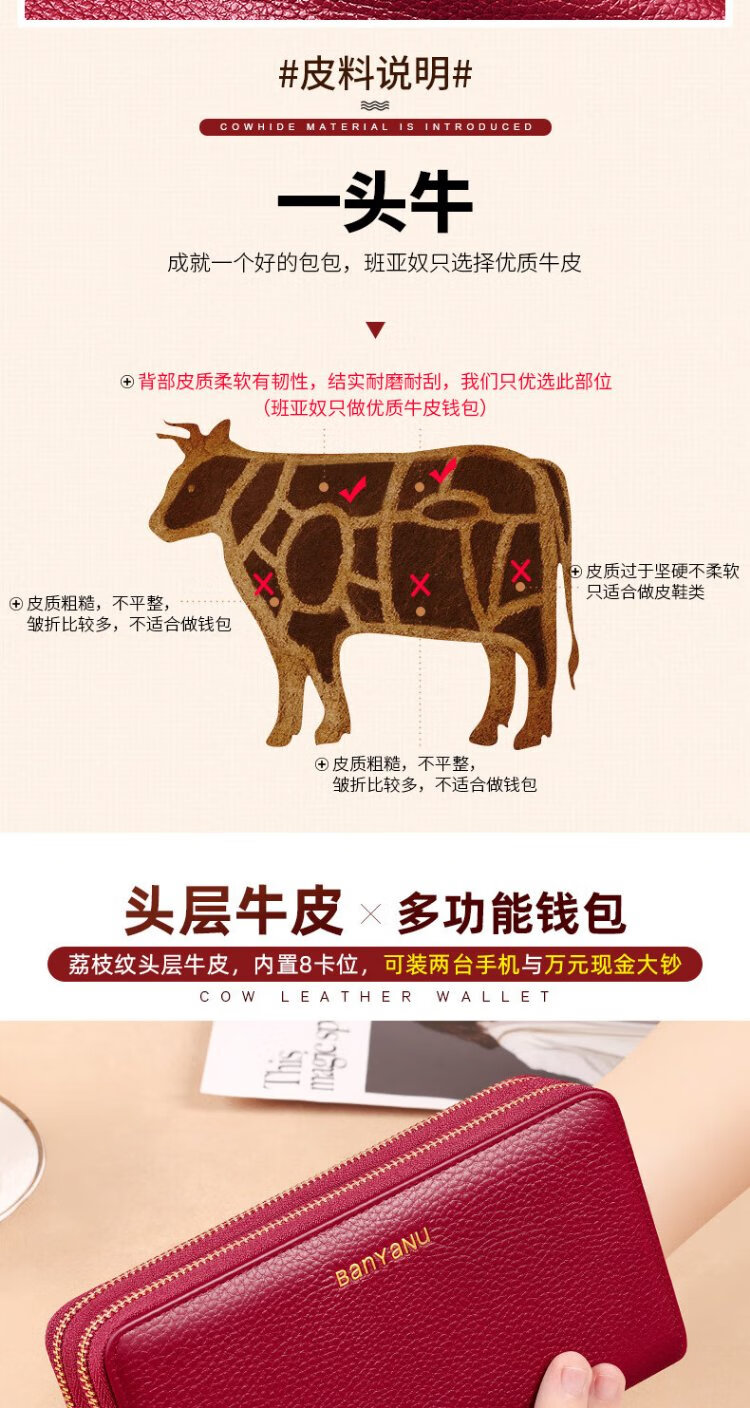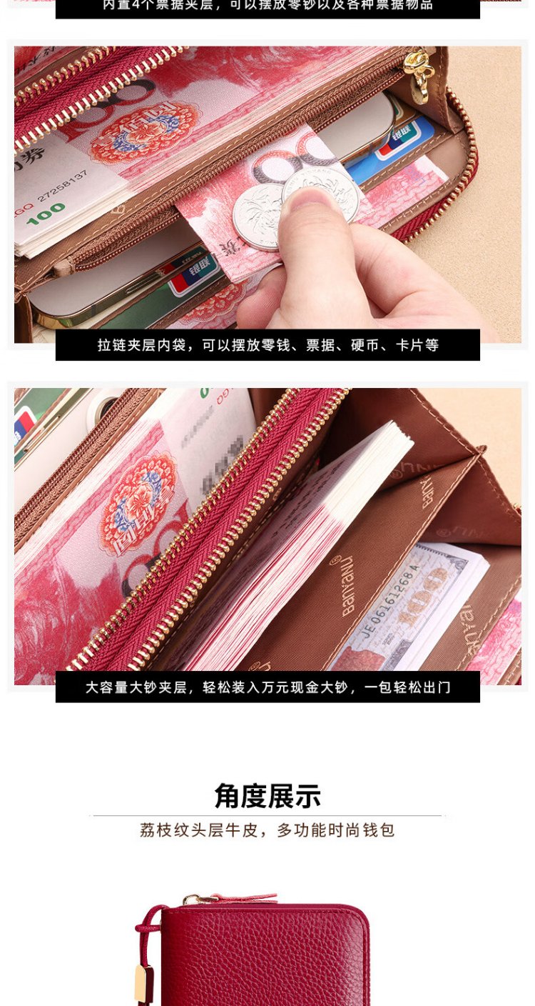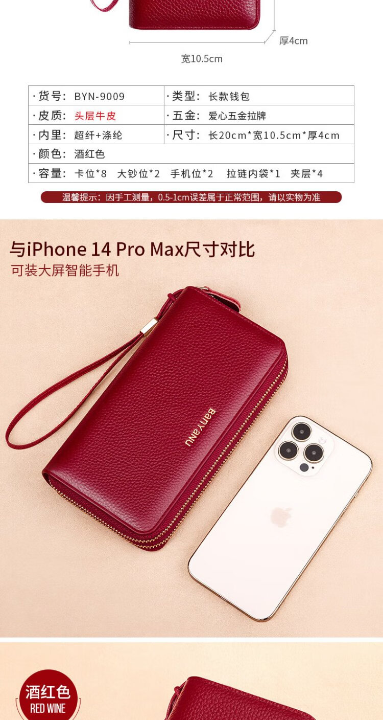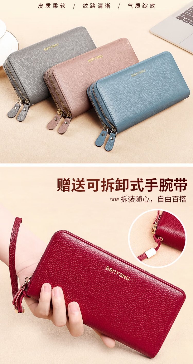 Shenshiyi Wallet Women's Long Style 2025 Chinese Valentine's Day Fashion Large Capacity First Layer Cowhide Wallet Double Zipper Leather Clutch Double Zipper Leather Clutch 9009 Burgundy