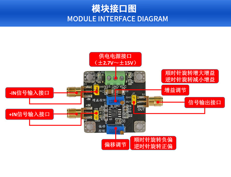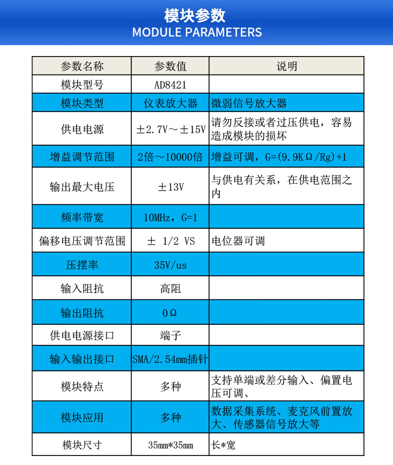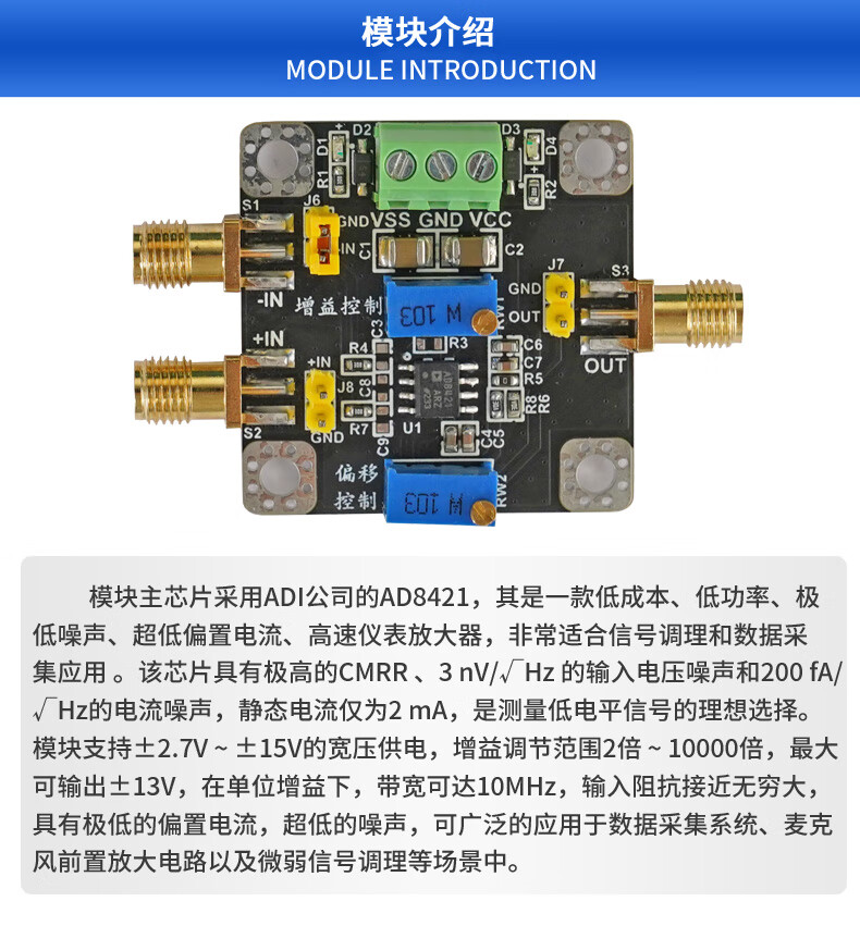 AD8421 instrumentation amplifier module high-precision mV/uV weak small signal amplifier single-ended differential
