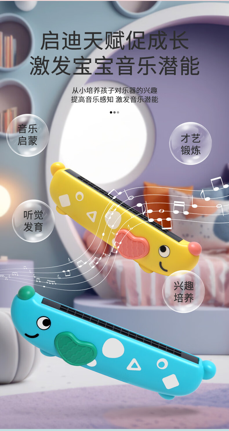 GUEIN harmonica for children 0-3 years old toy baby infant special musical instrument small horn can whistle for beginners easy to learn Locke yellow sound quality is improved, light and resistant to falling