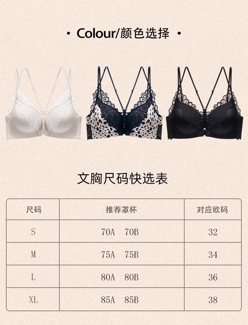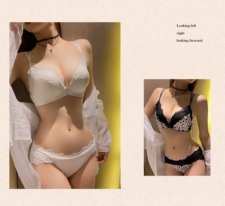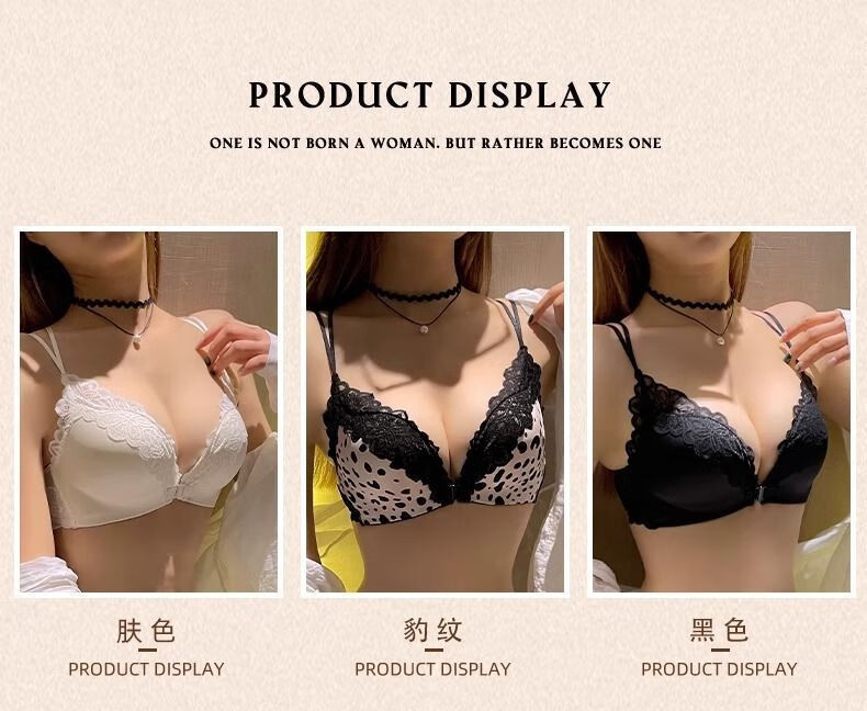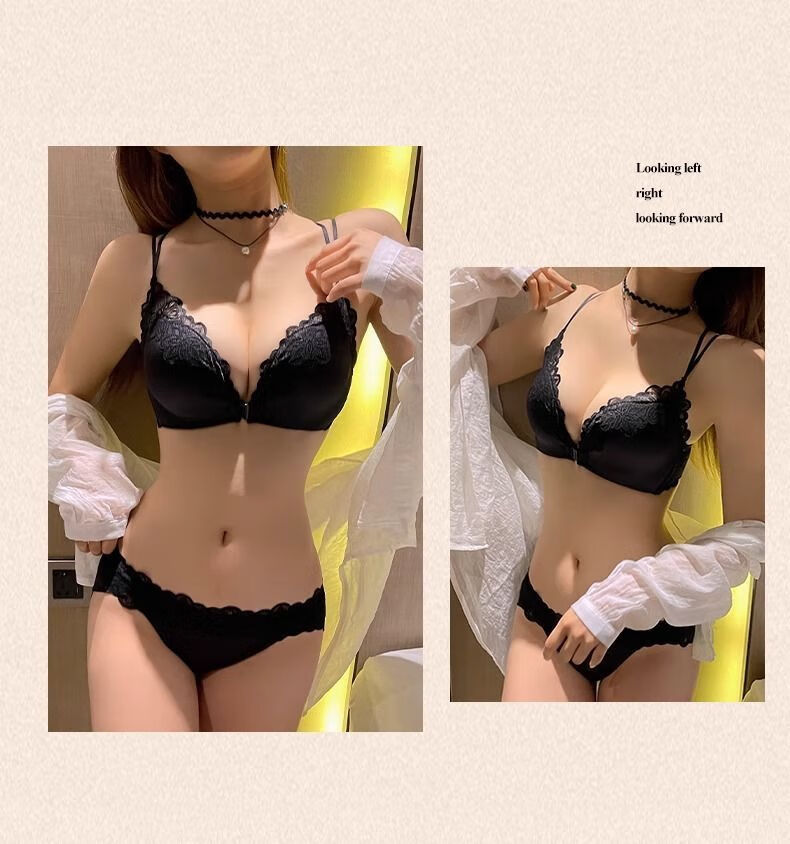 Modal Lace Front Button Sexy Underwear Women's Suit Push-Up, Suppressing Breasts, Anti-Sagging, Leopard Print Beautiful Back, Wireless Bra Black - Suit L -36/80AB Small Breast Push-Up