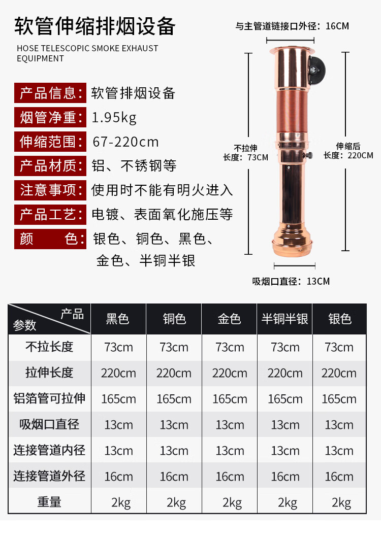 Korean barbecue smoke exhaust pipe barbecue restaurant upper smoke barbecue telescopic exhaust pipe smoking machine exhaust equipment commercial silver telescopic pipe bold