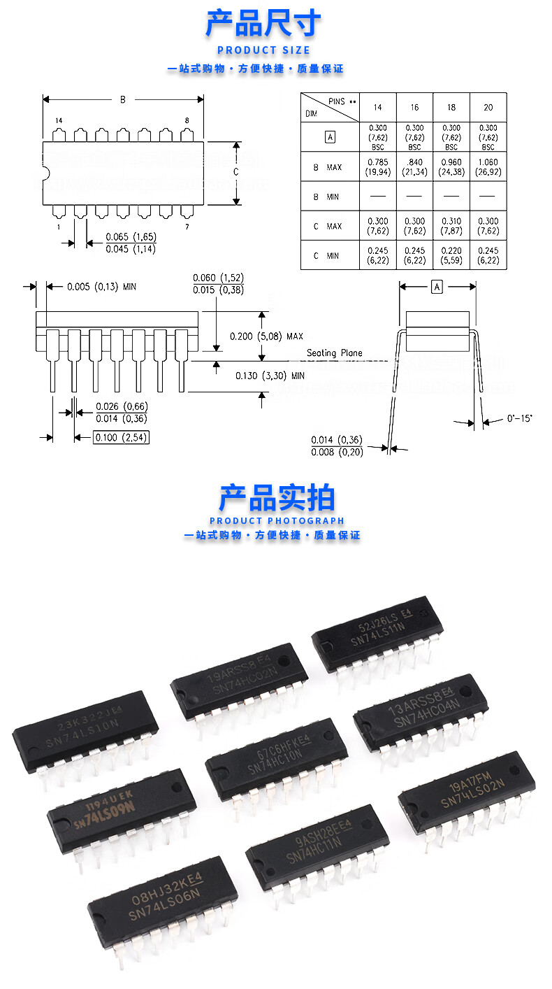 SN74LS00 01 02 03 04 05 06 07 08 09 10 11 14 N chip DI SN74LS08 package DIP-14