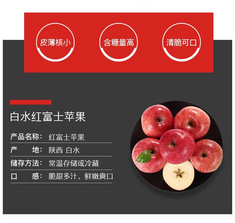 Quan Shenglong Shaanxi Baishui Red Fuji Apple 2025 New Fruit Seasonal Fruit Crisp and Sweet Optional Festival Gift Box Red Fuji 4.5 catties 75-80mm