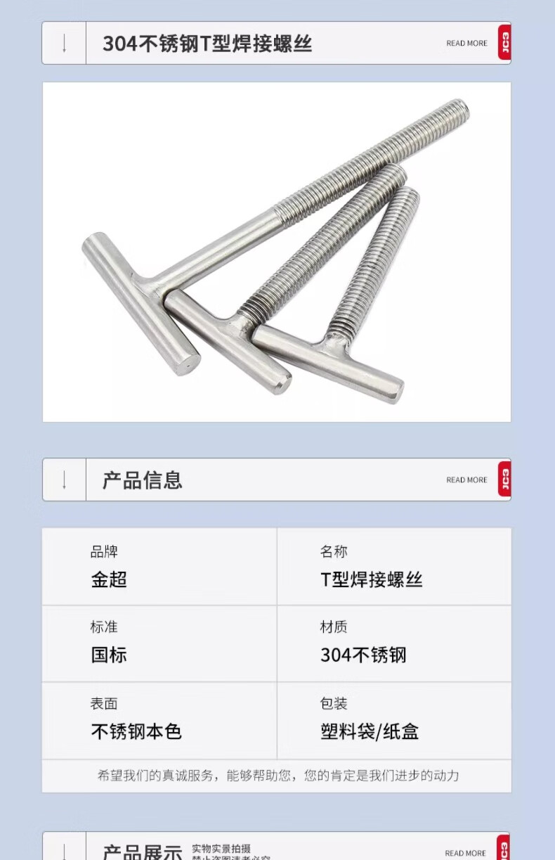 Jinchao 304 stainless steel T-shaped screw welding screw T-shaped screw T-bolt M4M5M6M8M10M12 M5*40 (5 pieces)