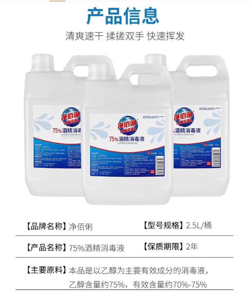 Jingbaili 75% Alcohol Disinfectant 2.5L