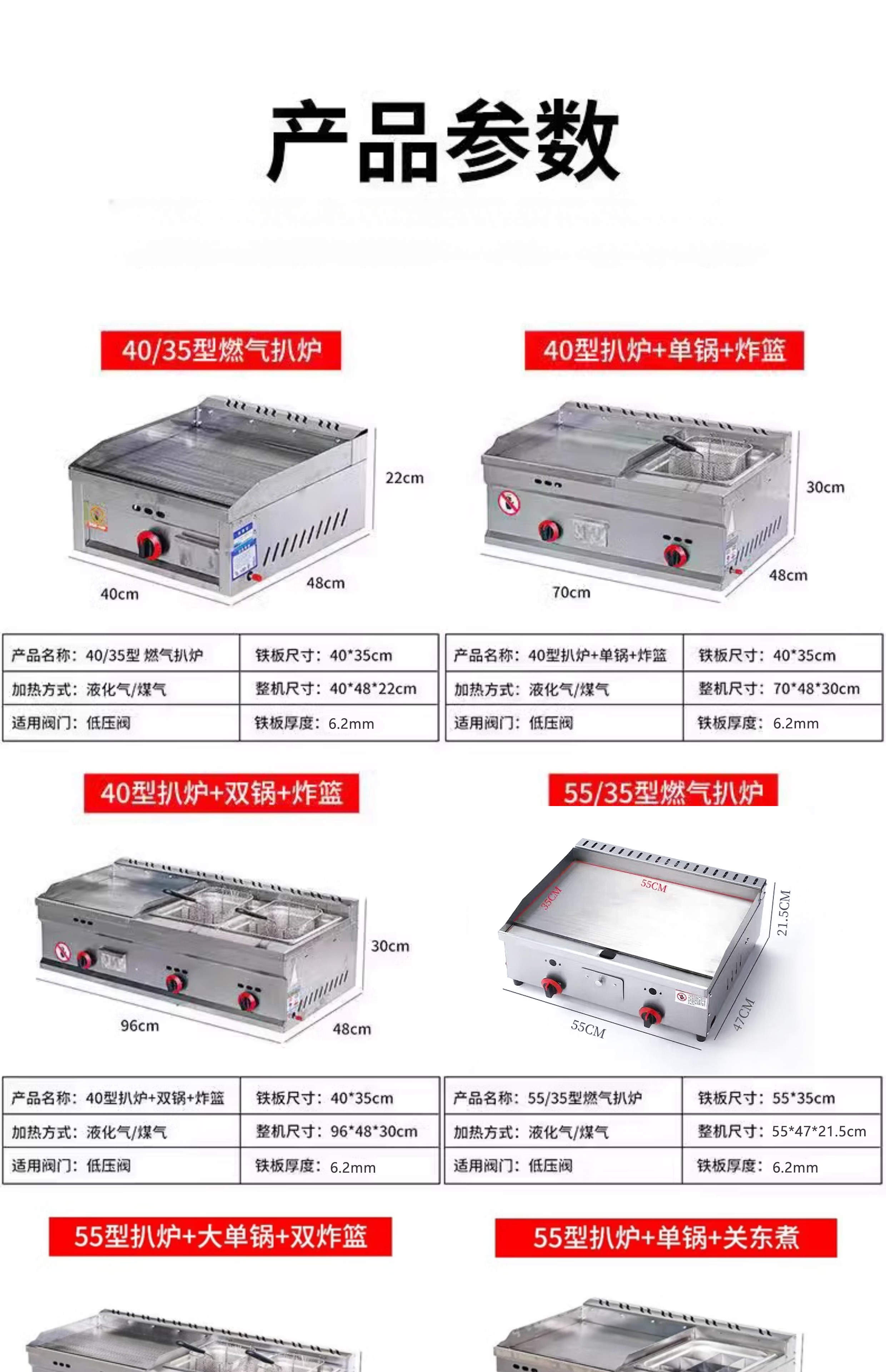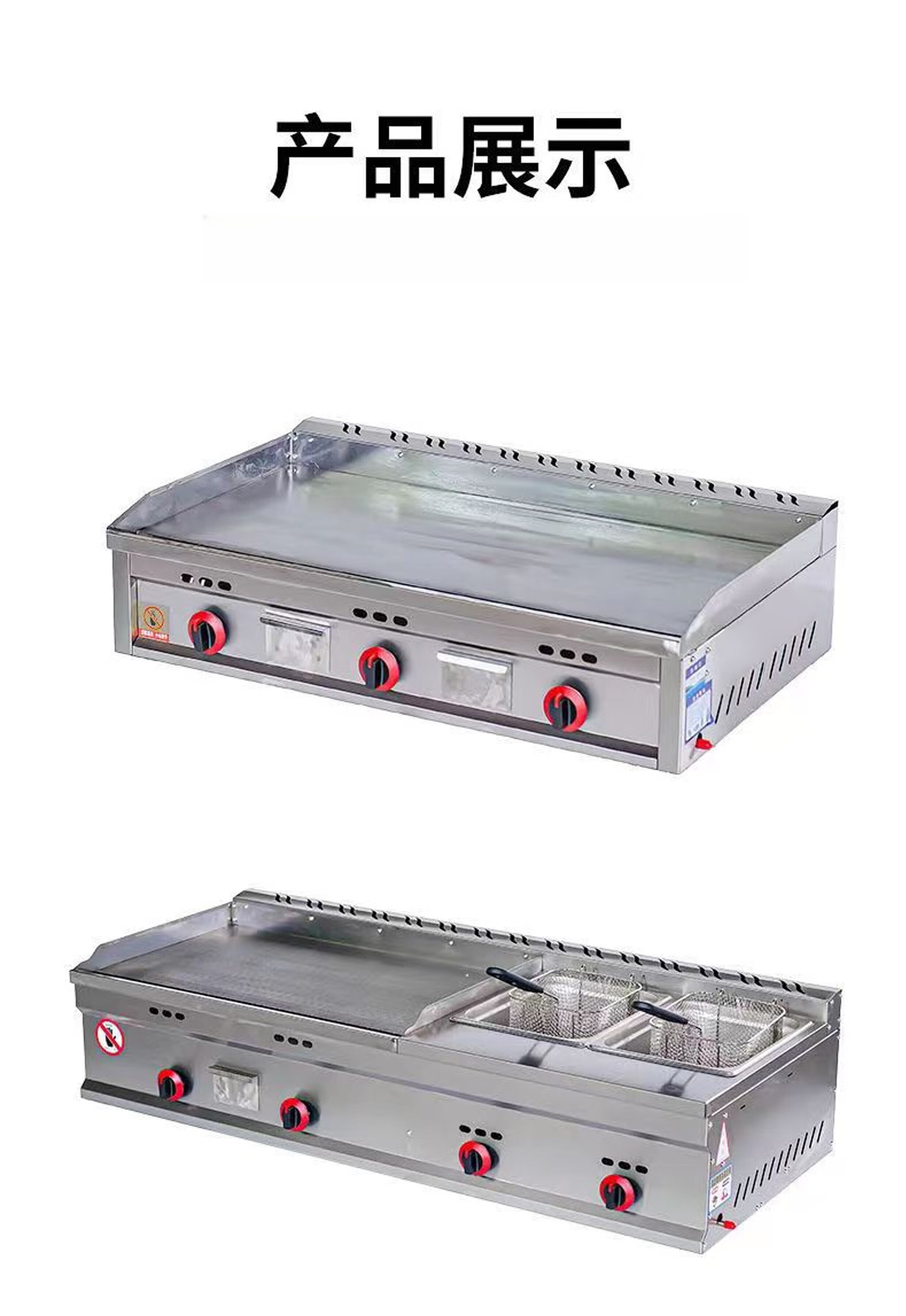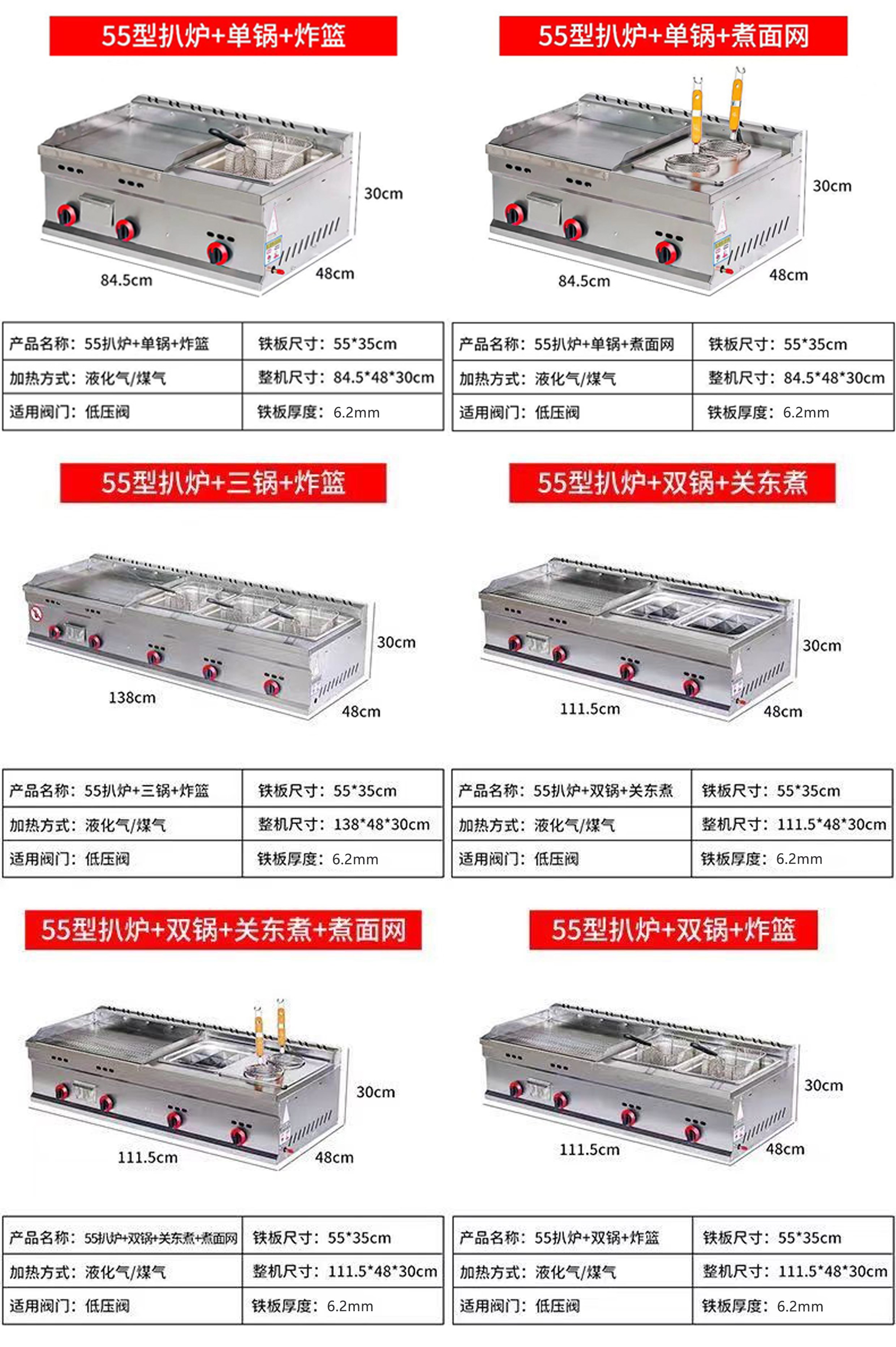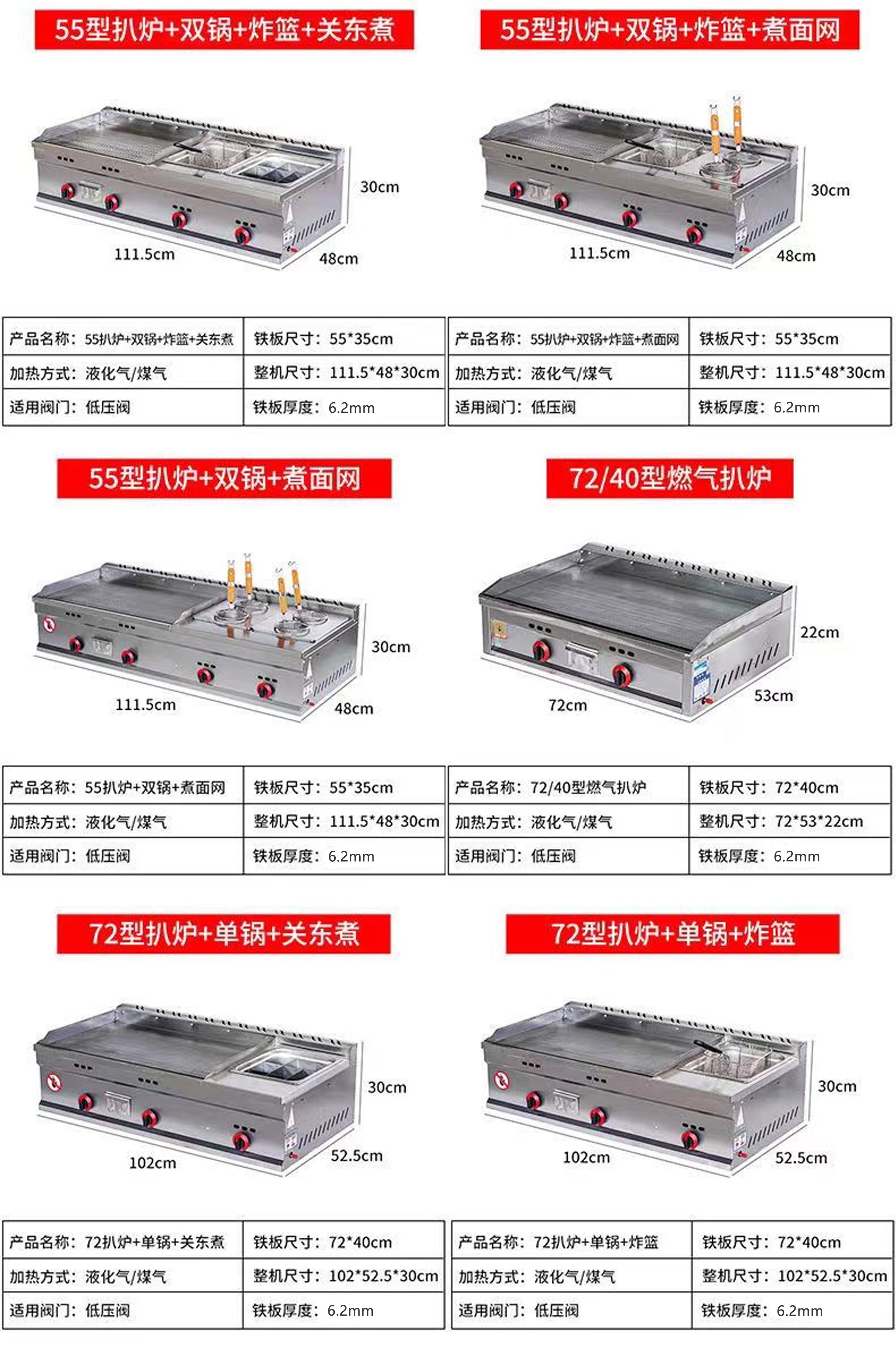 Commercial hand cake machine, frying griddle, frying pan, Teppanyaki all-in-one machine, stall gas, gas grilled cold noodles, electric oven, 55 thickened griddle + double pot + frying basket