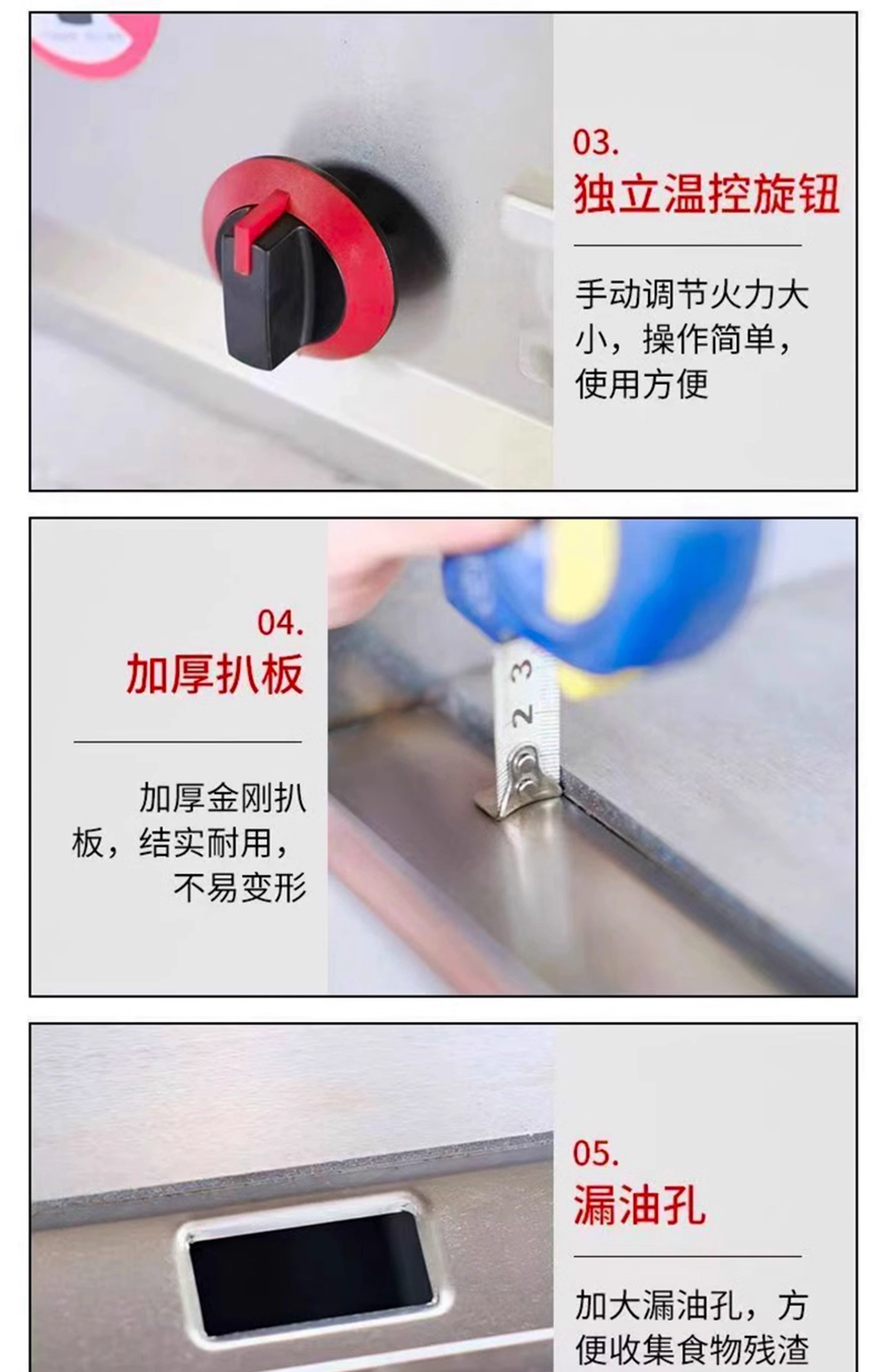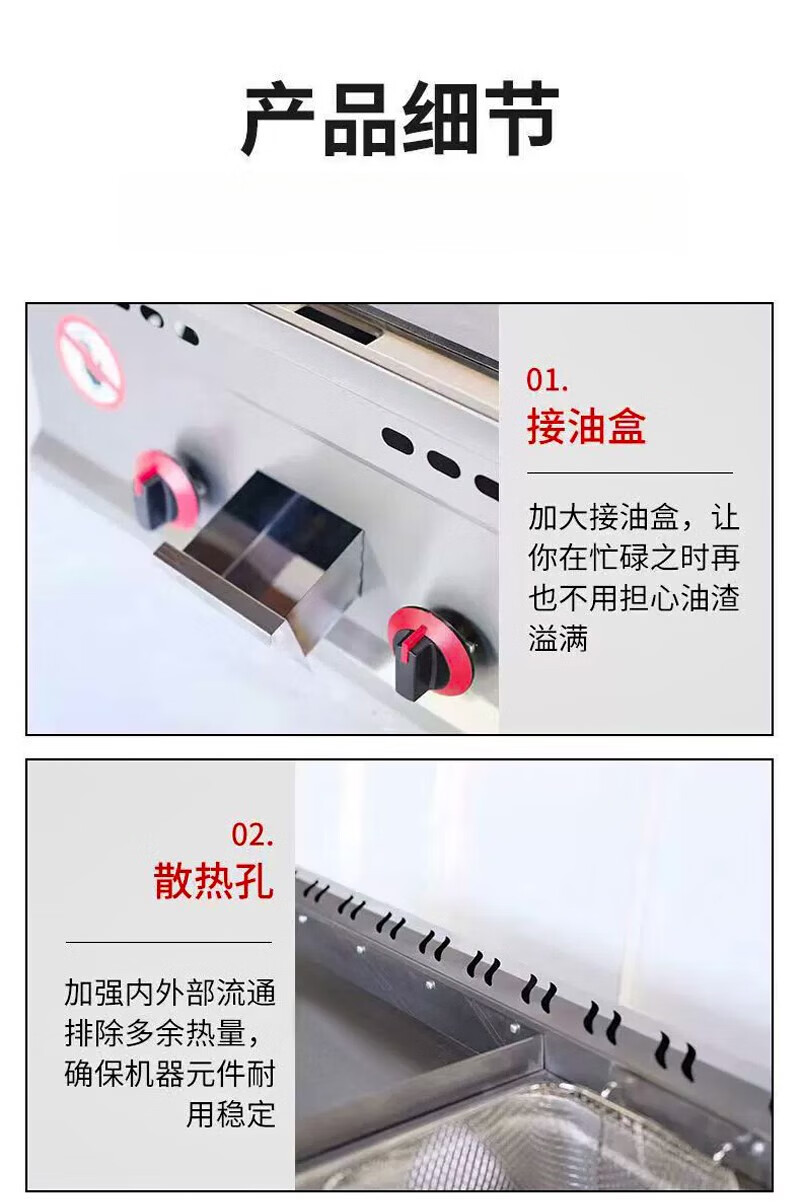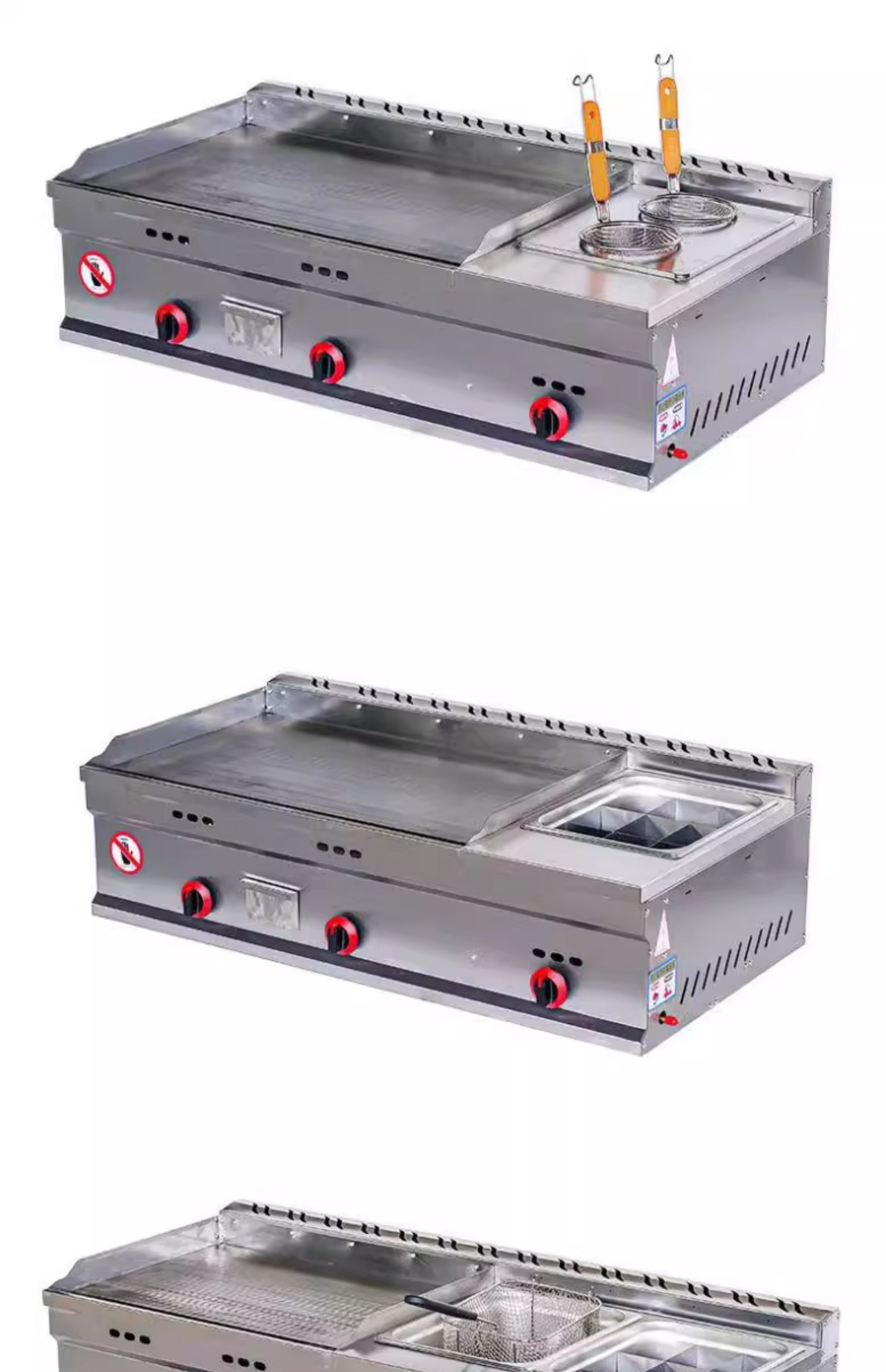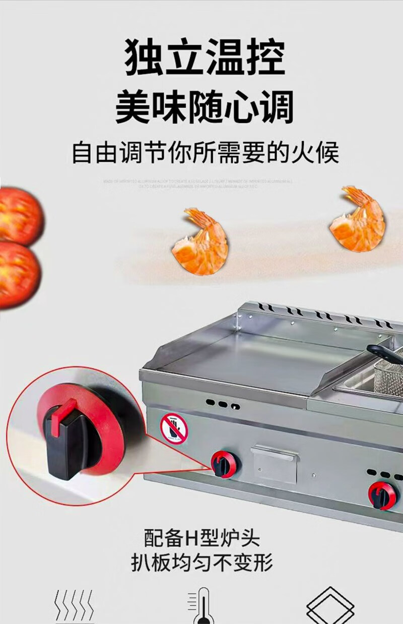 Commercial hand cake machine, frying griddle, frying pan, Teppanyaki all-in-one machine, stall gas, gas grilled cold noodles, electric oven, 55 thickened griddle + double pot + frying basket