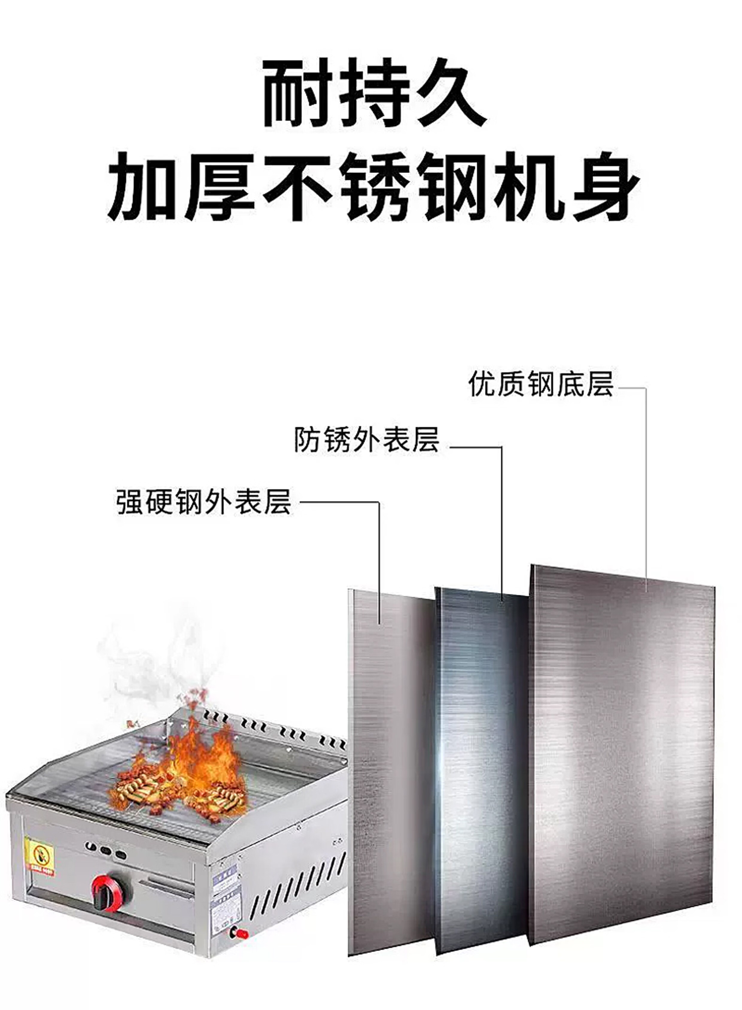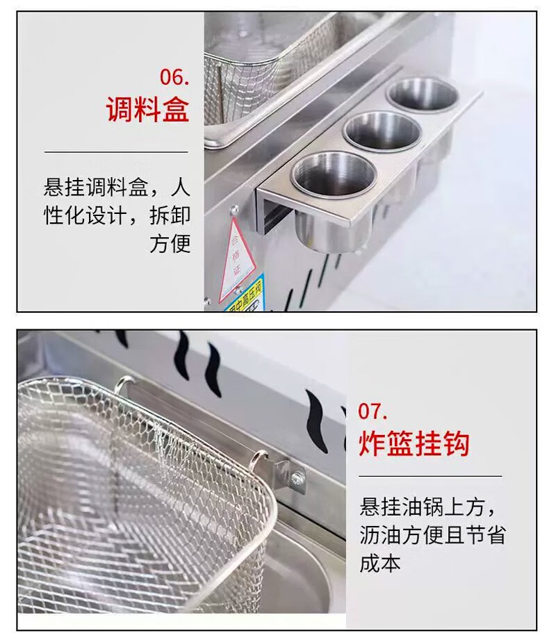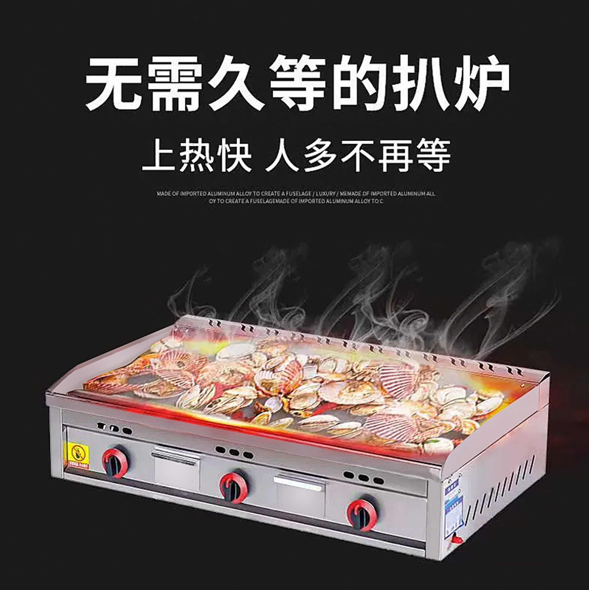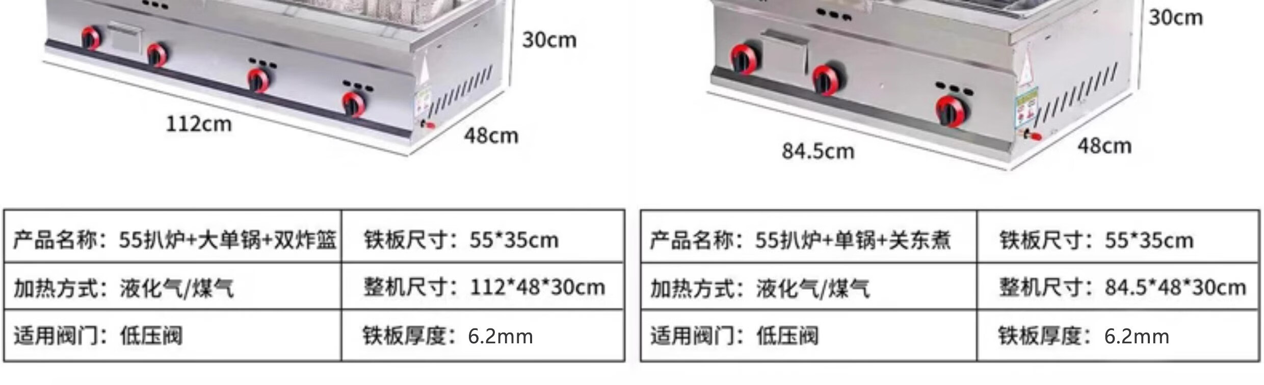 Commercial hand cake machine, frying griddle, frying pan, Teppanyaki all-in-one machine, stall gas, gas grilled cold noodles, electric oven, 55 thickened griddle + double pot + frying basket