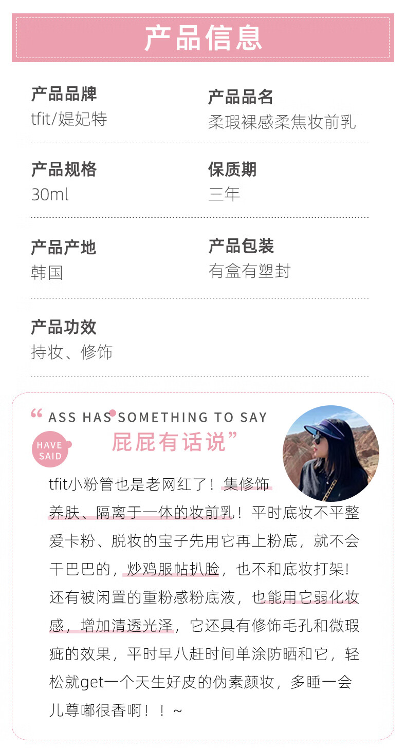 Tfit Isolating Makeup Primer, Oil Control, Invisible Pore Primer, Brightening Skin Color, Concealer, No Makeup Cream for Women, Pink Makeup Primer - Invisible Pores 30ml
