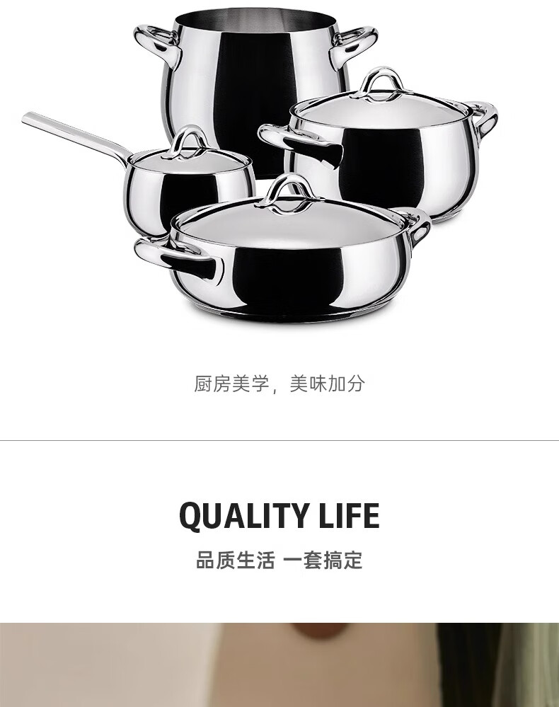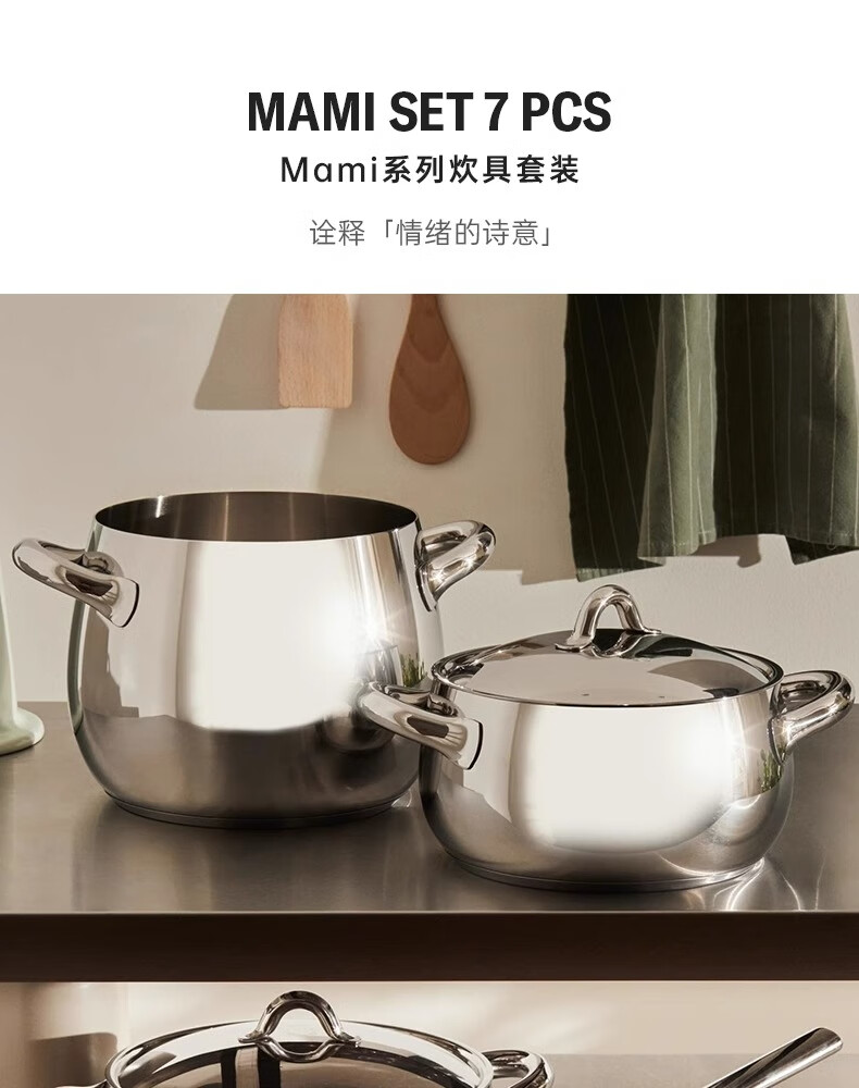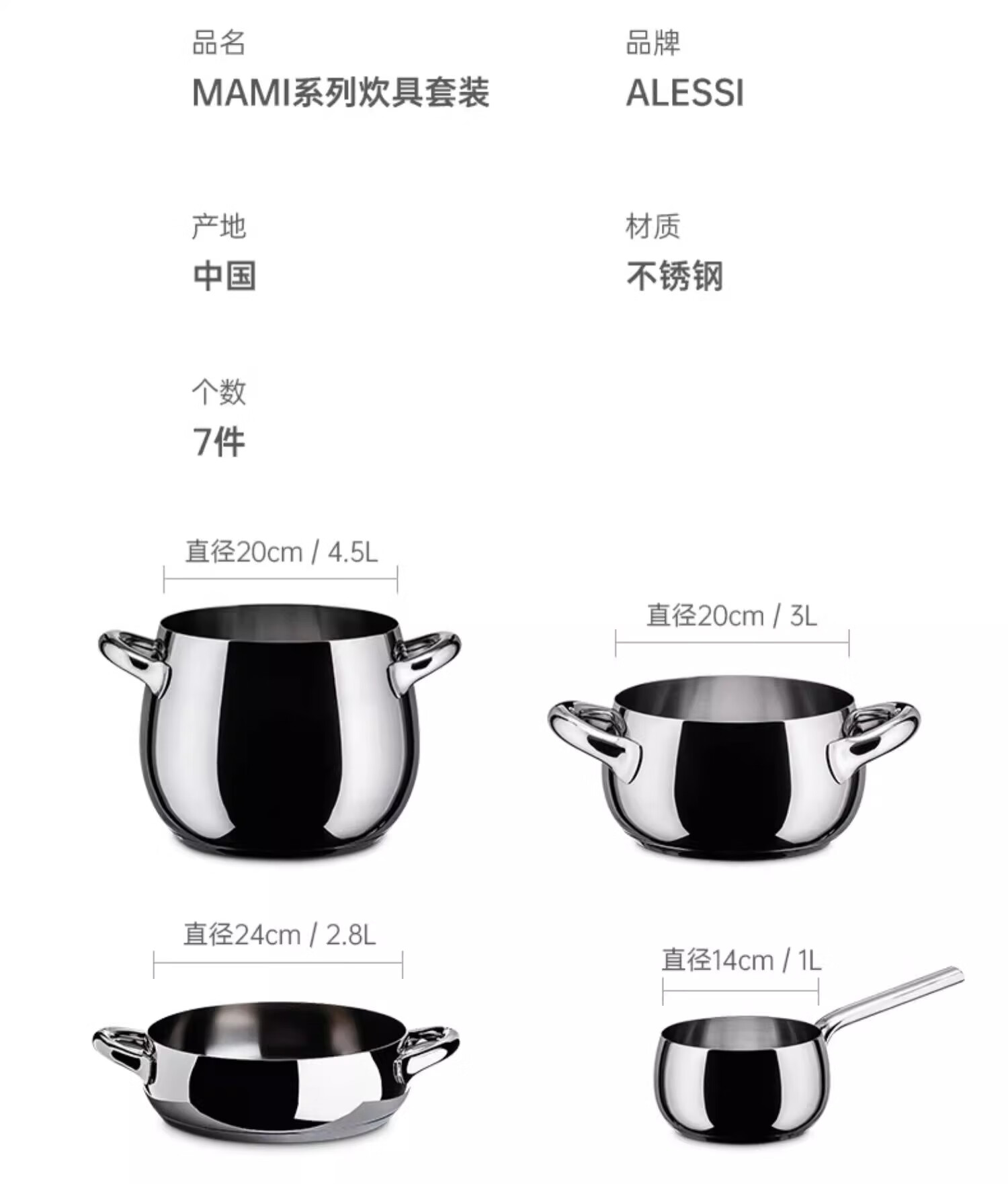 VINCE LIN Italian ALESSI/Mami series cookware pot set household stew pot seven-piece set stainless steel new home gift cookware set-7-piece set/SG100S7