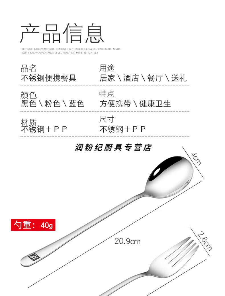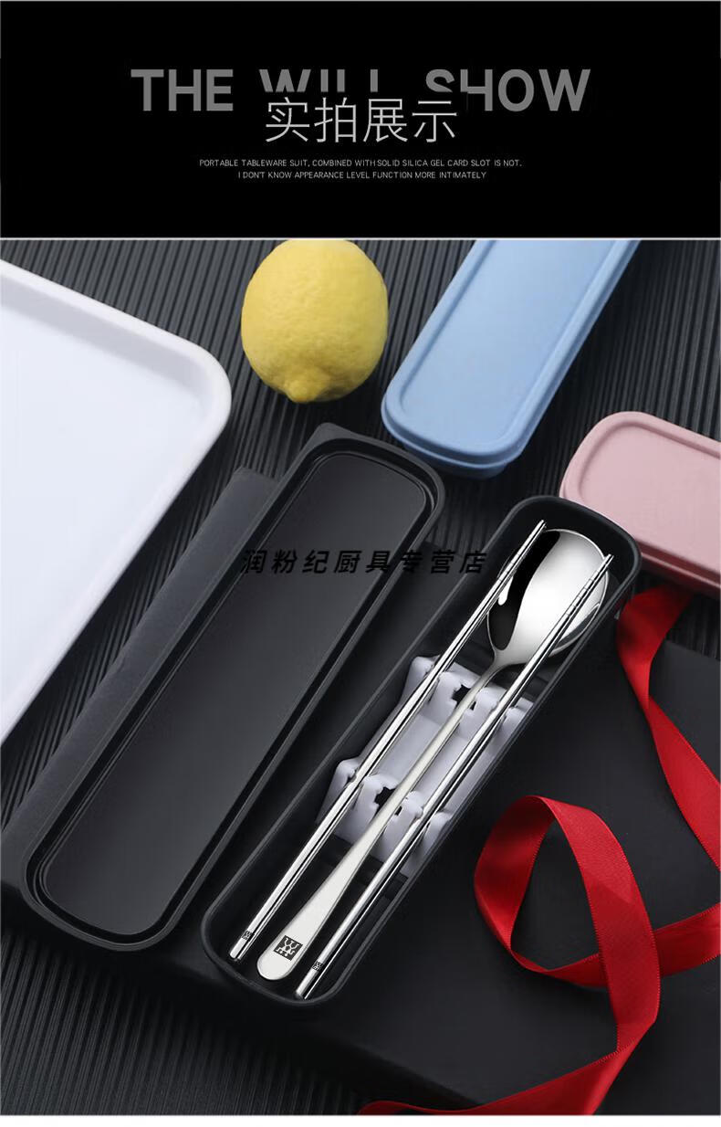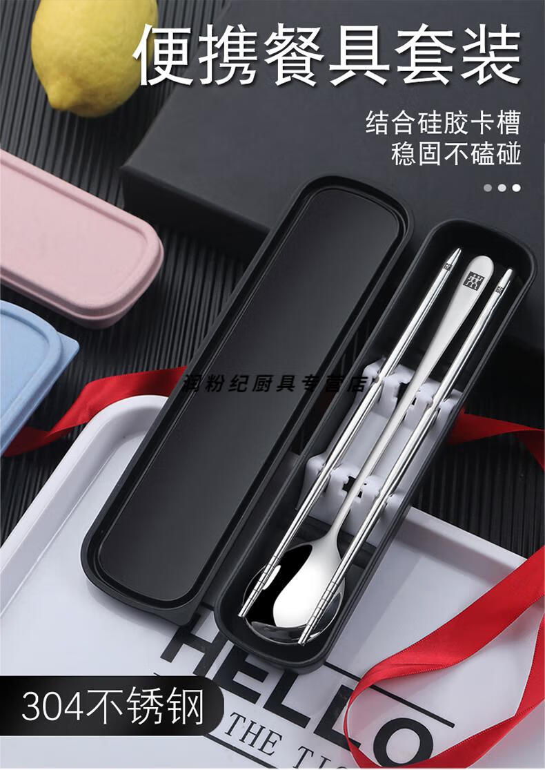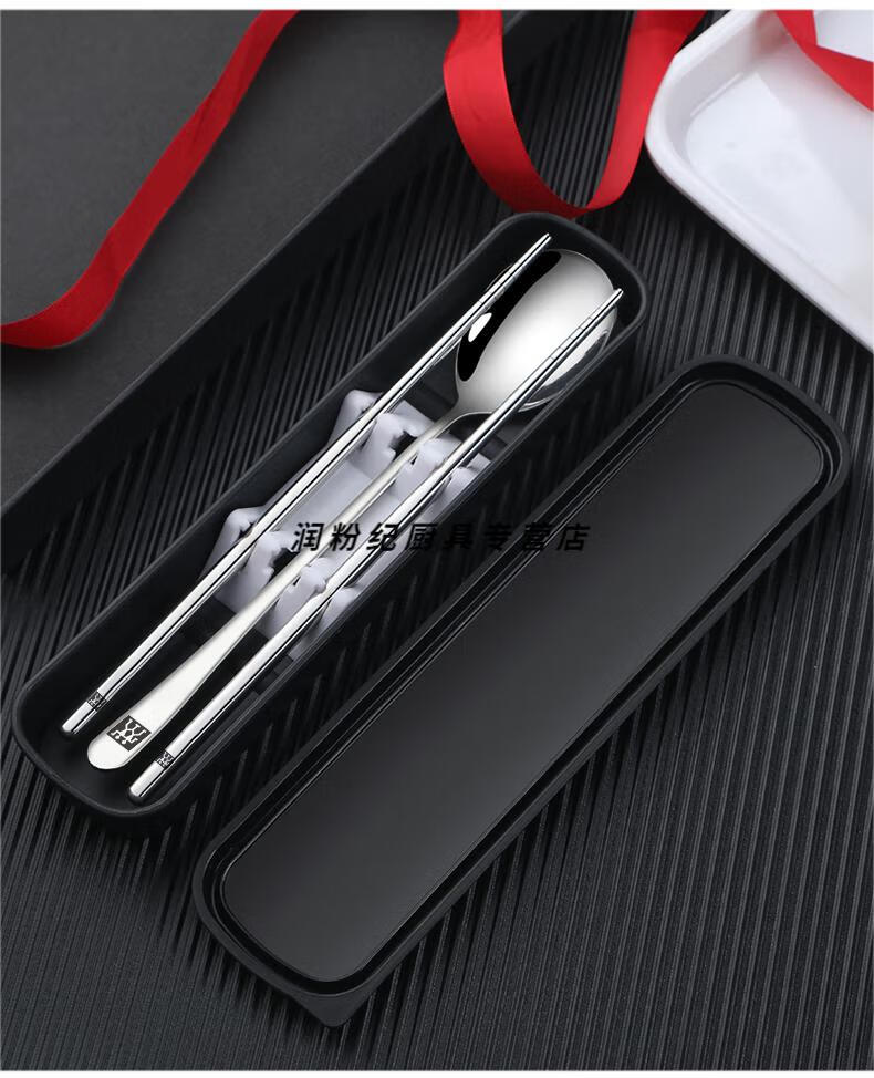 Zwilling Germany imported quality portable tableware three-piece set stainless steel set storage box student chopsticks spoon fork 304 chopsticks spoon fork black box 3-piece set