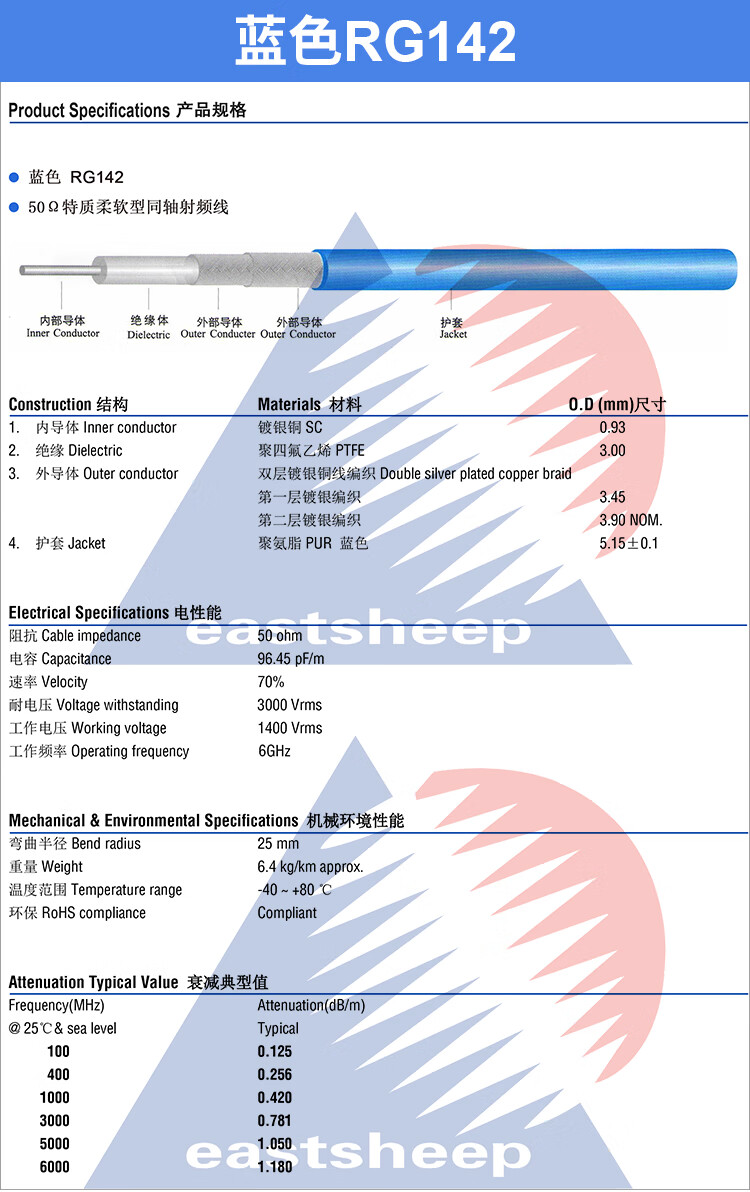 Dongfang Xupu double-layer silver-plated RF connection cable BNC male to female flexible cable blue RG142-BNC-JK blue RG142-BNC-JK 10m