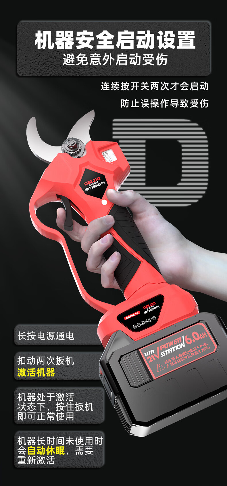 DELIXI Electric Electric Scissors Rechargeable Electric Scissors Fruit Tree Pruning Branch Pruning Shears Electric Pruning Artifact Brushless Upgraded Model 2.0Ah Two Electric