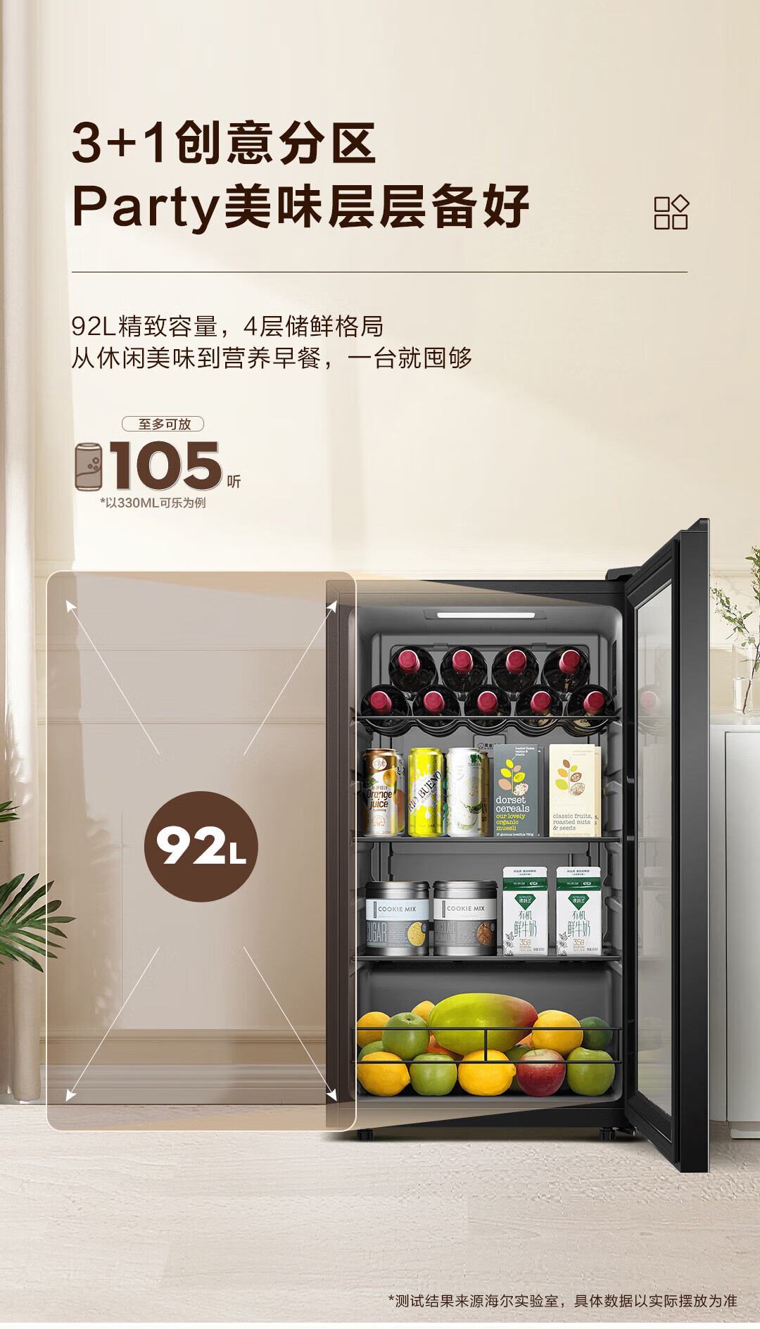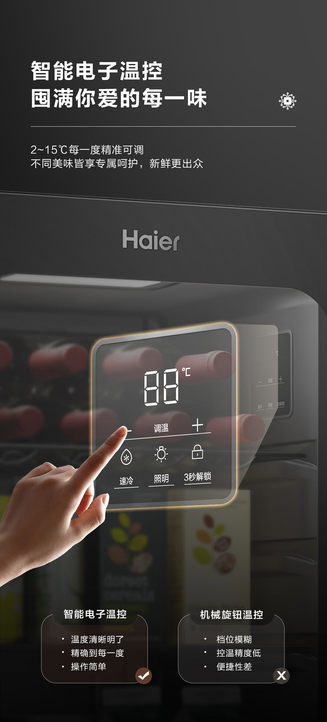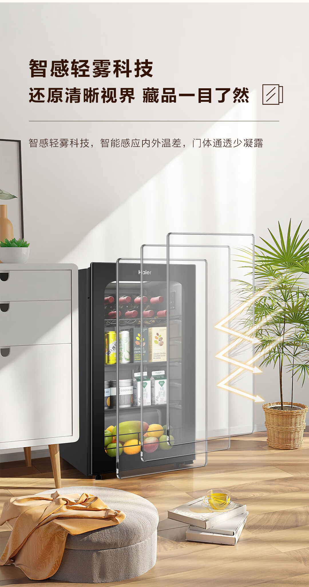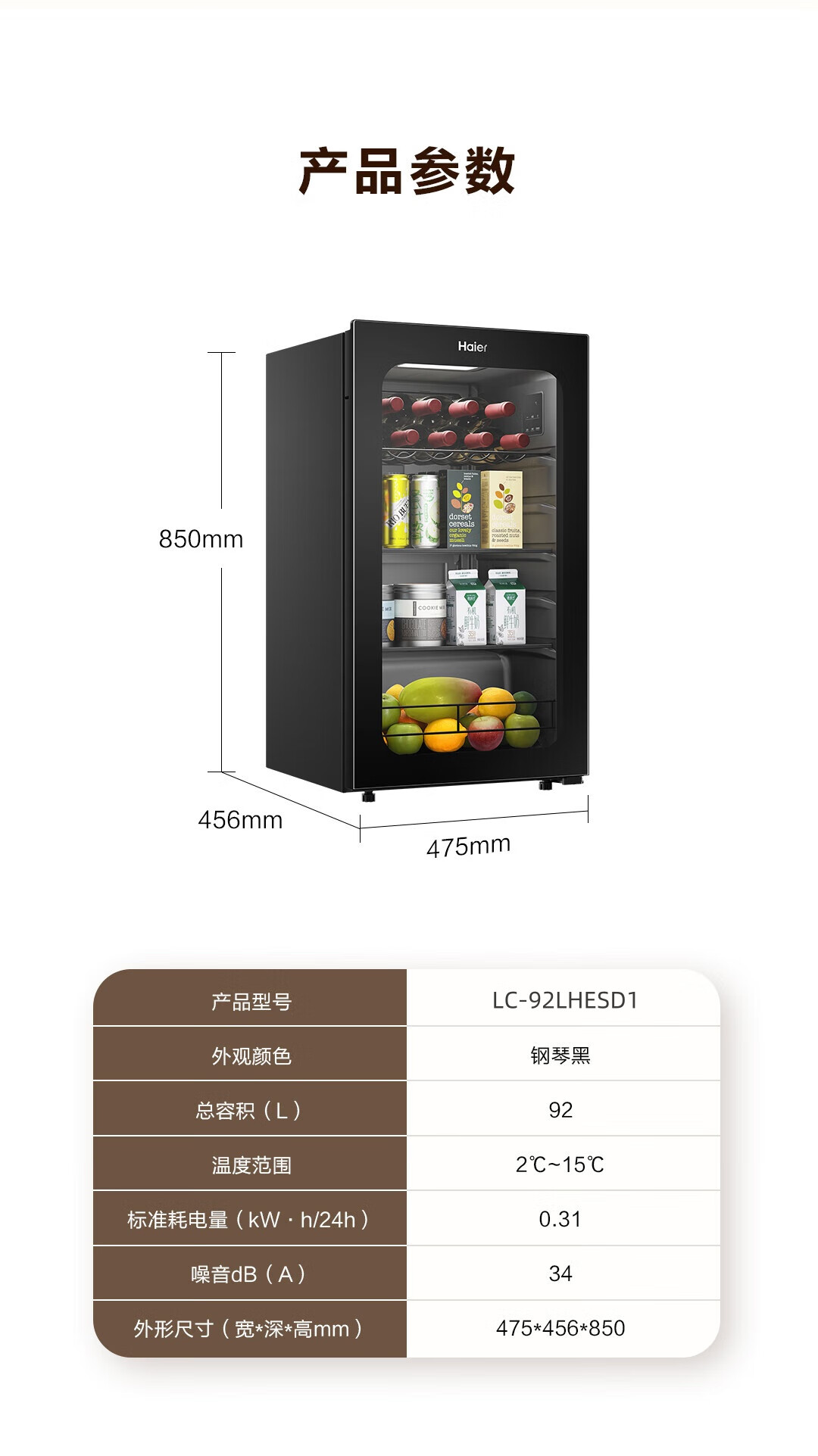 Haier 92 liter small ice bar home wine cabinet tea beverage fruit preservation cabinet refrigerator living room office wine wine storage refrigerator piano black electronic temperature control 92L