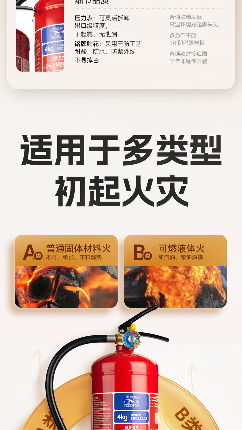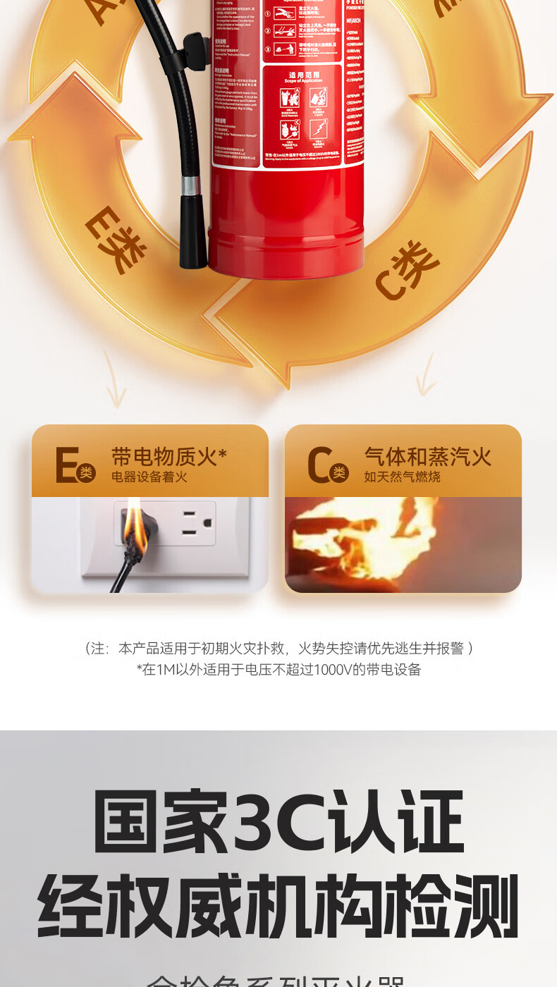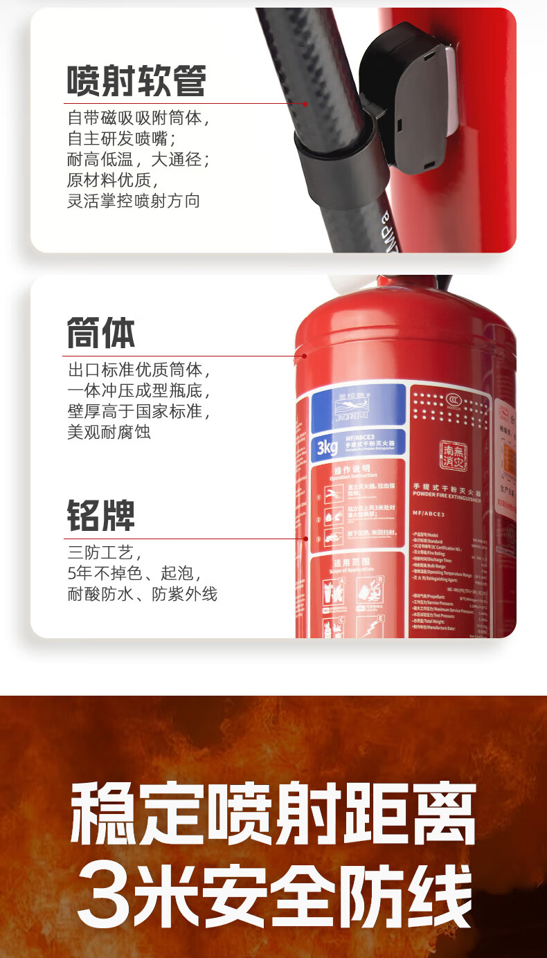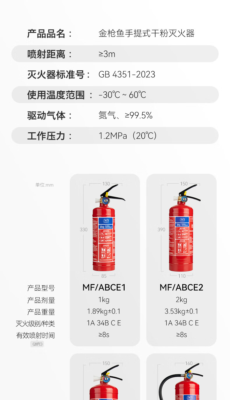 Tuna Portable Dry Powder Fire Extinguisher 2KG 3KG Multiple Specifications Available Nanxia 25 Years New National Standard Home Commercial Shop Vehicle Mounted National Fire Certification 25 Years New National Standard 1KG Dry Powder Fire Extinguisher (Recommended for Vehicles)
