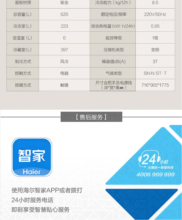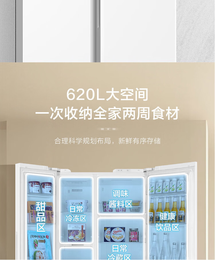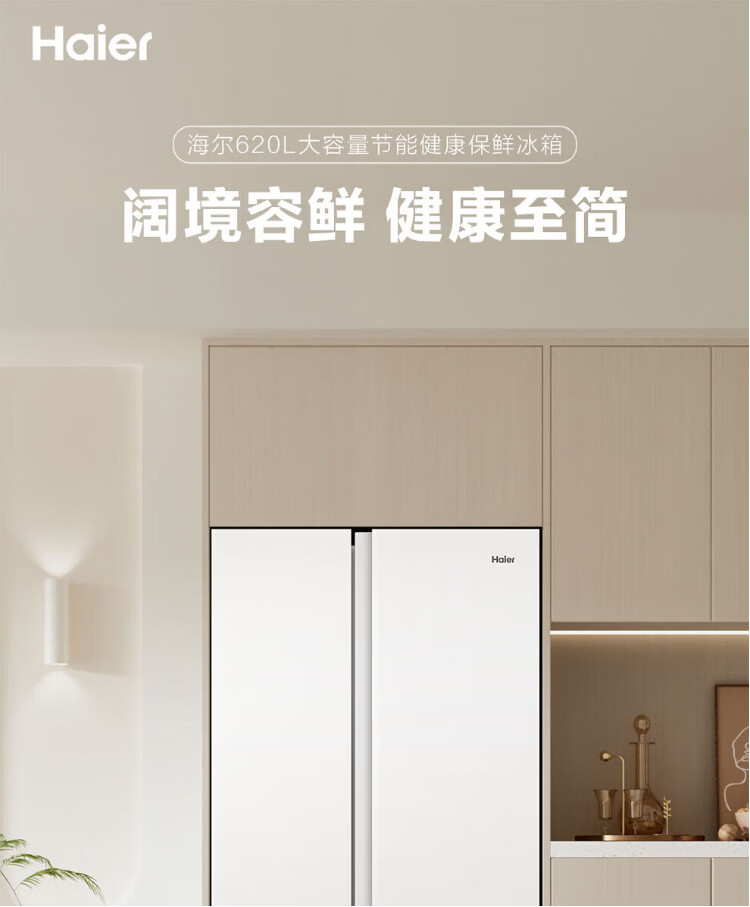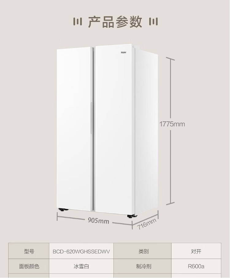 Haier's 24-year new product refrigerator 620 liters double door double door large capacity air-cooled frost-free first-class energy efficiency dual frequency conversion energy-saving home rental refrigerator ice and snow white 620 liters black gold purification +90 open door hover