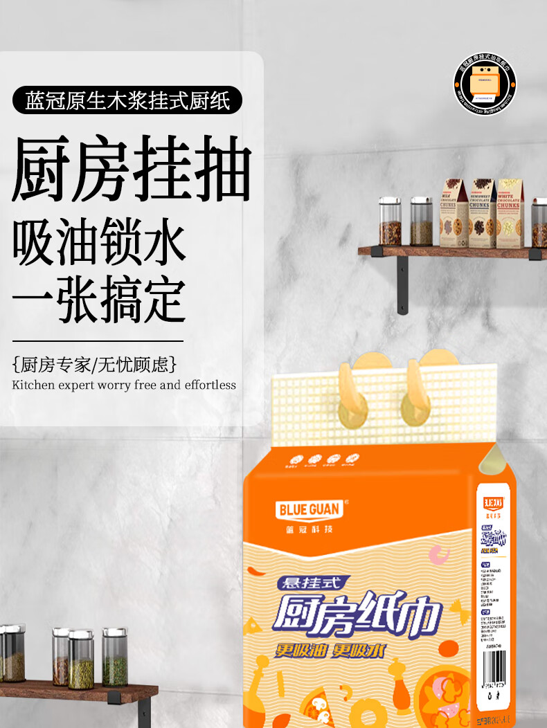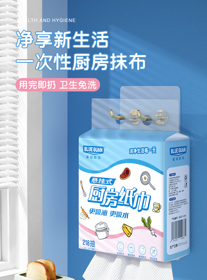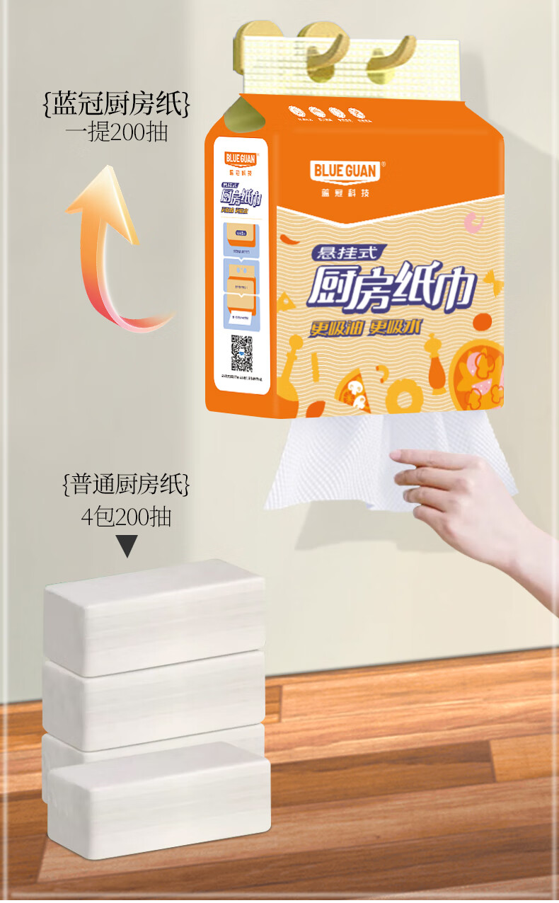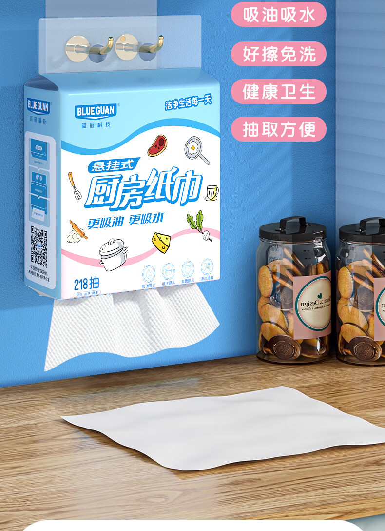 BLUEGUAN kitchen paper towels, family affordable wall-mounted large bag kitchen paper towels, oil-absorbing and water-absorbing kitchen paper full box, limited time order free hook, 2 layers, 218 pumps * 2 picks