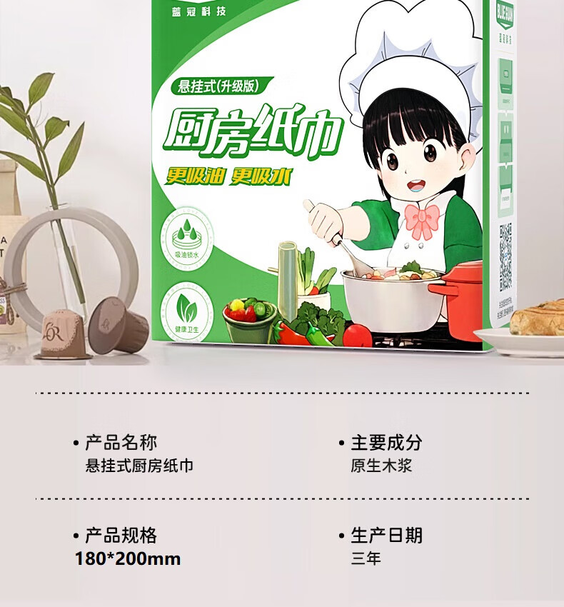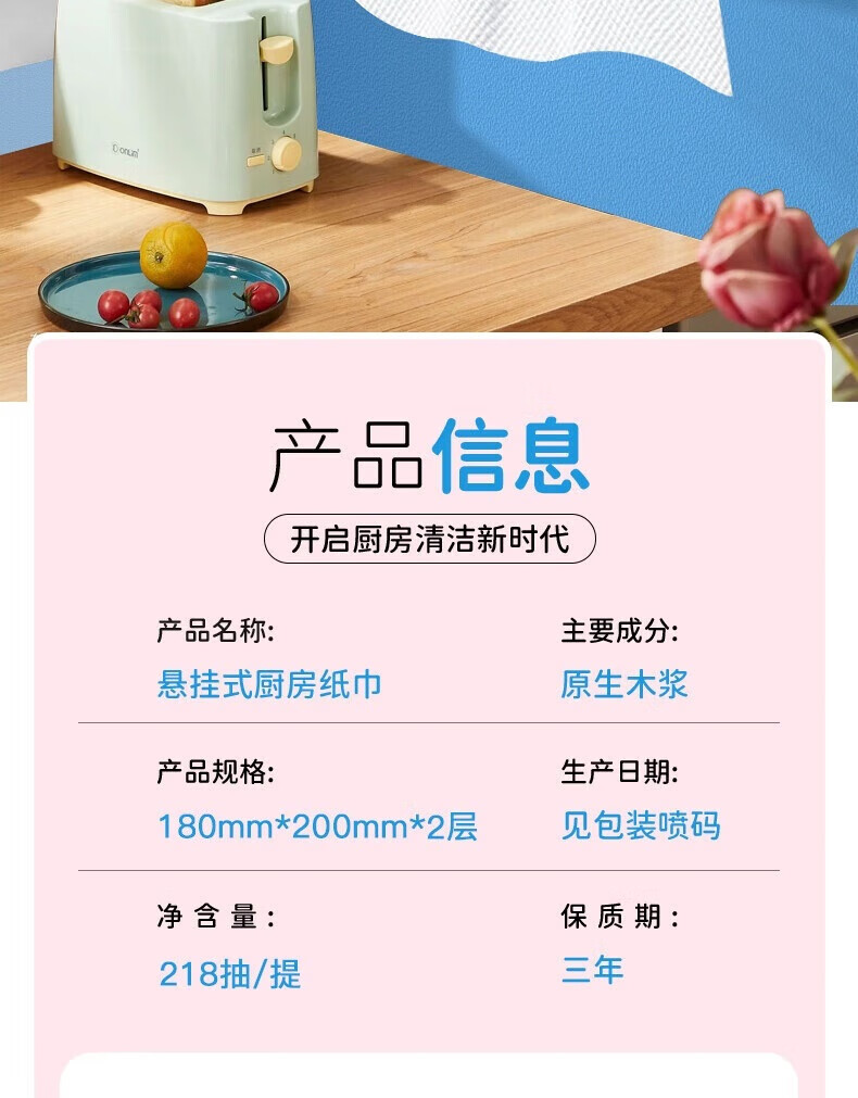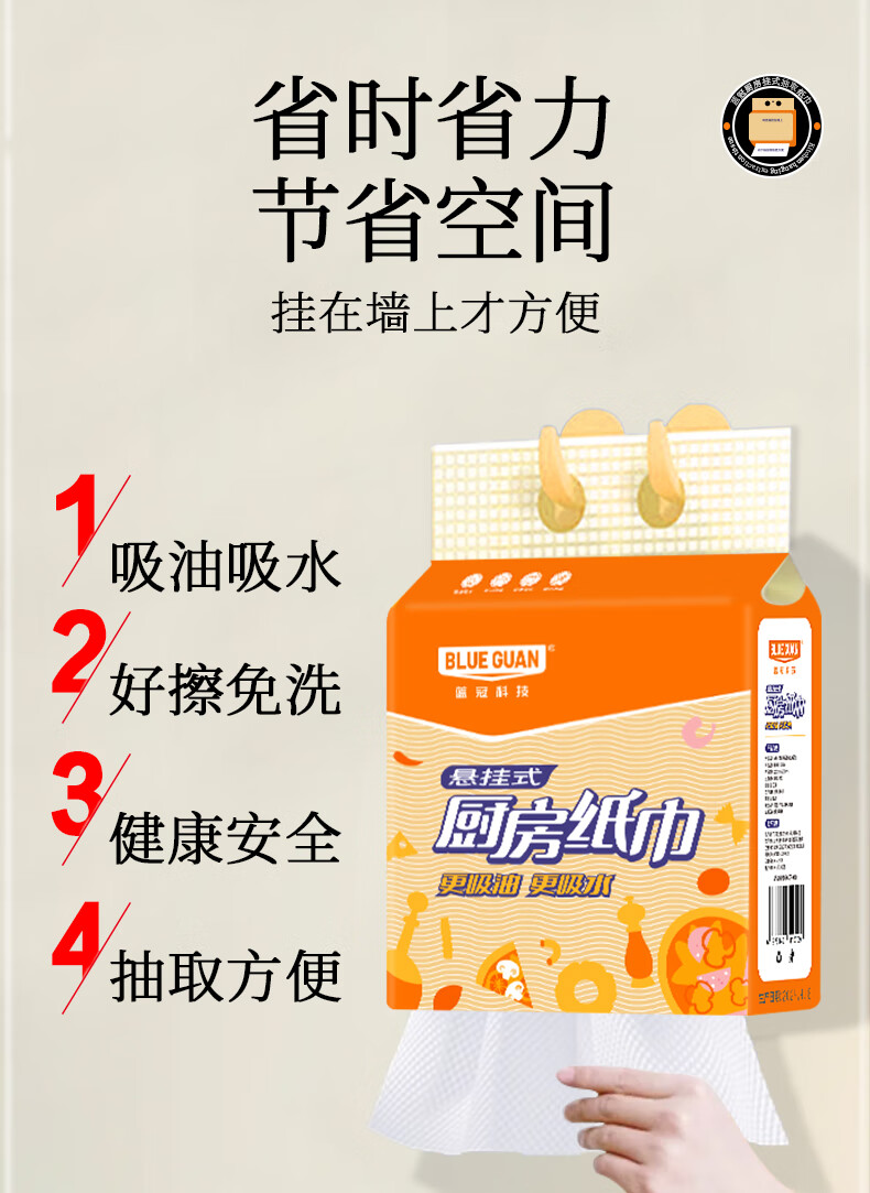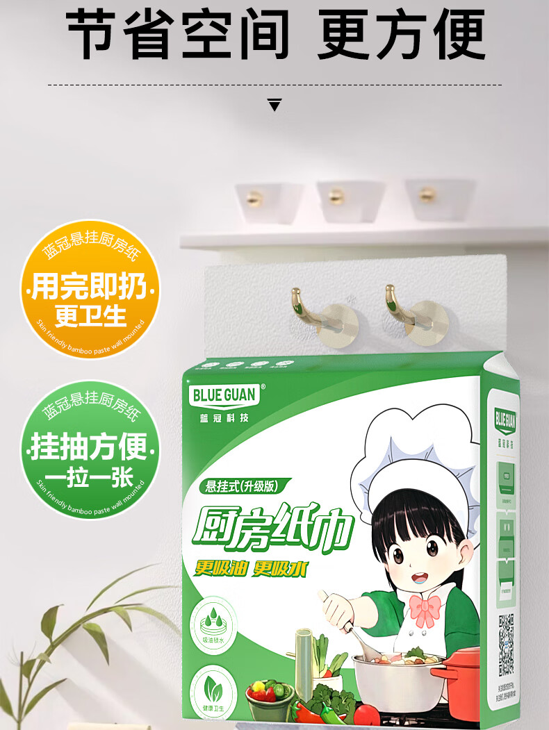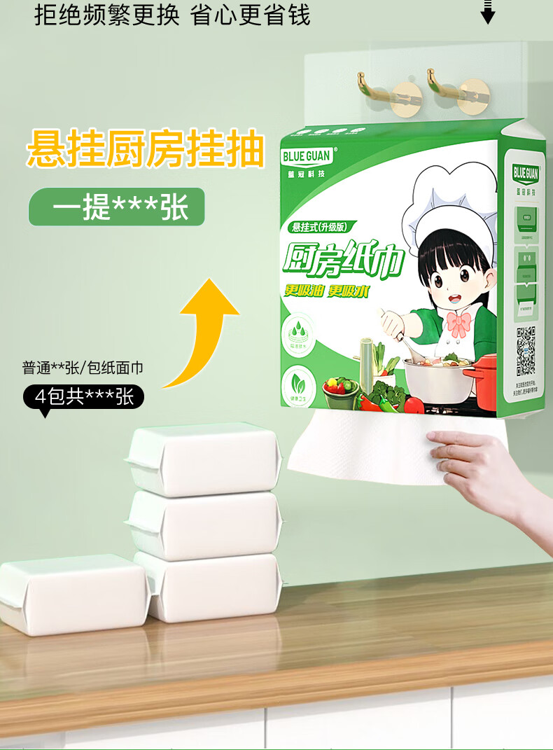 BLUEGUAN kitchen paper towels, family affordable wall-mounted large bag kitchen paper towels, oil-absorbing and water-absorbing kitchen paper full box, limited time order free hook, 2 layers, 218 pumps * 2 picks