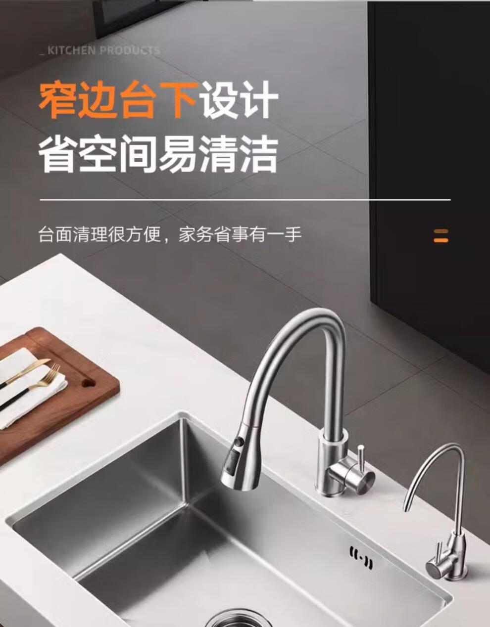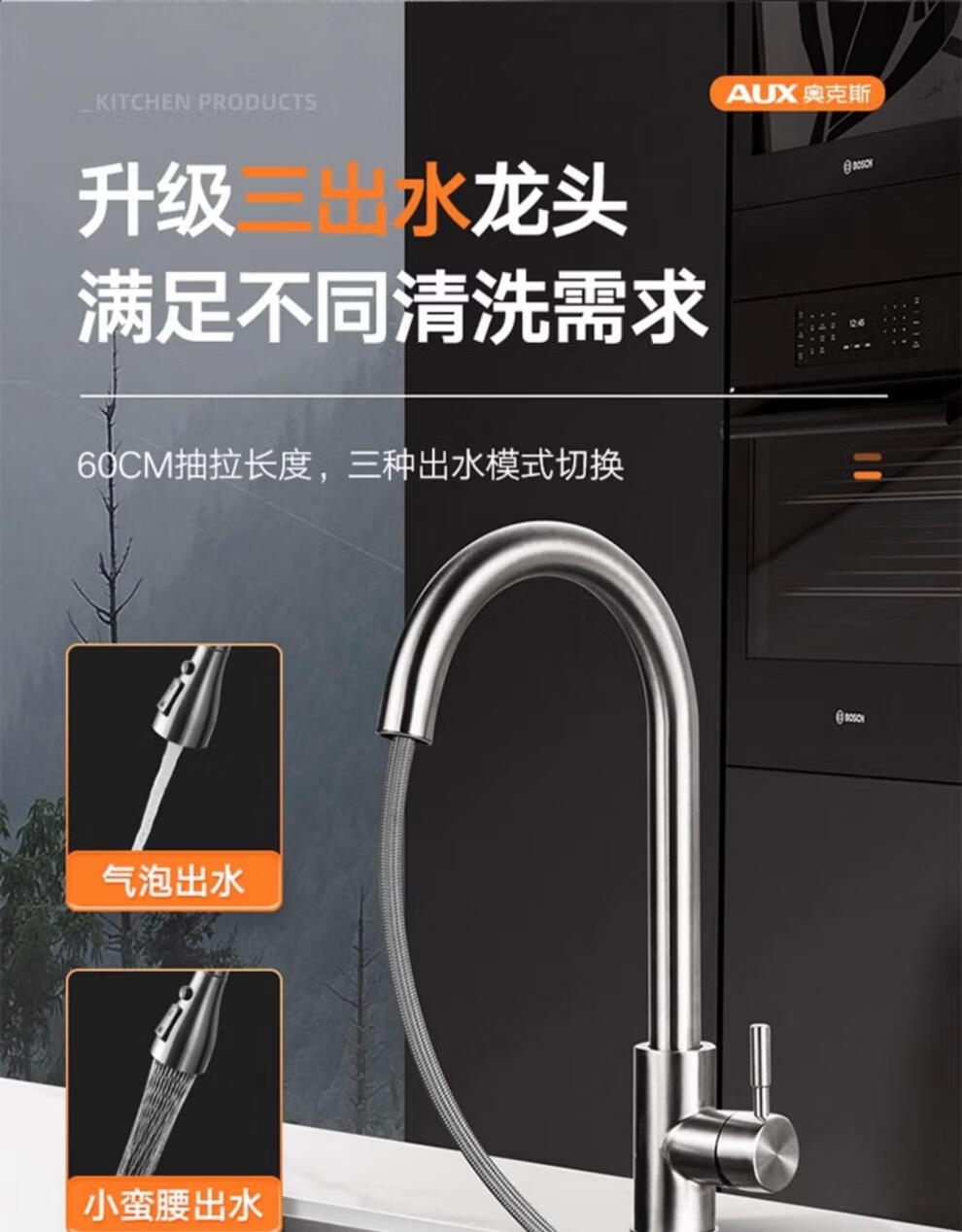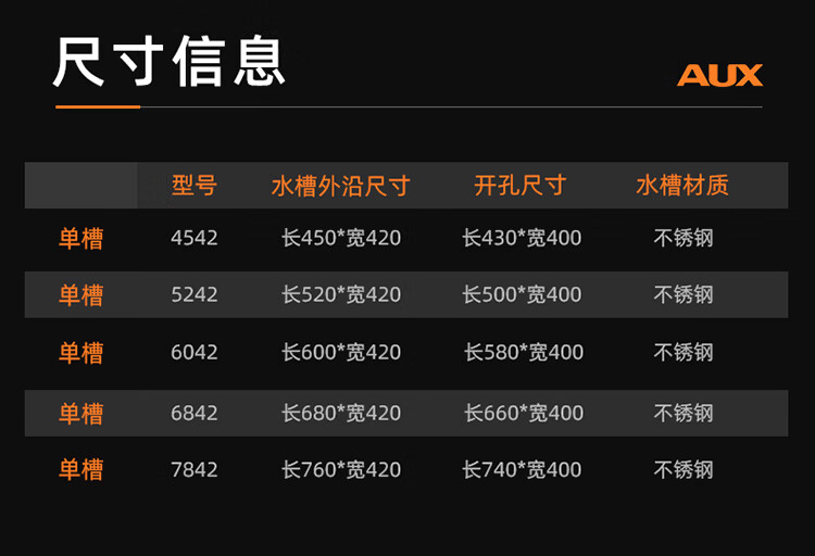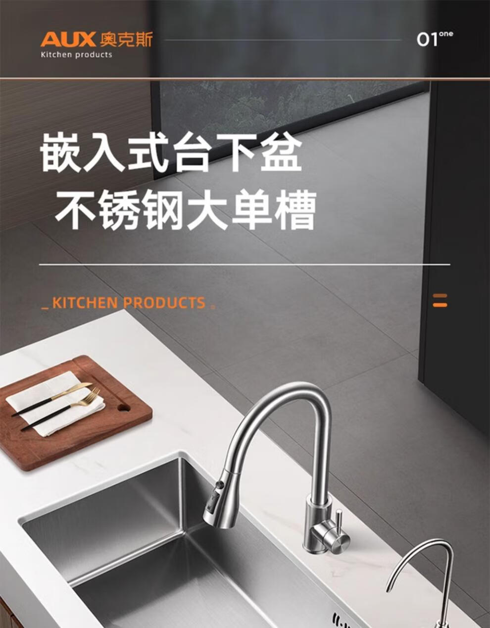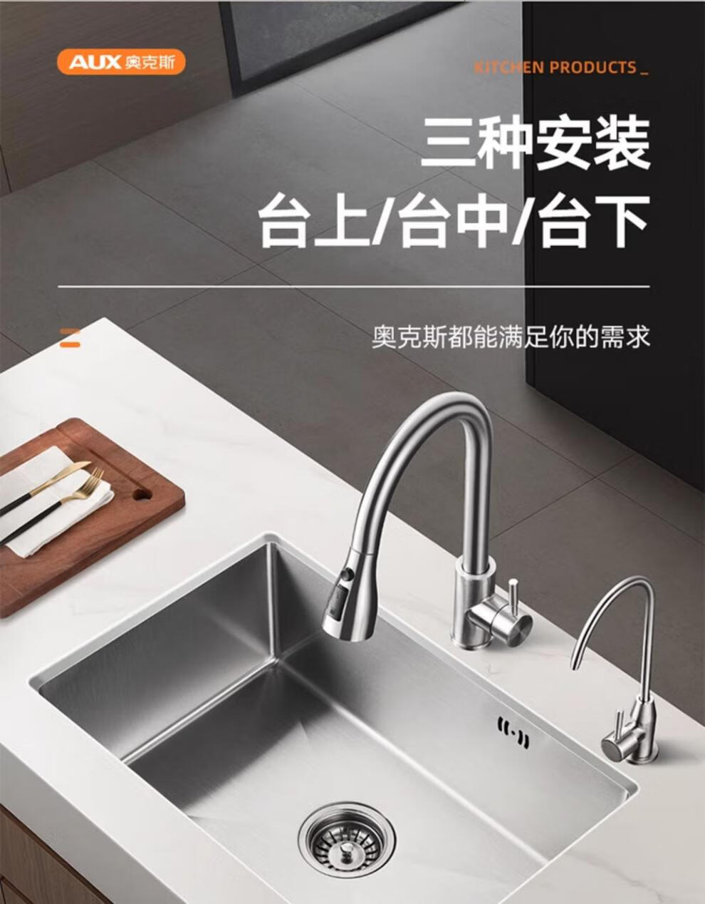 AUX/AUX undercounter sink single tank kitchen stainless steel dishwashing basin handmade dishwashing sink household vegetable sink undercounter basin 4542D three-outlet pull-out faucet