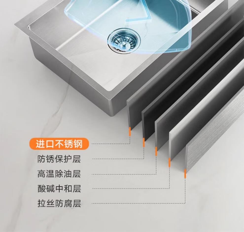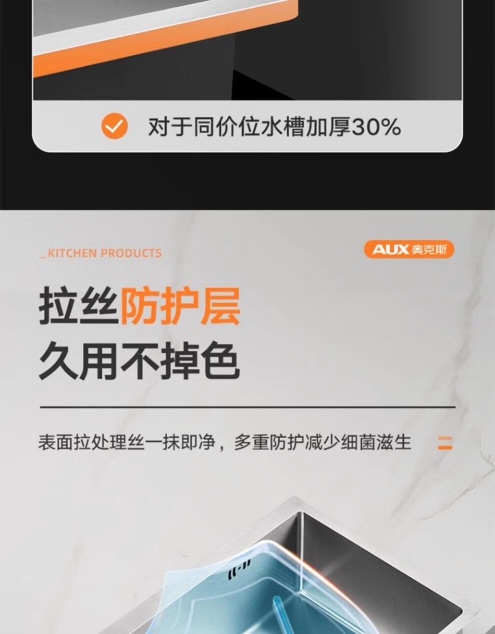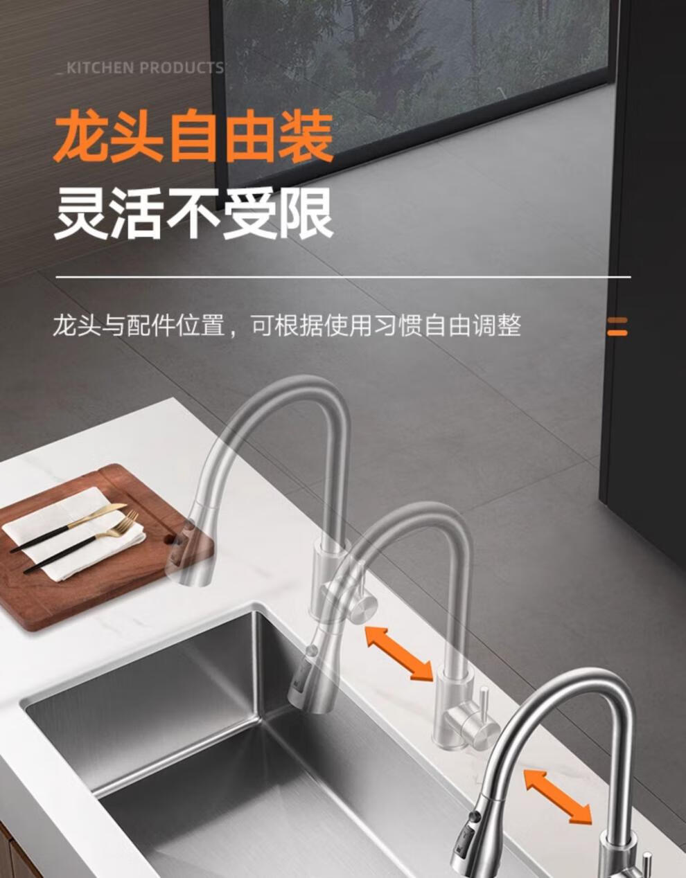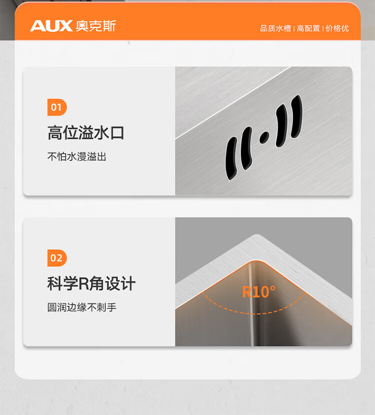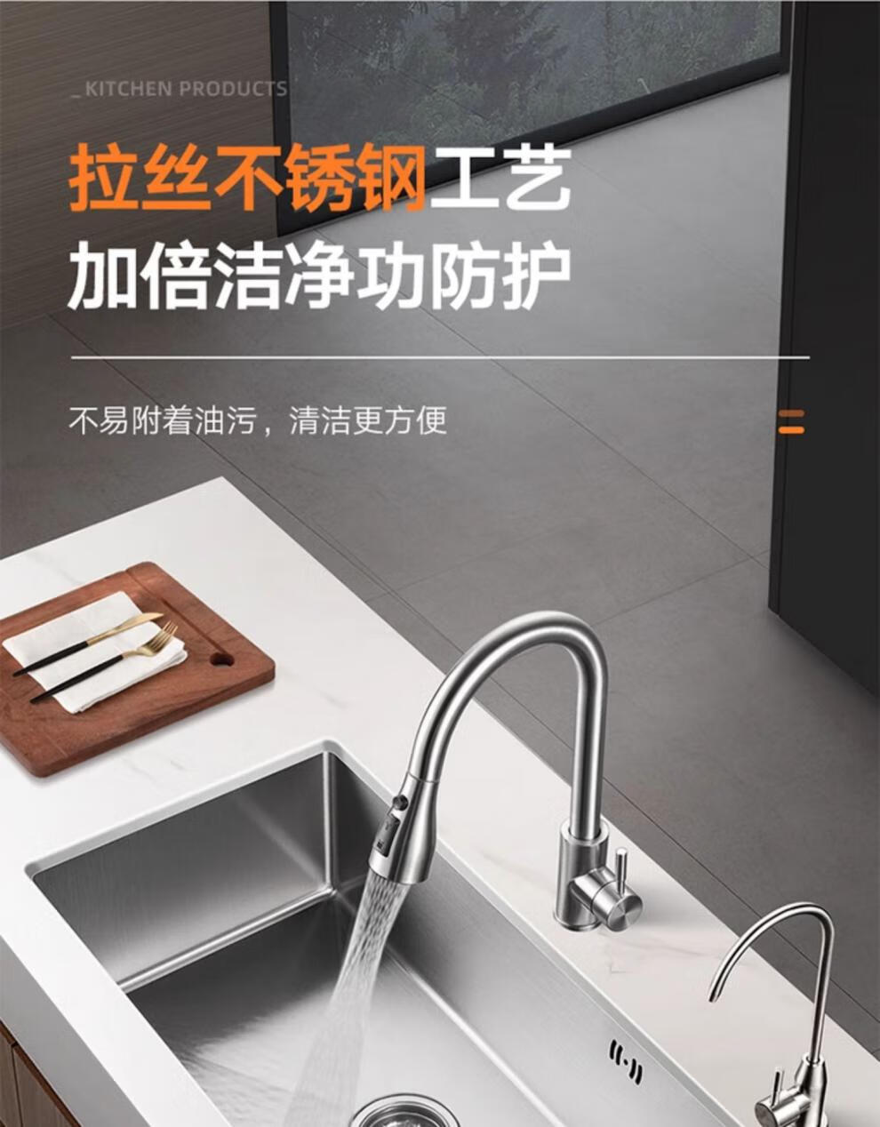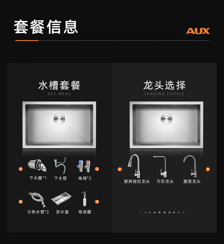AUX/AUX undercounter sink single tank kitchen stainless steel dishwashing basin handmade dishwashing sink household vegetable sink undercounter basin 4542D three-outlet pull-out faucet