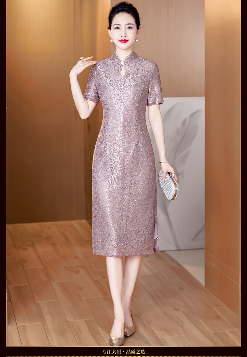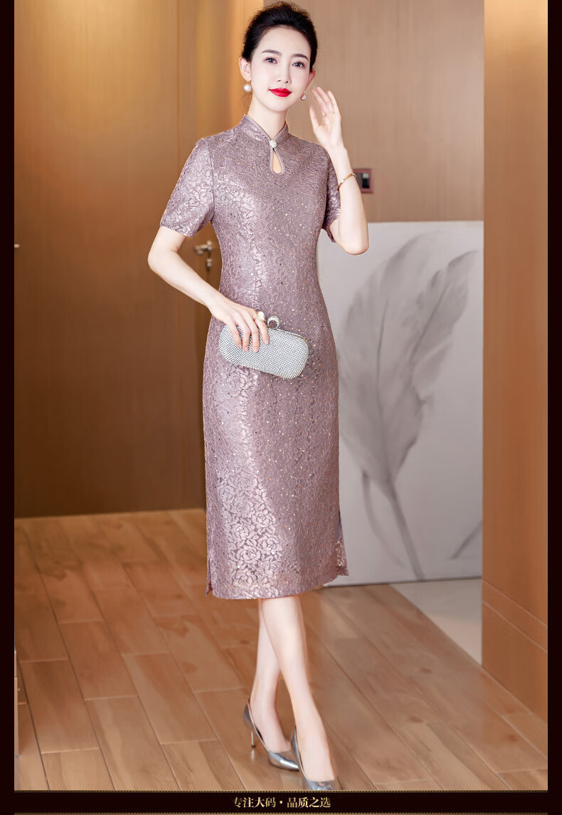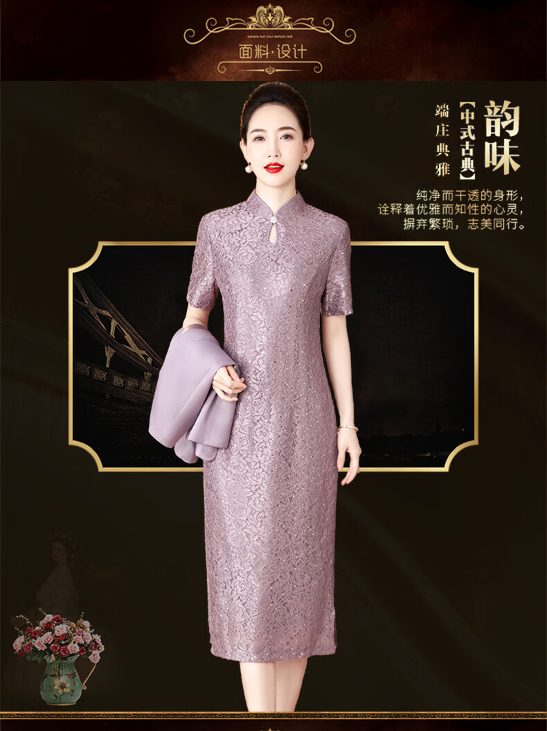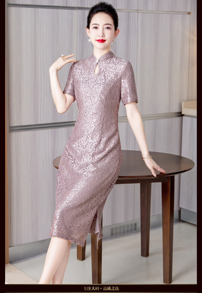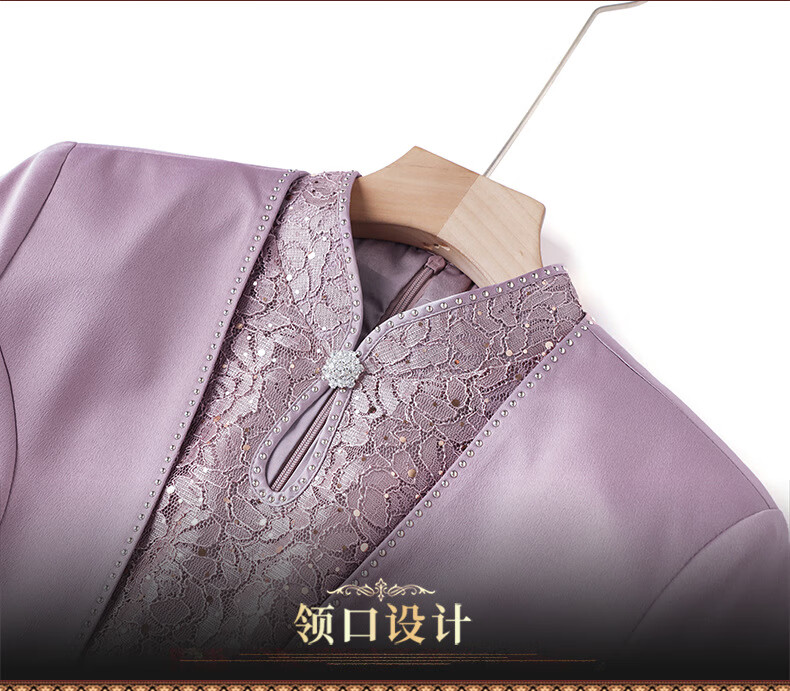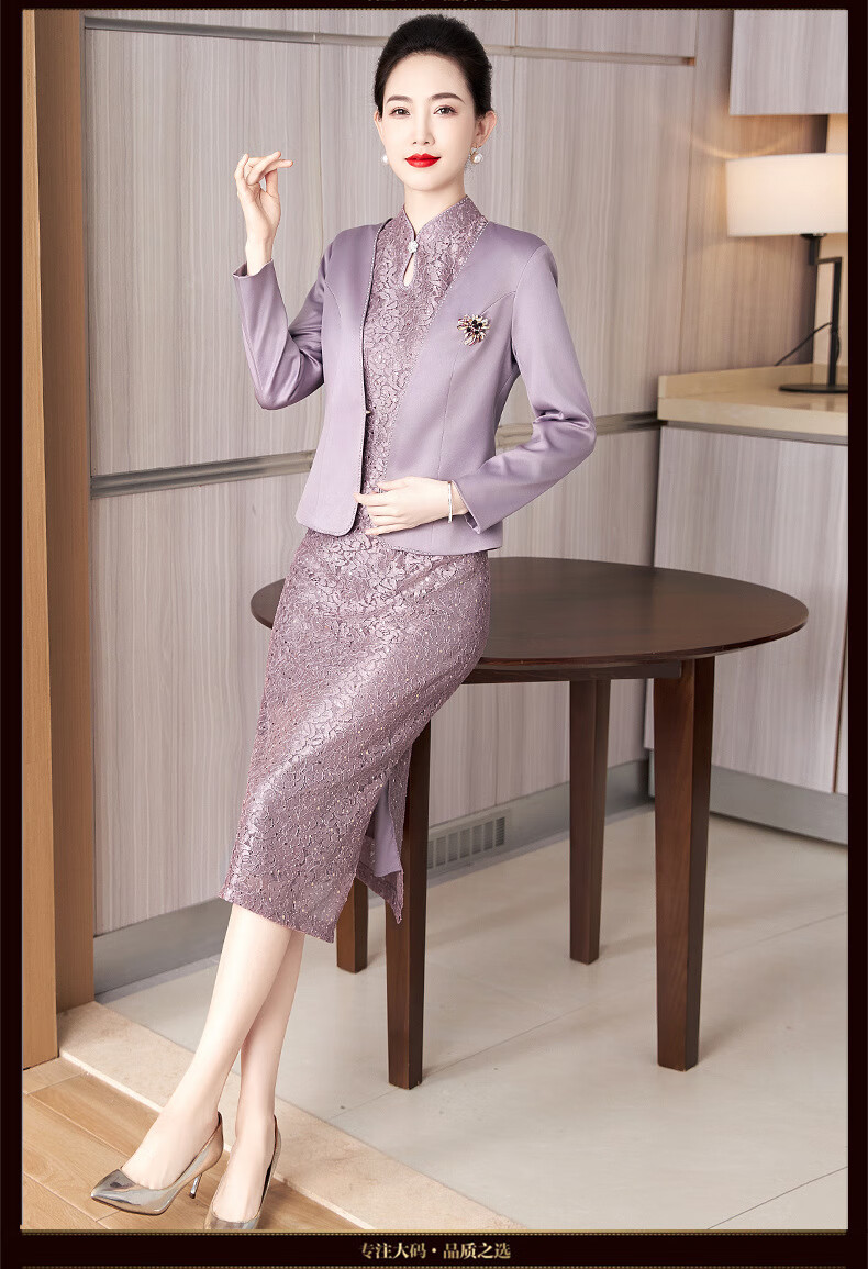 Drop-off station cheongsam dress, spring and summer slimming, high-end banquet dress, grandma dress, wedding banquet, noble, can be worn at ordinary times, purple suit M