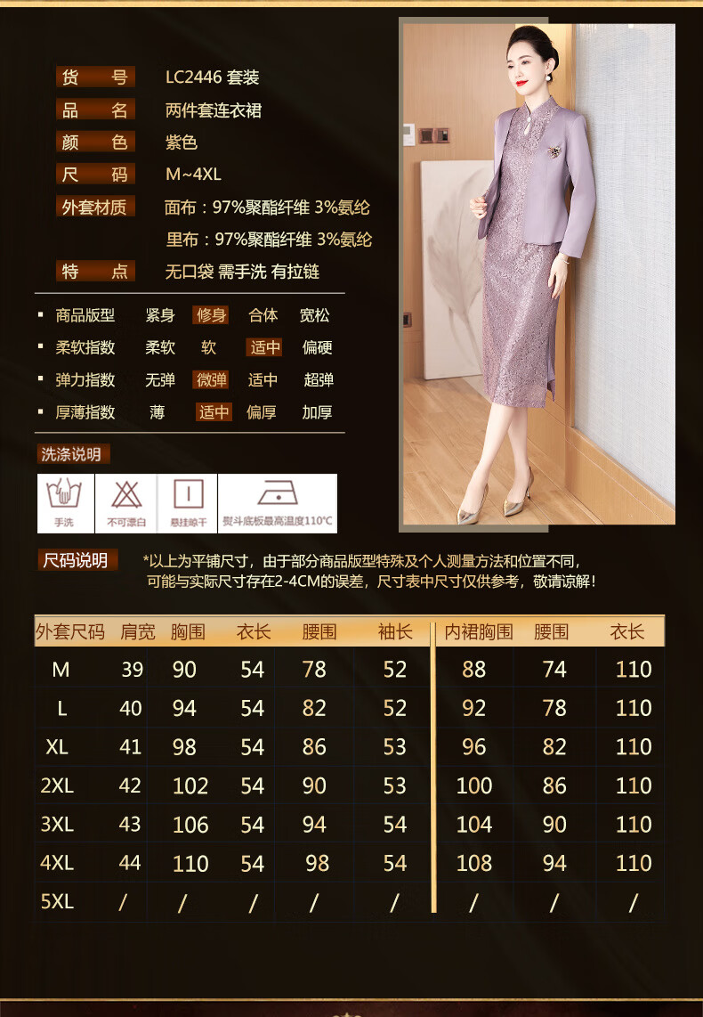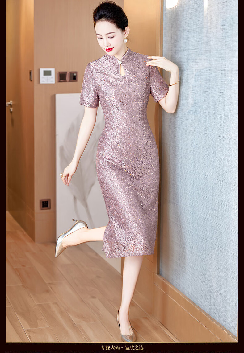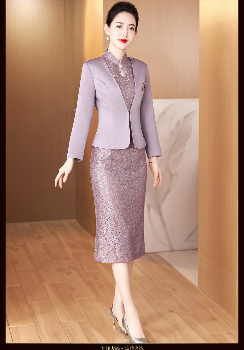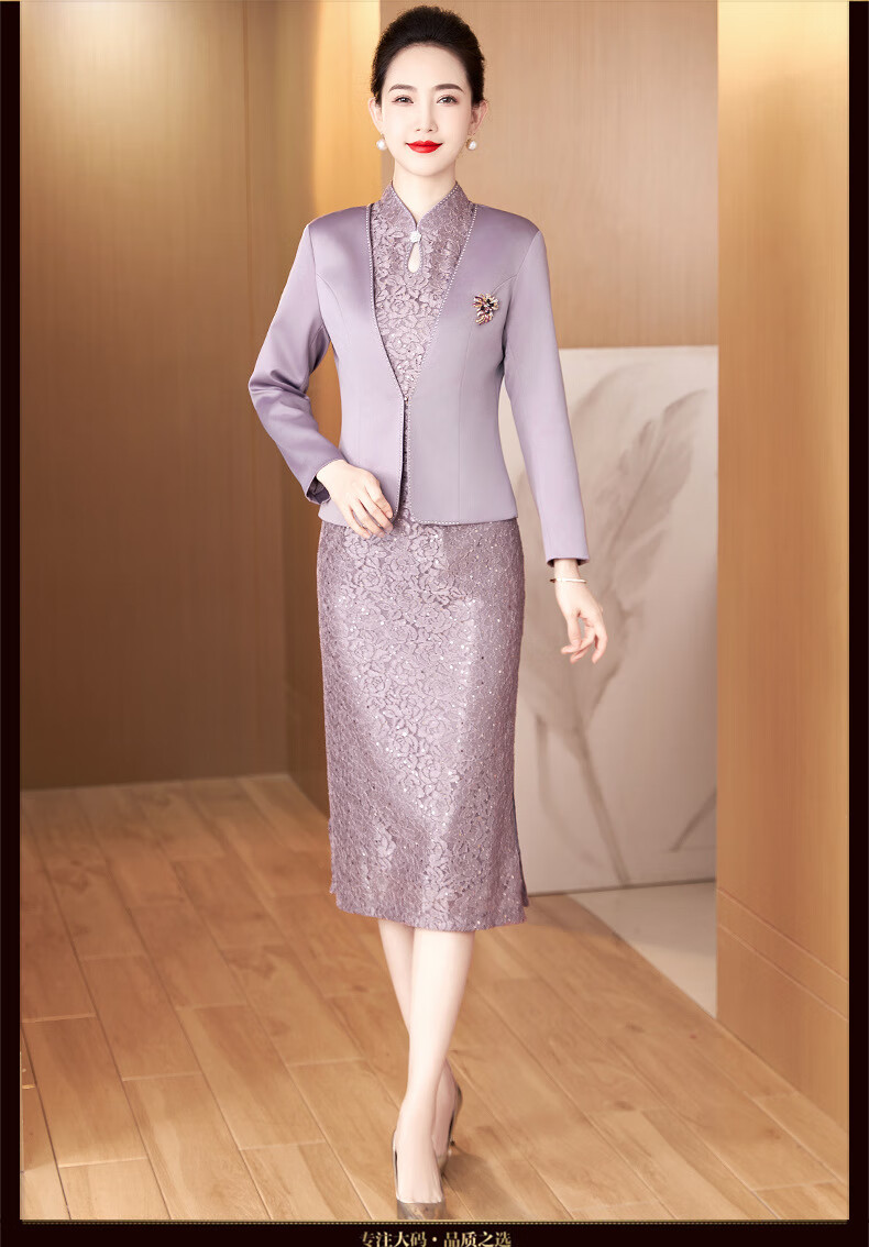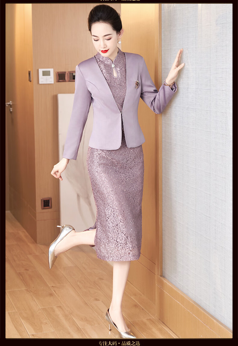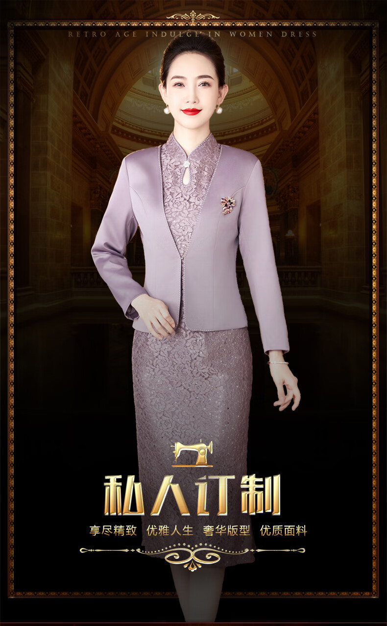 Drop-off station cheongsam dress, spring and summer slimming, high-end banquet dress, grandma dress, wedding banquet, noble, can be worn at ordinary times, purple suit M