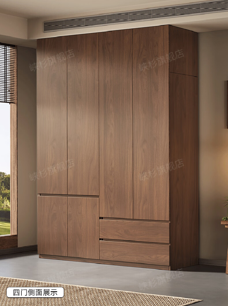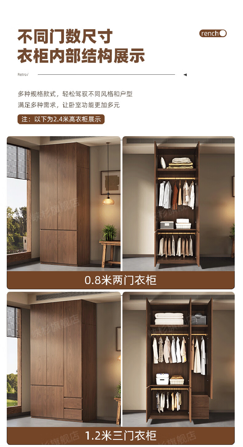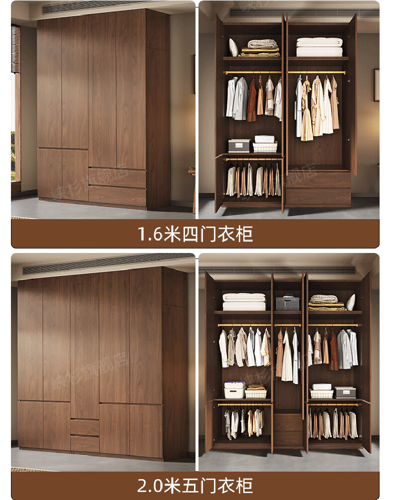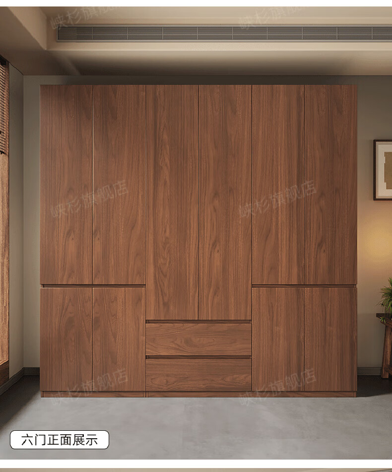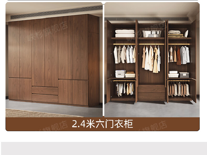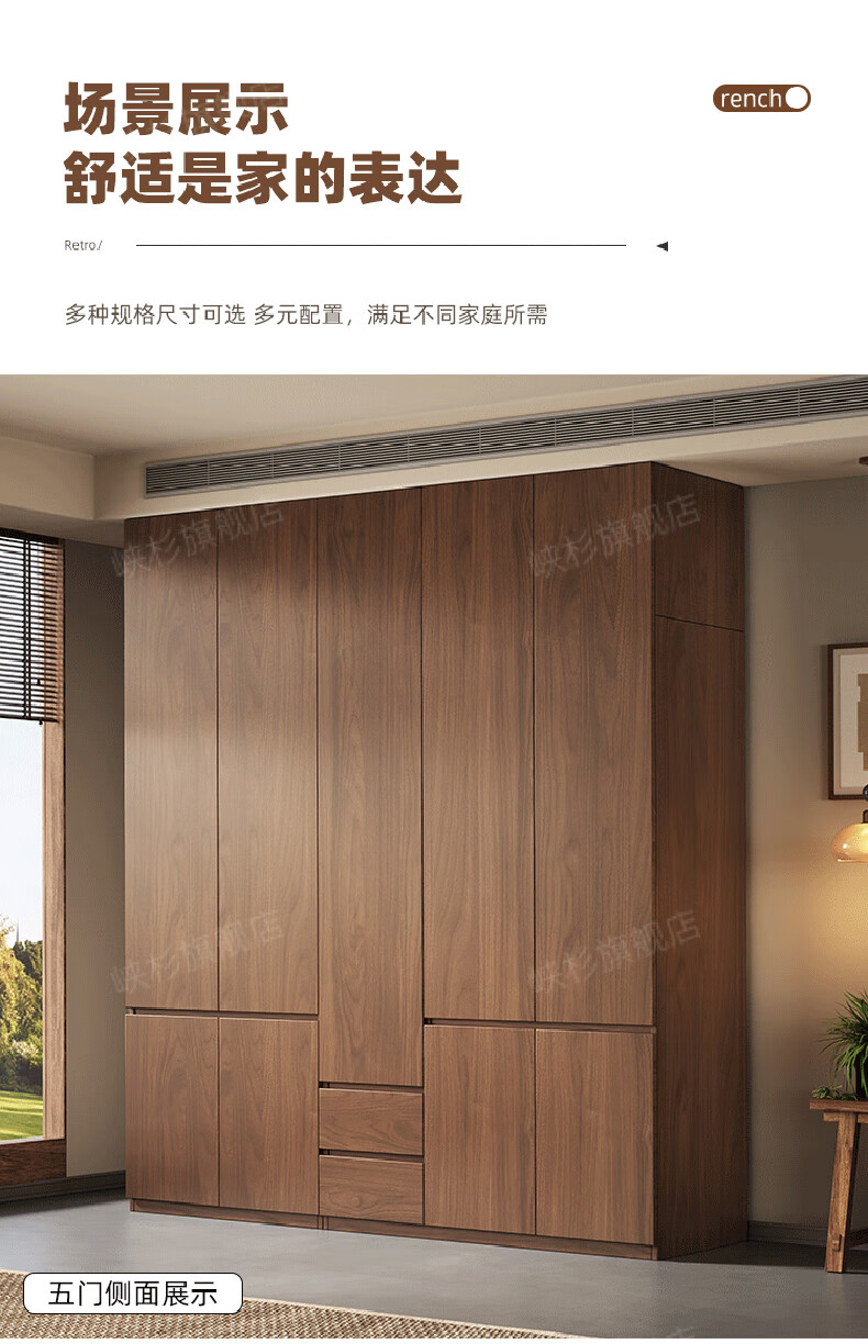 Xiashan Solid Wood Wardrobe Solid Wood Cabinet Bedroom Home Rental Large Wardrobe Pure Solid Wood Wardrobe Simple Walnut D Upgraded 60 Deep 180*60*200cm Single Cabinet Includes Installation