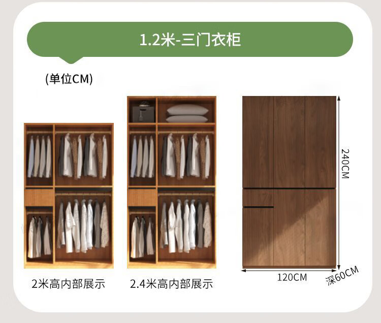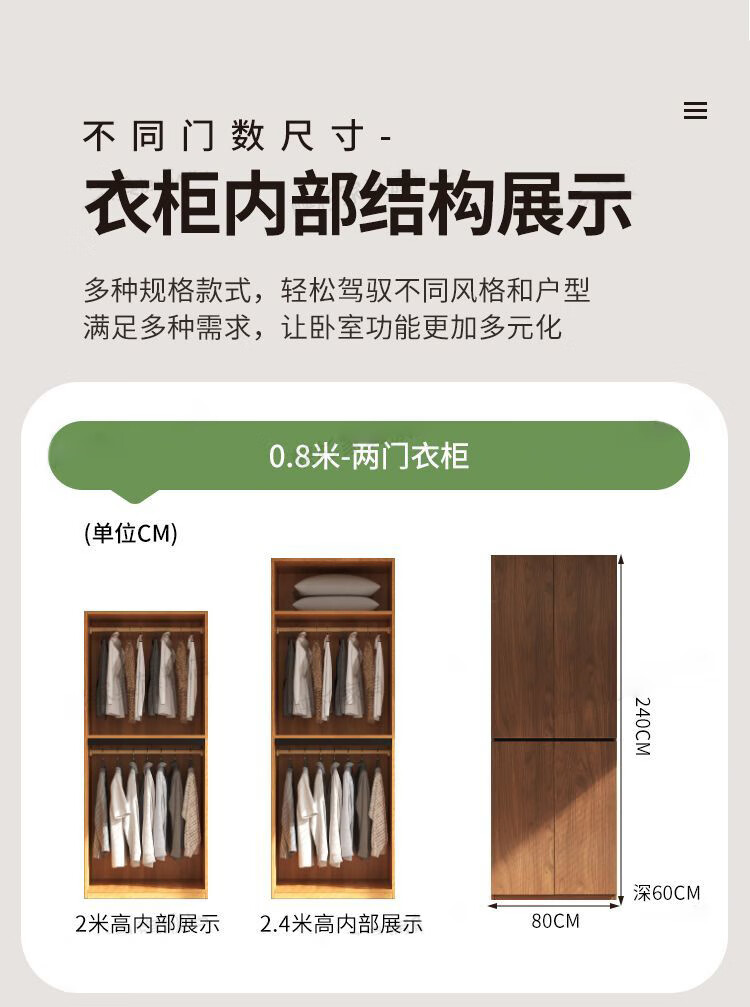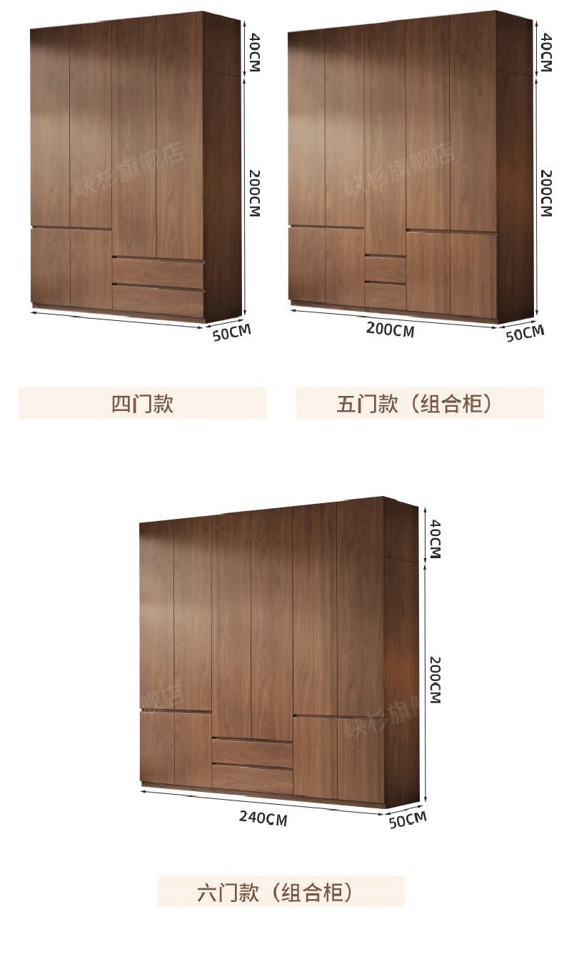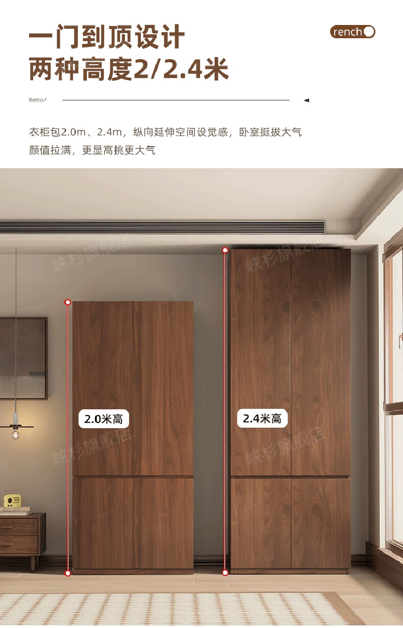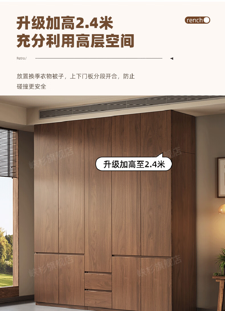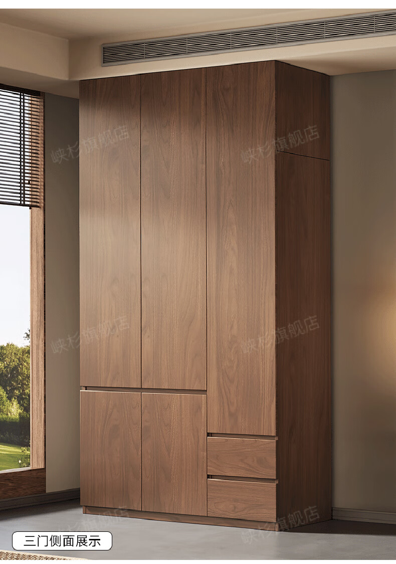 Xiashan Solid Wood Wardrobe Solid Wood Cabinet Bedroom Home Rental Large Wardrobe Pure Solid Wood Wardrobe Simple Walnut D Upgraded 60 Deep 180*60*200cm Single Cabinet Includes Installation