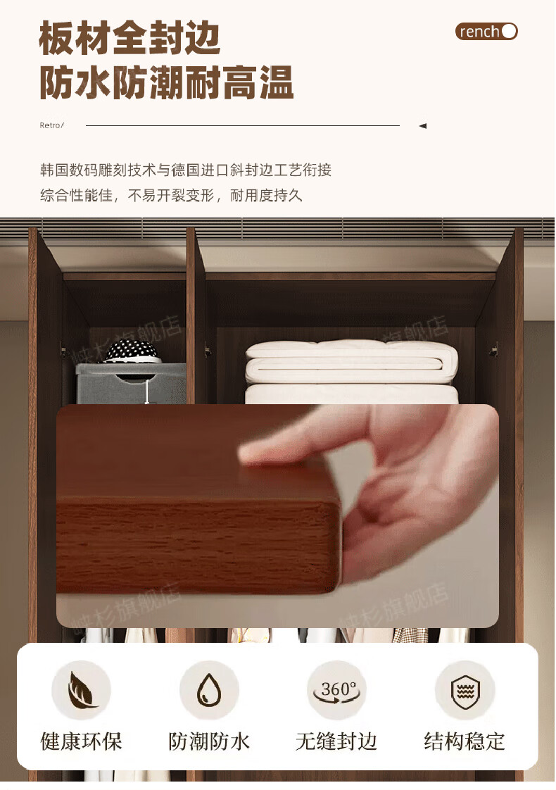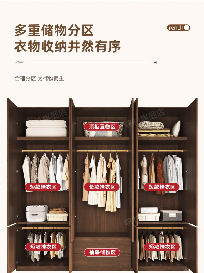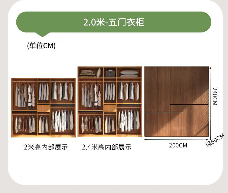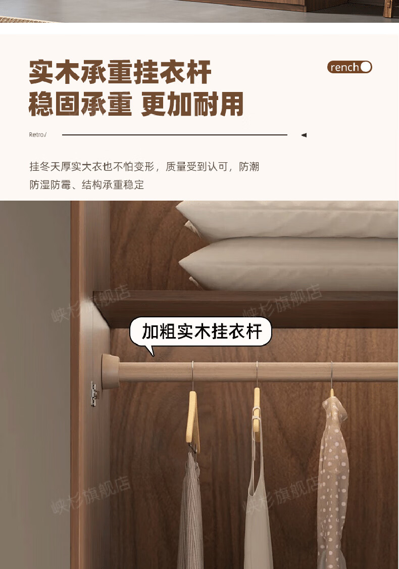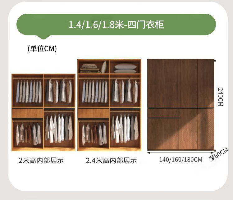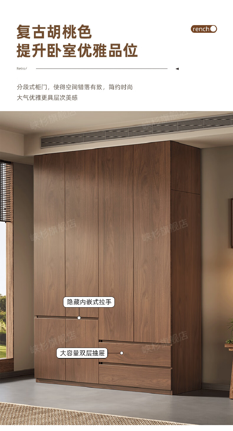 Xiashan Solid Wood Wardrobe Solid Wood Cabinet Bedroom Home Rental Large Wardrobe Pure Solid Wood Wardrobe Simple Walnut D Upgraded 60 Deep 180*60*200cm Single Cabinet Includes Installation