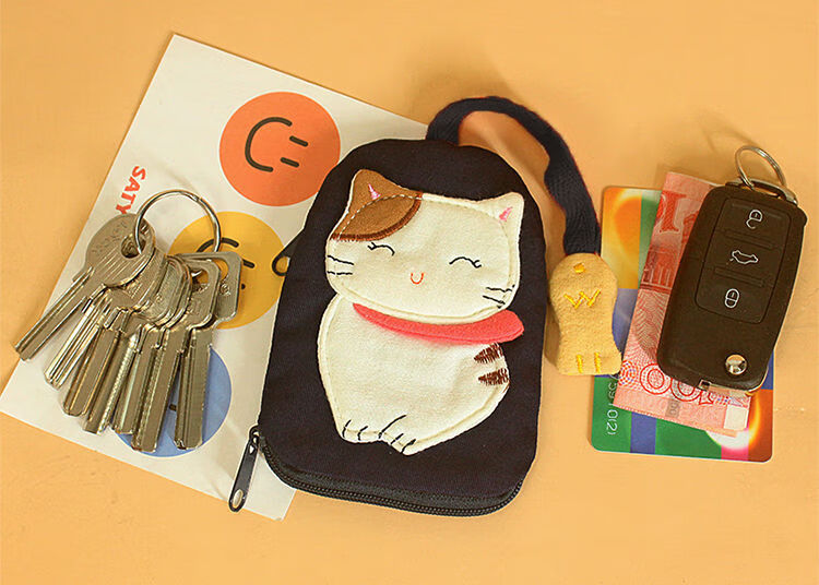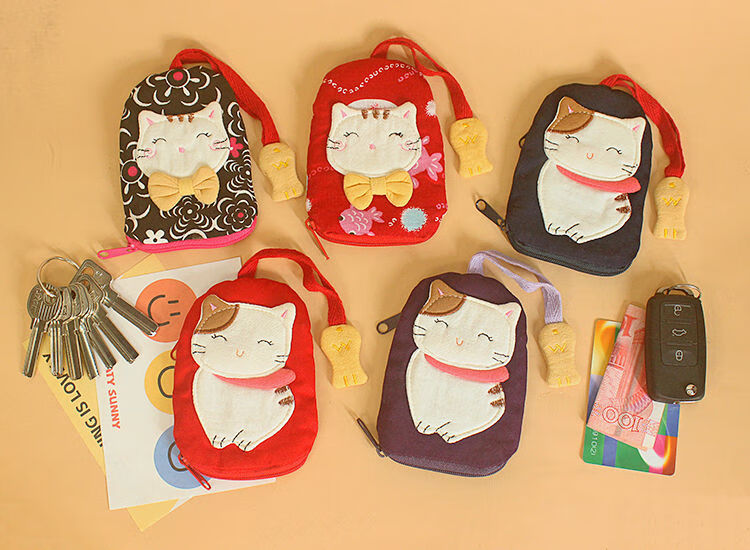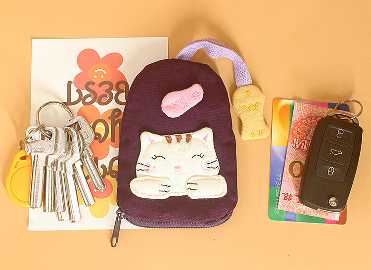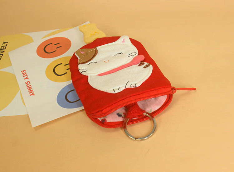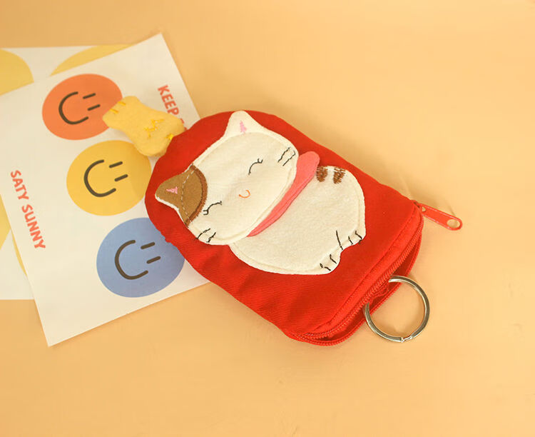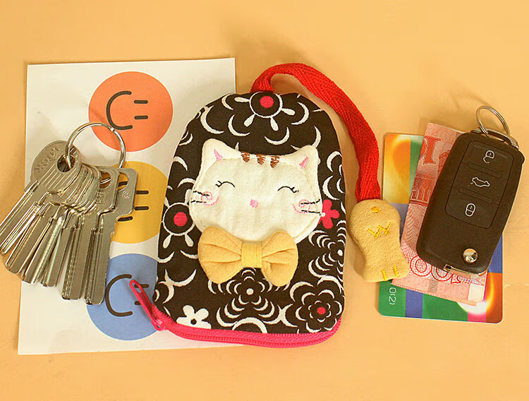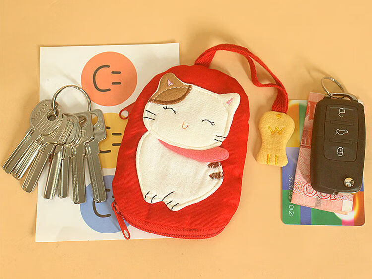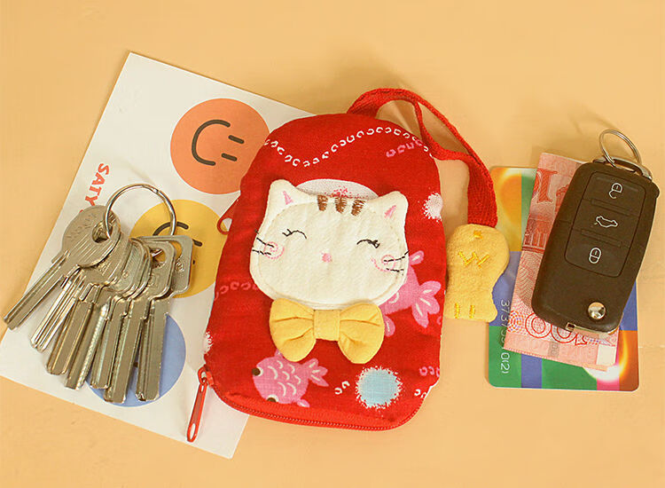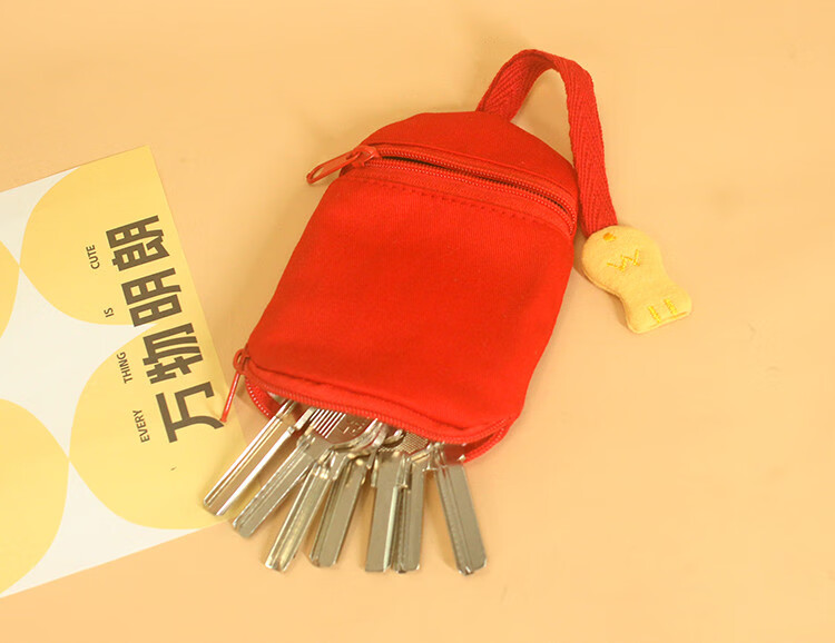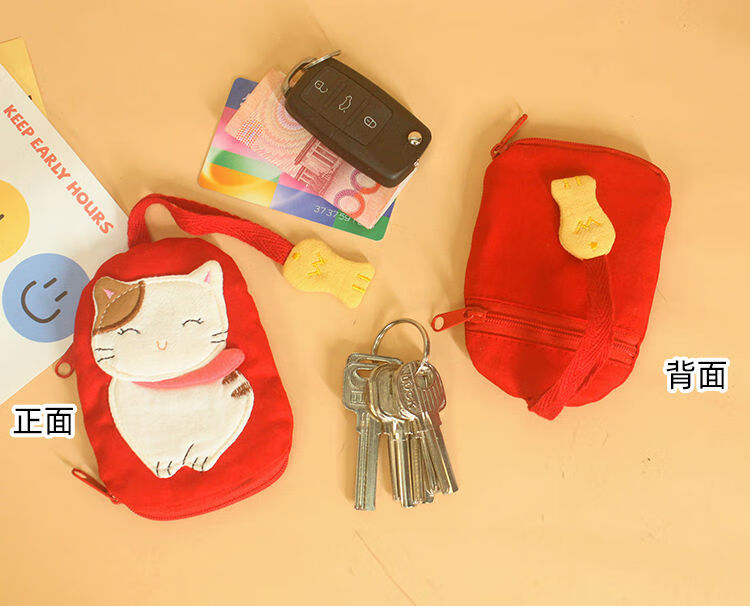 Chanyue Mini Cute Pull-out Fabric Women's Key Bag Zipper Car Key Bag Coin Access Card Bag 2-in-1 Red