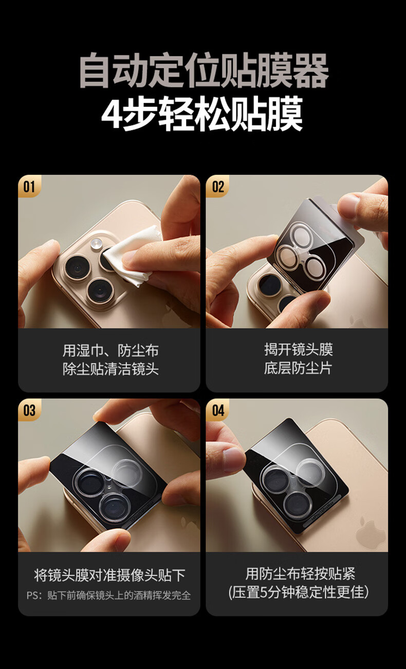 Jiapi AR anti-reflection automatic second-hand sticker suitable for iPhone16Promax lens tempered film Apple 17Pro mobile phone camera 17 Corning protective film ultra-clear explosion-proof and scratch-resistant Corning AR titanium black + artifact 16Pro/16Promax