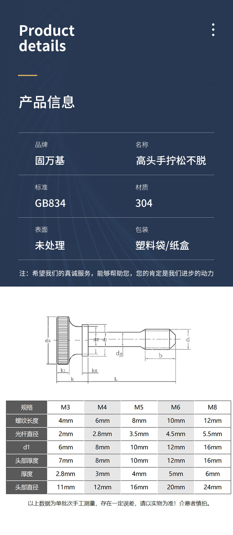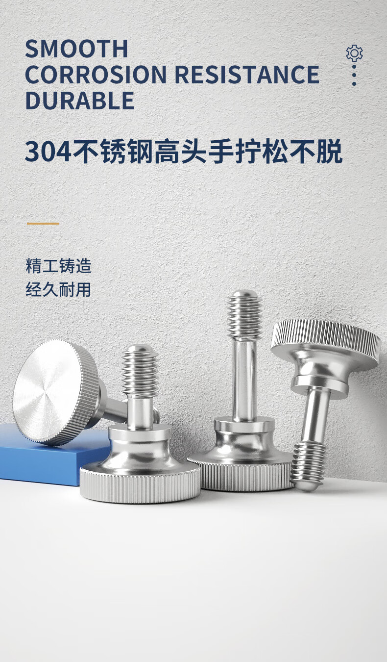 Guwanji 304 stainless steel high-head loose screws knurled hand-tightened step bolts anti-loosening screws and screws M4x20 2 pieces